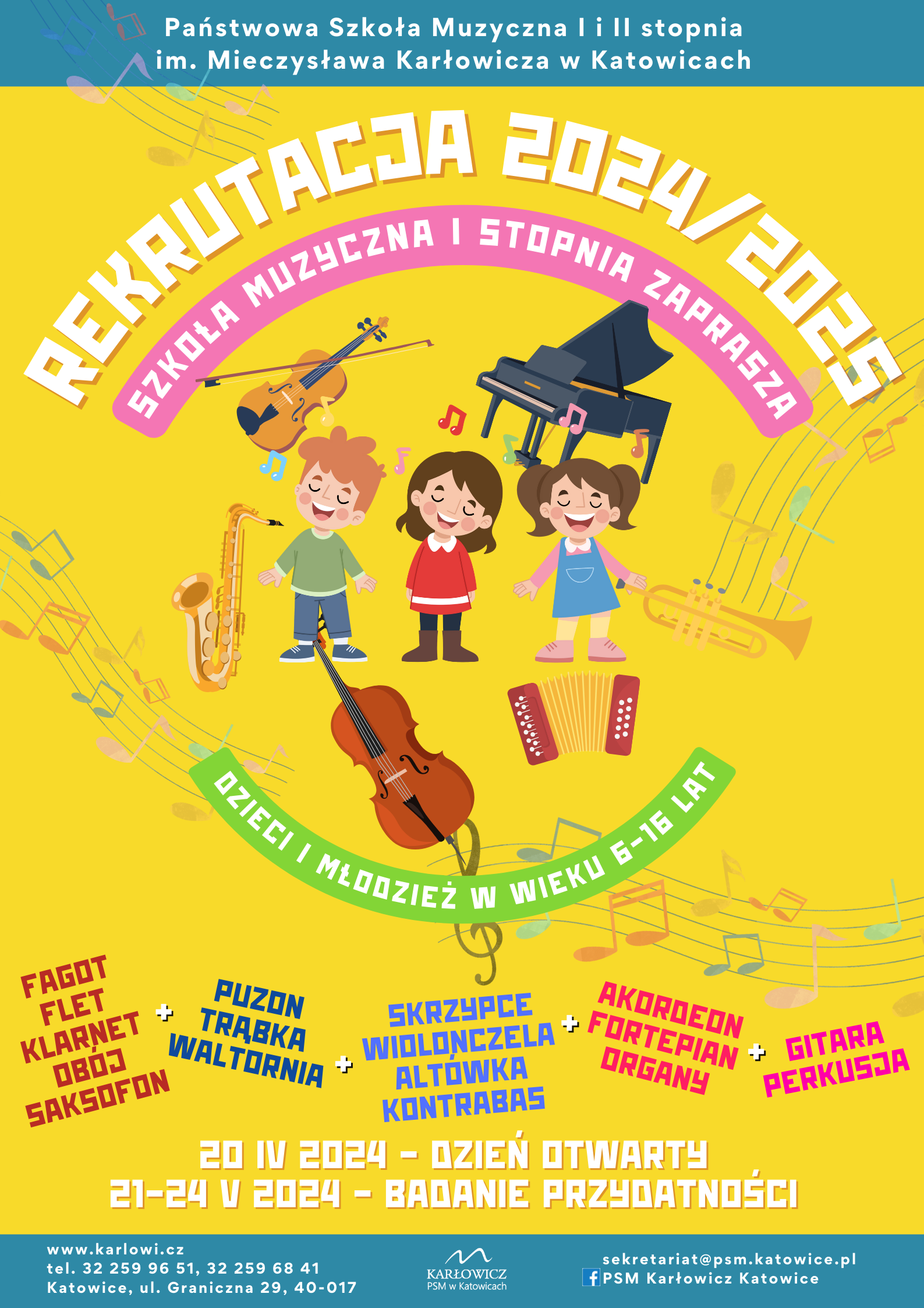 PLAN DNIA OTWARTEGO 20 KWIETNIA 2024 (SOBOTA) DLA SZKOŁY MUZYCZNEJ I STOPNIA