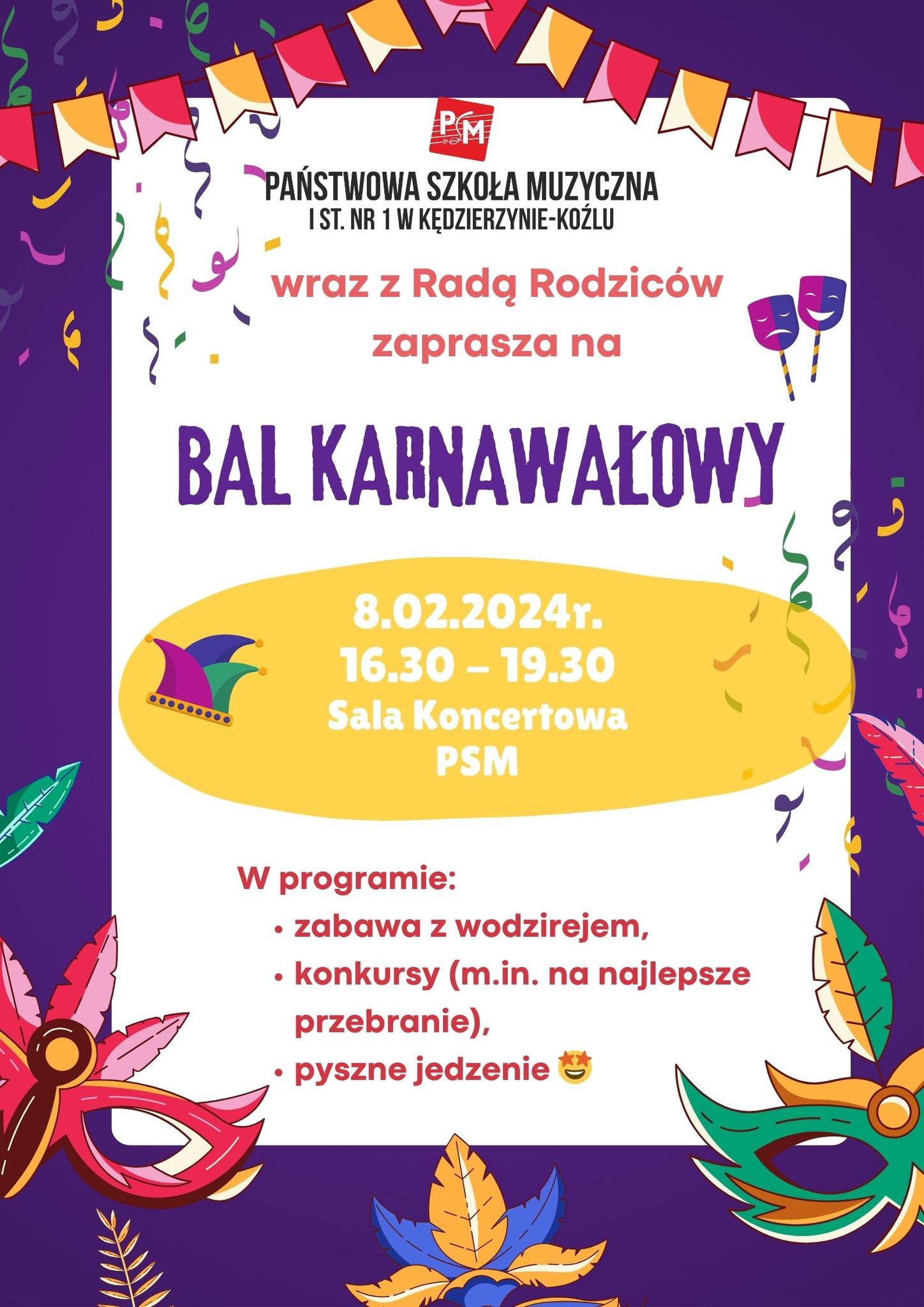 Bal karnawałowy 2024 Dołącz do nas na Balu Karnawałowym w PSM! Nastaw się na dużo dobrej muzyki, konkursów i pyszności. Spotkajmy się 8 lutego, godz. 16:30. Nie przegap zabawy! Zdjęcia (1) Pokaż zdjęcie 1 z galerii.