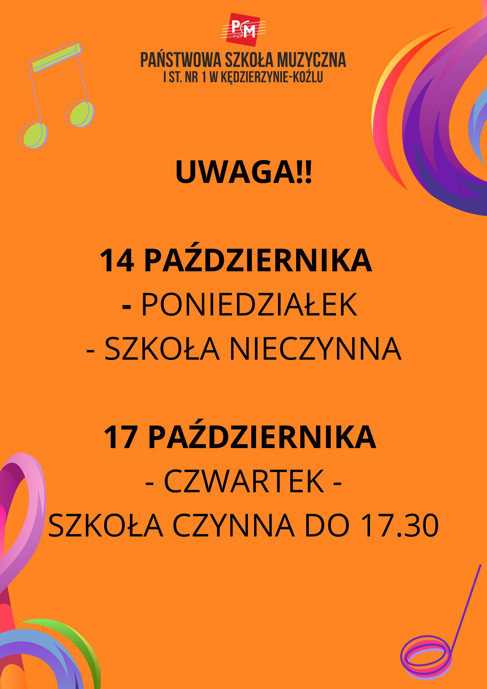 Data: 17 października 2024 (czwartek) - Szkoła będzie czynna do godziny 17:30.