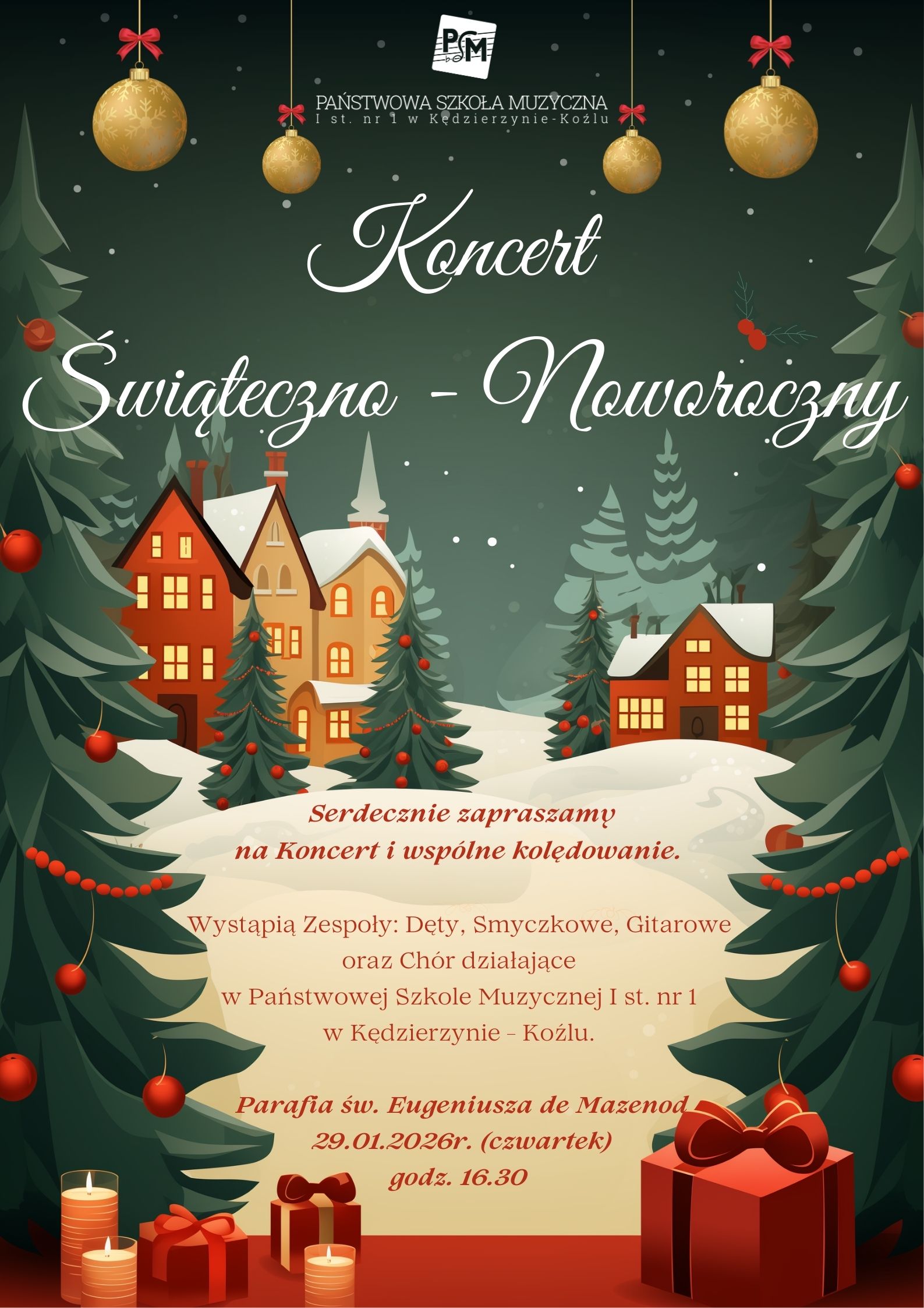Serdecznie zapraszamy na Koncert Świąteczno-Noworoczny oraz wspólne kolędowanie w wykonaniu uczniów Państwowej Szkoły Muzycznej I stopnia nr 1 w Kędzierzynie-Koźlu.