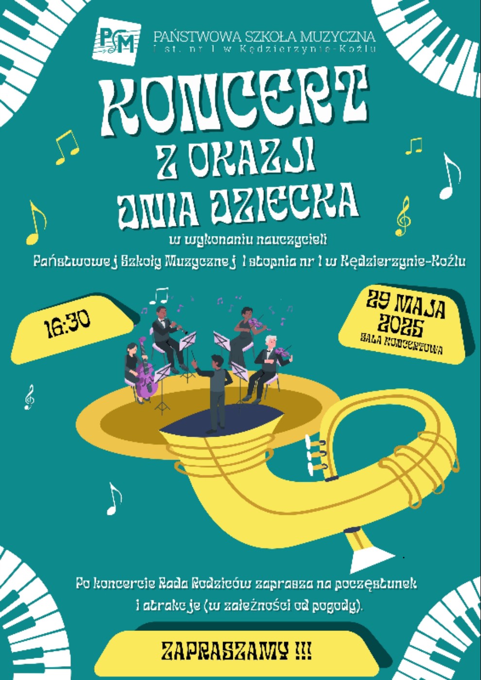 Państwowa Szkoła Muzyczna I st. nr 1 w Kędzierzynie-Koźlu ma przyjemność zaprosić wszystkich małych i dużych melomanów na specjalny koncert, w którym… specjalnie dla Was wystąpią nasi nauczyciele! 😉