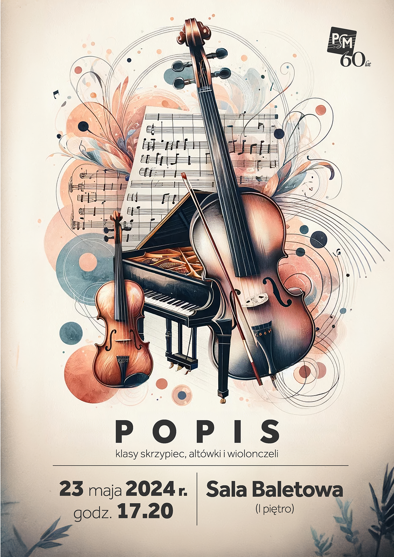 który odbędzie się 23 maja 2024 roku o godzinie 17:20 w Sali Baletowej (I piętro) Państwowej Szkoły Muzycznej.