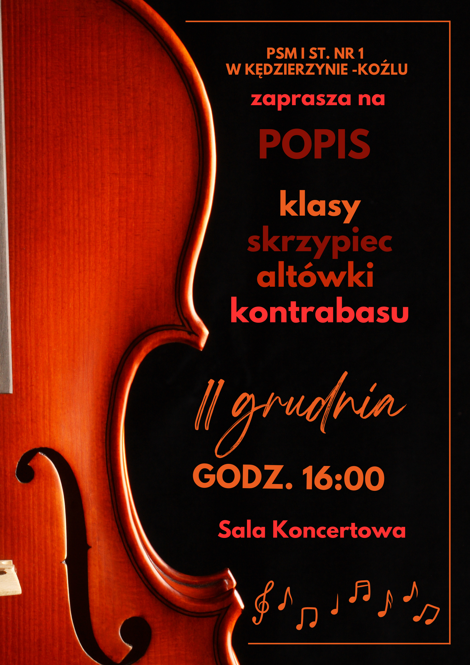Popis sekcji Instrumentów smyczkowych PSM I st. nr 1 w Kędzierzynie-Koźlu Zaprasza na popis klasy: skrzypiec altówki kontrabasu 11 grudnia 2023, godz. 16:00 Sala Koncertowa Zdjęcia (1) Pokaż zdjęcie 1 z galerii.