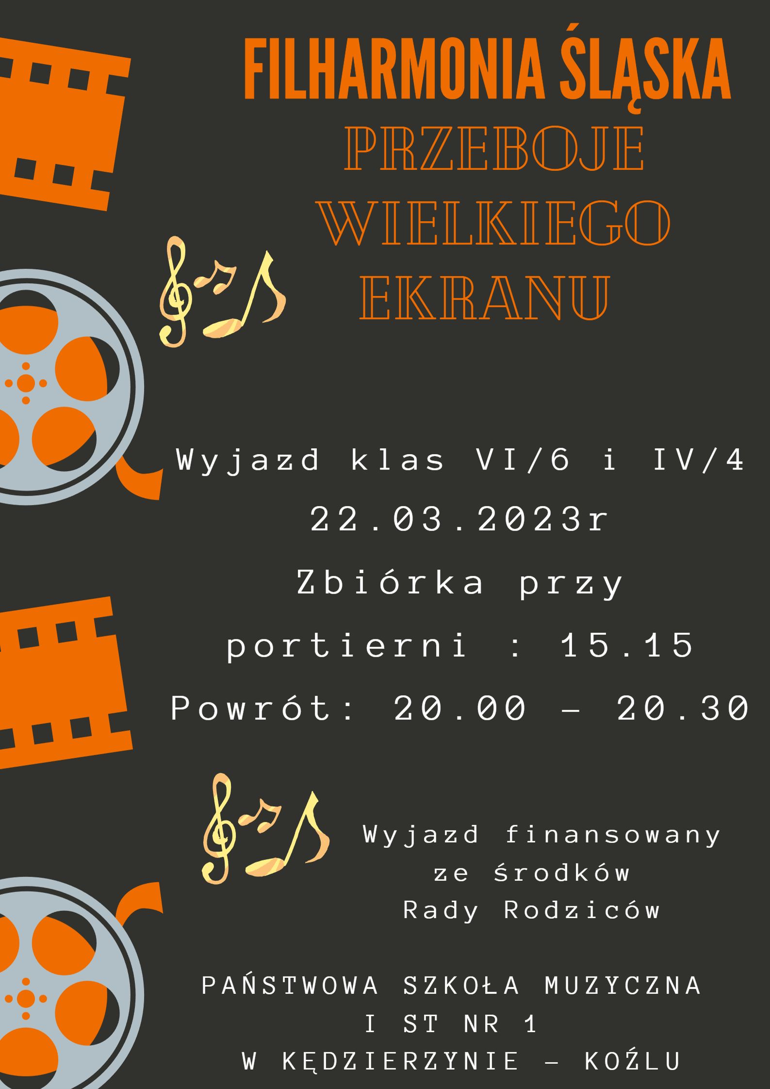 Wyjazd klas VI/6 i IV/4 22.03.2023r Zbiórka przy portierni : 15.15 Powrót: 20.00 - 20.30