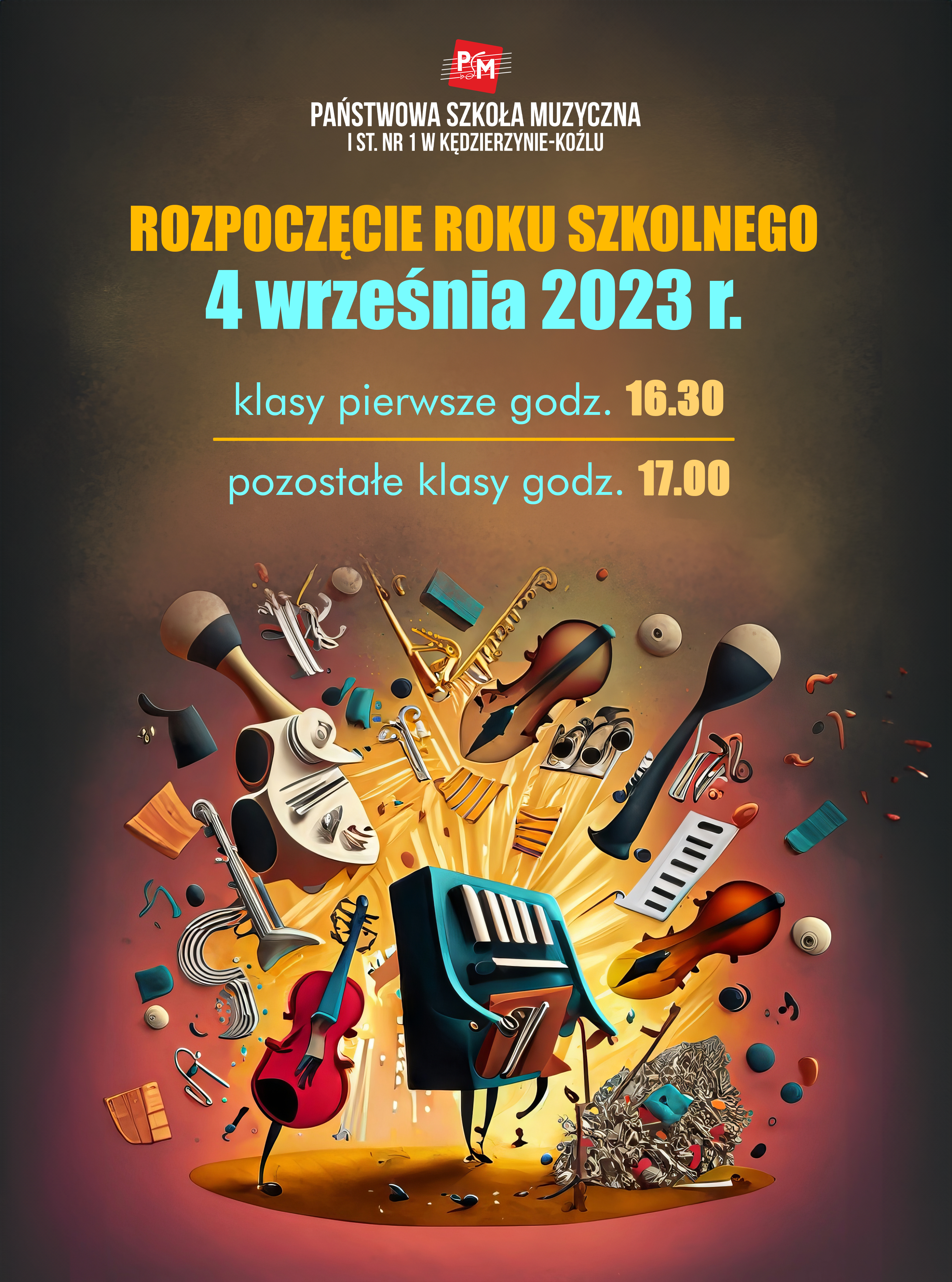 Zapraszamy wszystkich uczniów Państwowej Szkoły Muzycznej I st. nr 1 w Kędzierzynie-Koźlu na uroczyste rozpoczęcie nowego roku szkolnego 2023/2024,