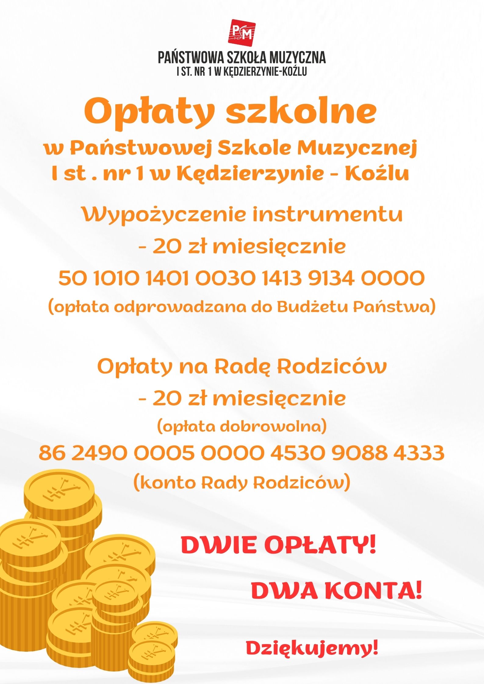 Opłaty szkolne w Państwowej Szkole Muzycznej I st. nr 1 w Kędzierzynie-Koźlu