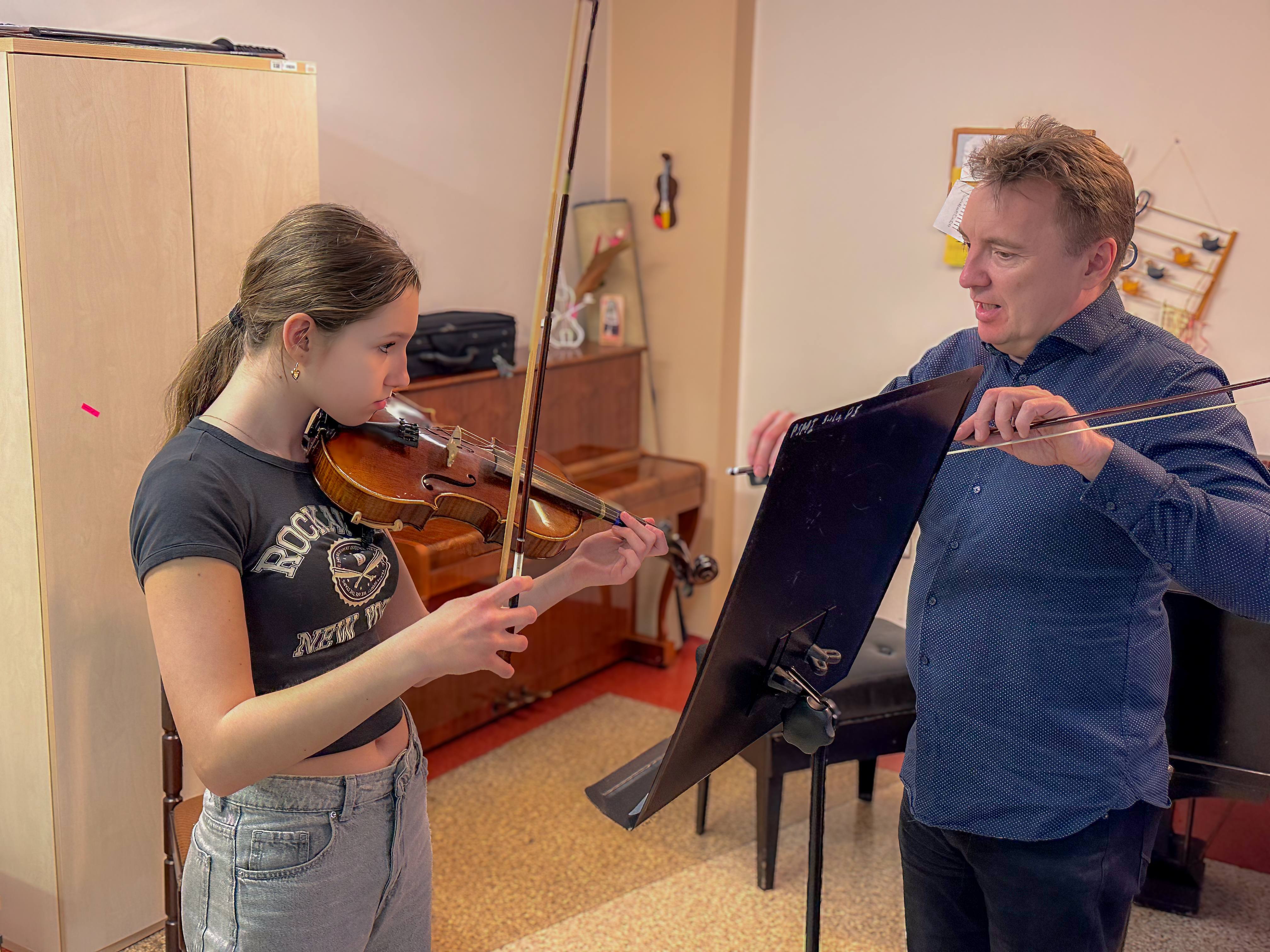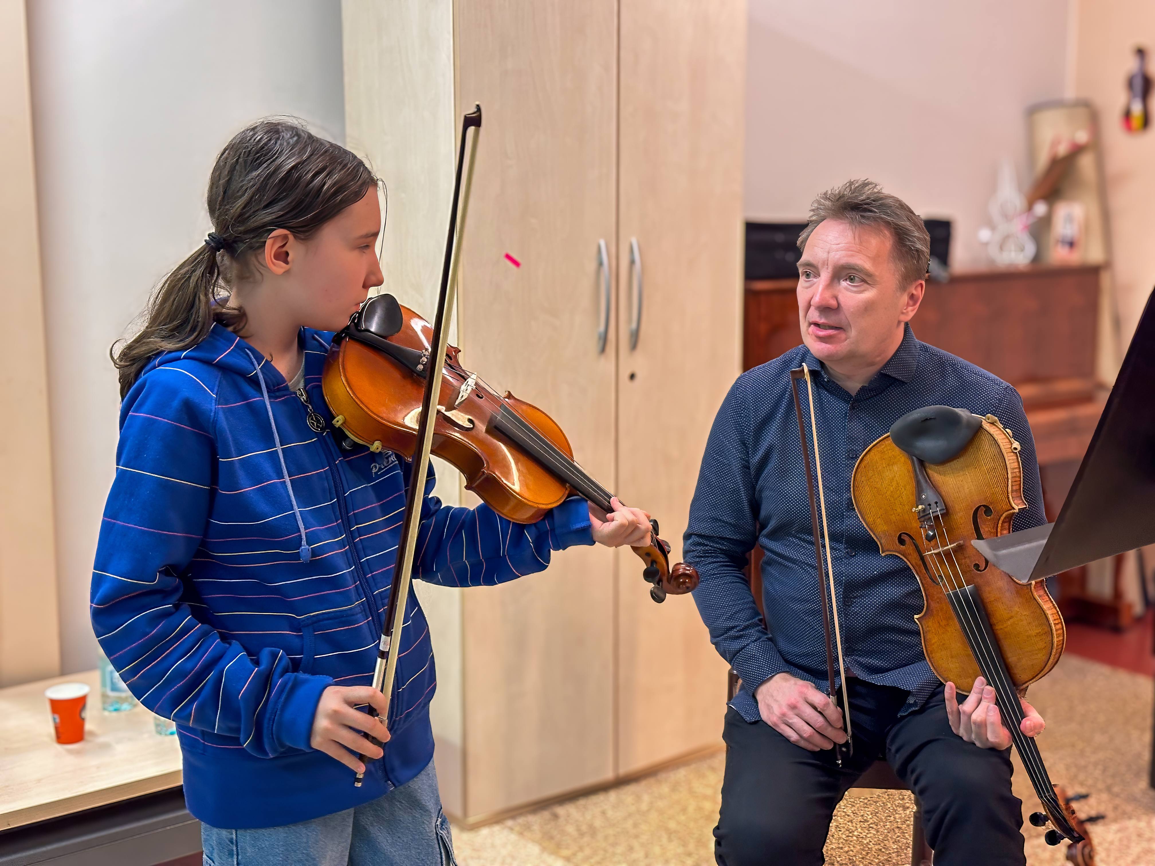 Uczniowie klasy altówki mieli okazję pracować pod okiem zaproszonego gościa, doskonaląc swoje umiejętności w grze na instrumencie