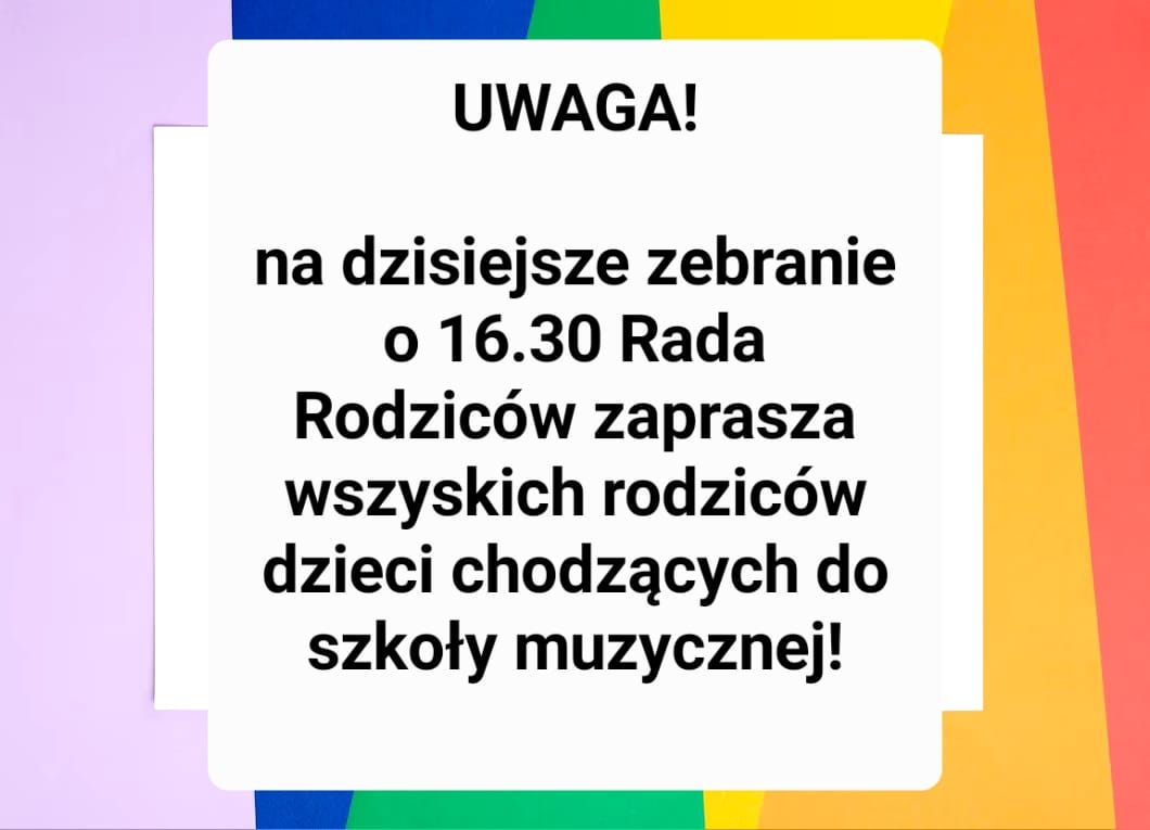 Na dzisiejsze zebranie zapraszamy WSZYSTKICH rodziców dzieci chodzących do szkoły muzycznej!