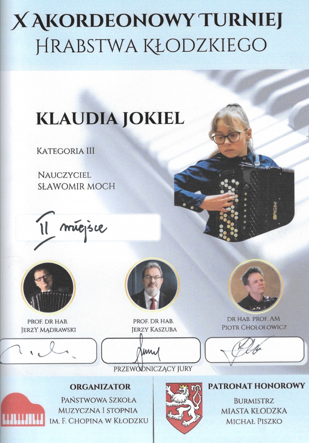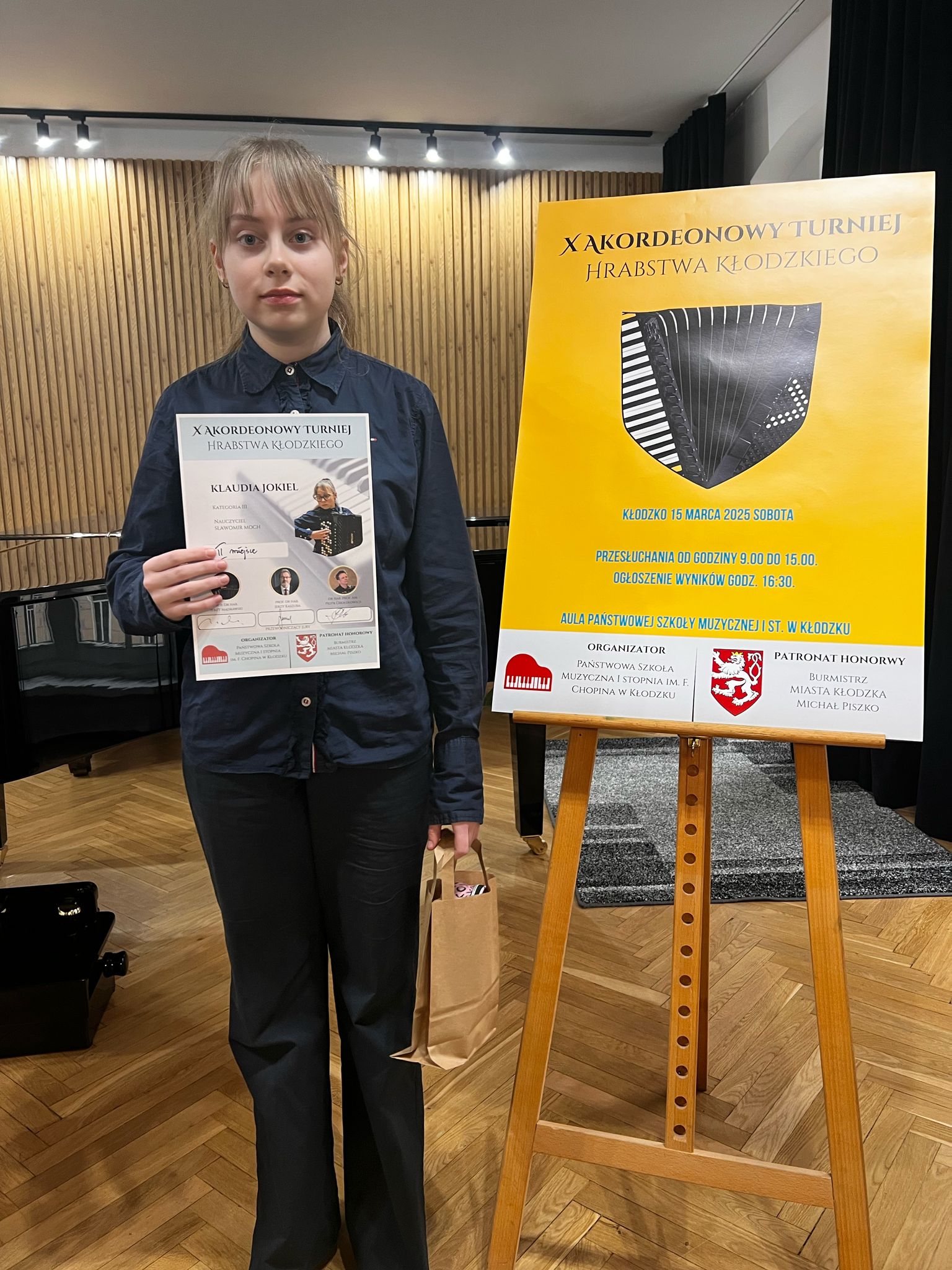W dniu 15 marca 2025 r. Klaudia Jokiel - uczennica klasy akordeonu p. Sławomira Mocha - uczestniczyła w X - jubileuszowym - Turnieju Akordeonowym Hrabstwa Kłodzkiego i zajęła II miejsce. Serdecznie gratulujemy!