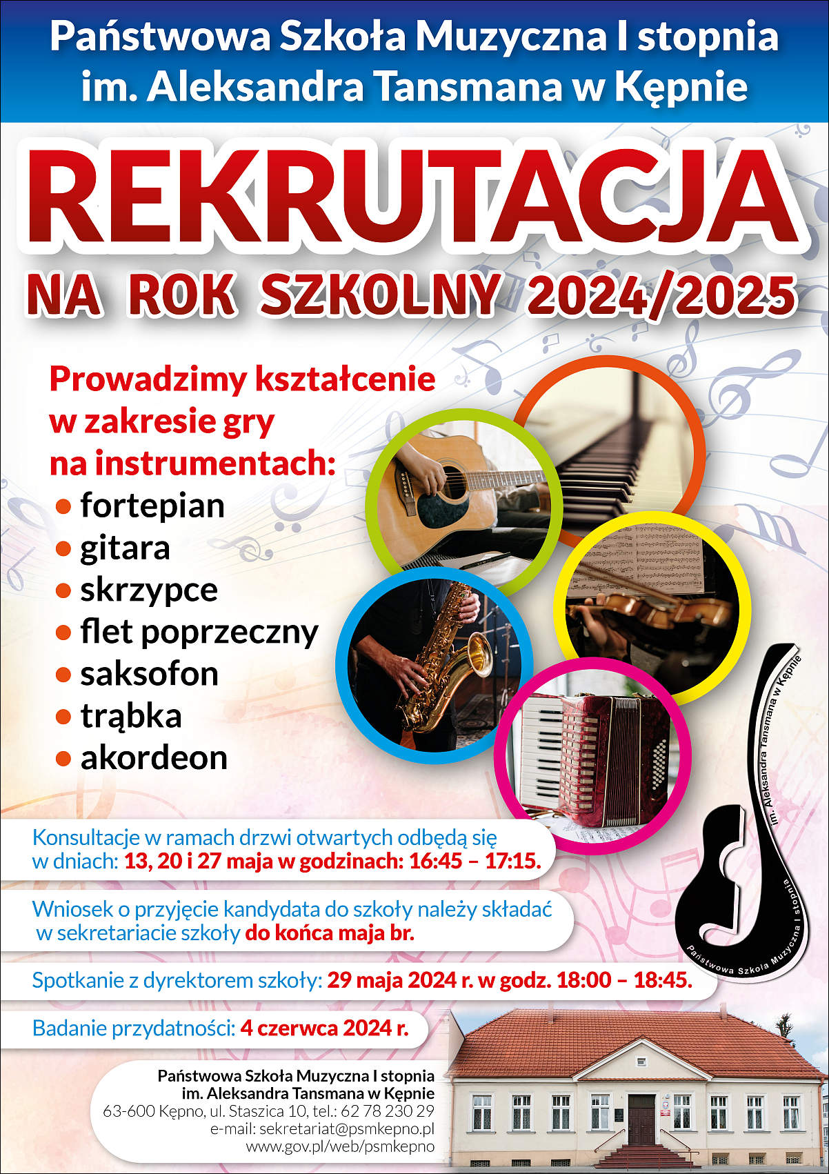 PSM I st. im. Aleksandra Tansmana w Kępnie ogłasza nabór na rok szkolny 2024/2025