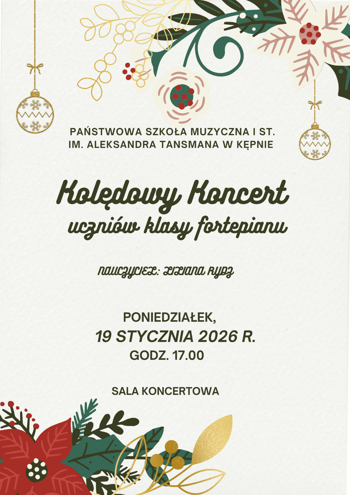 Koncert uczniów klasy fortepianu p. Liliany Rydz - 19 stycznia 2025