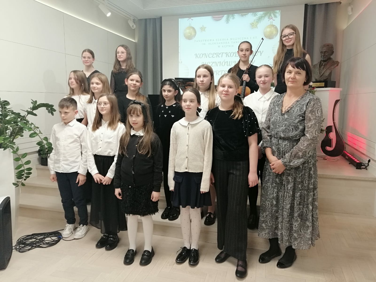 18 grudnia 2024 r. w sali koncertowej naszej szkoły odbył się Koncert kolędowy. Wzięli w nim udział uczniowie klasy fortepianu p. Liliany Rydz, oraz gościnnie Ewa Chałupka, uczennica klasy skrzypiec p. Tomasz Kuzio. Repertuar tzw. obowiązkowy, czyli etiudy, utwory dawne czy dowolne przeplatane były polskimi kolędami prezentowanymi, solo, w duetach lub zespołach.
