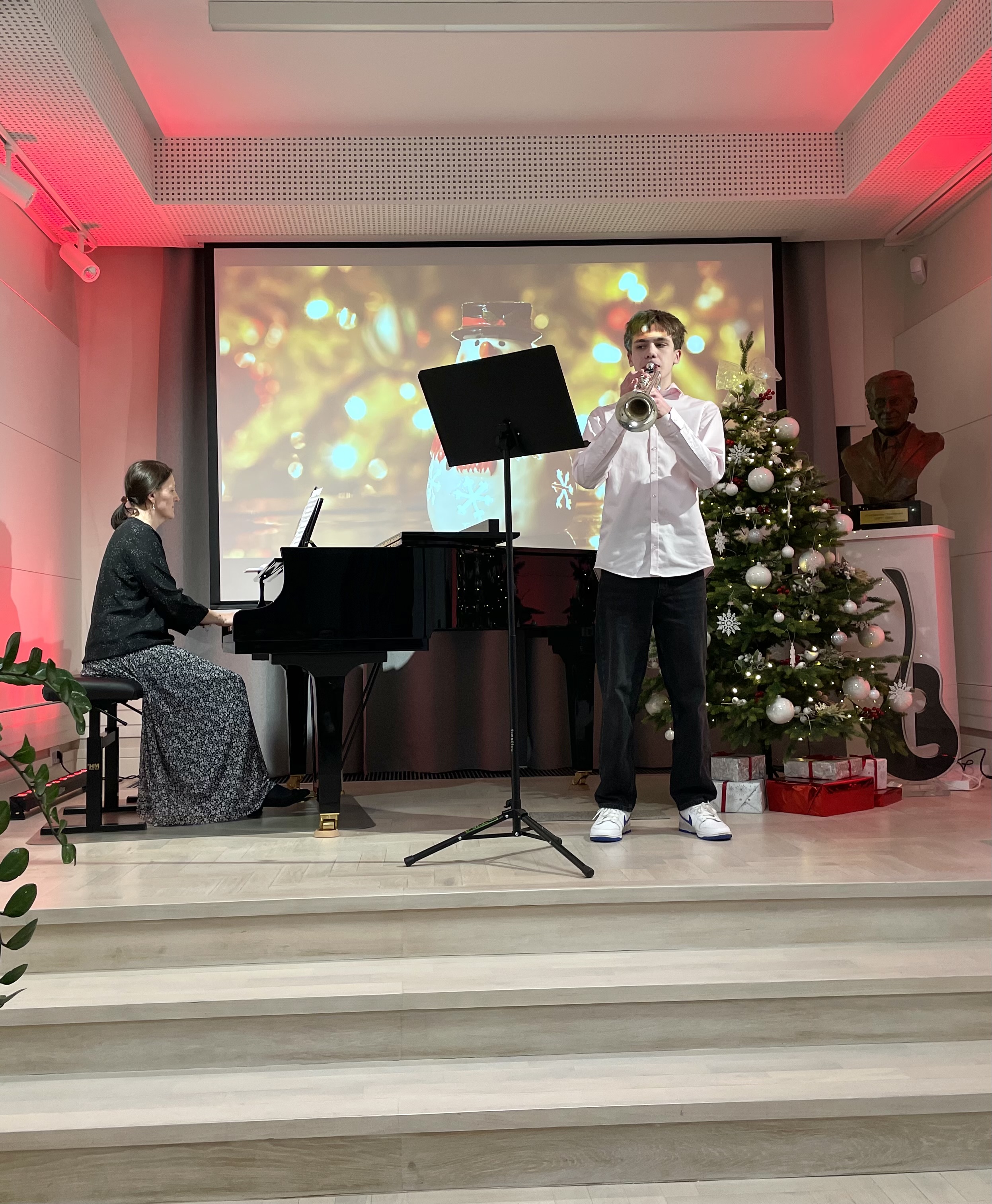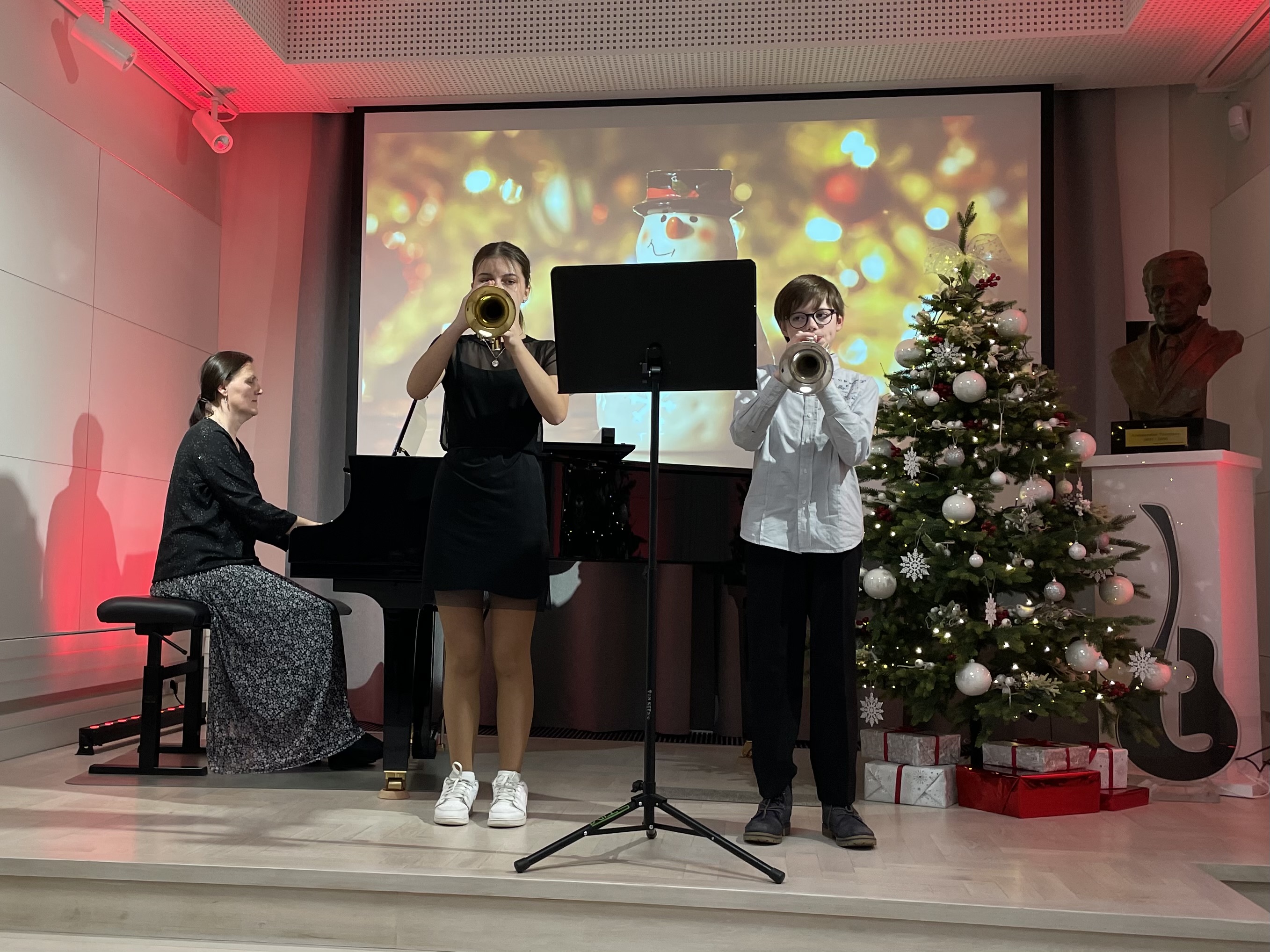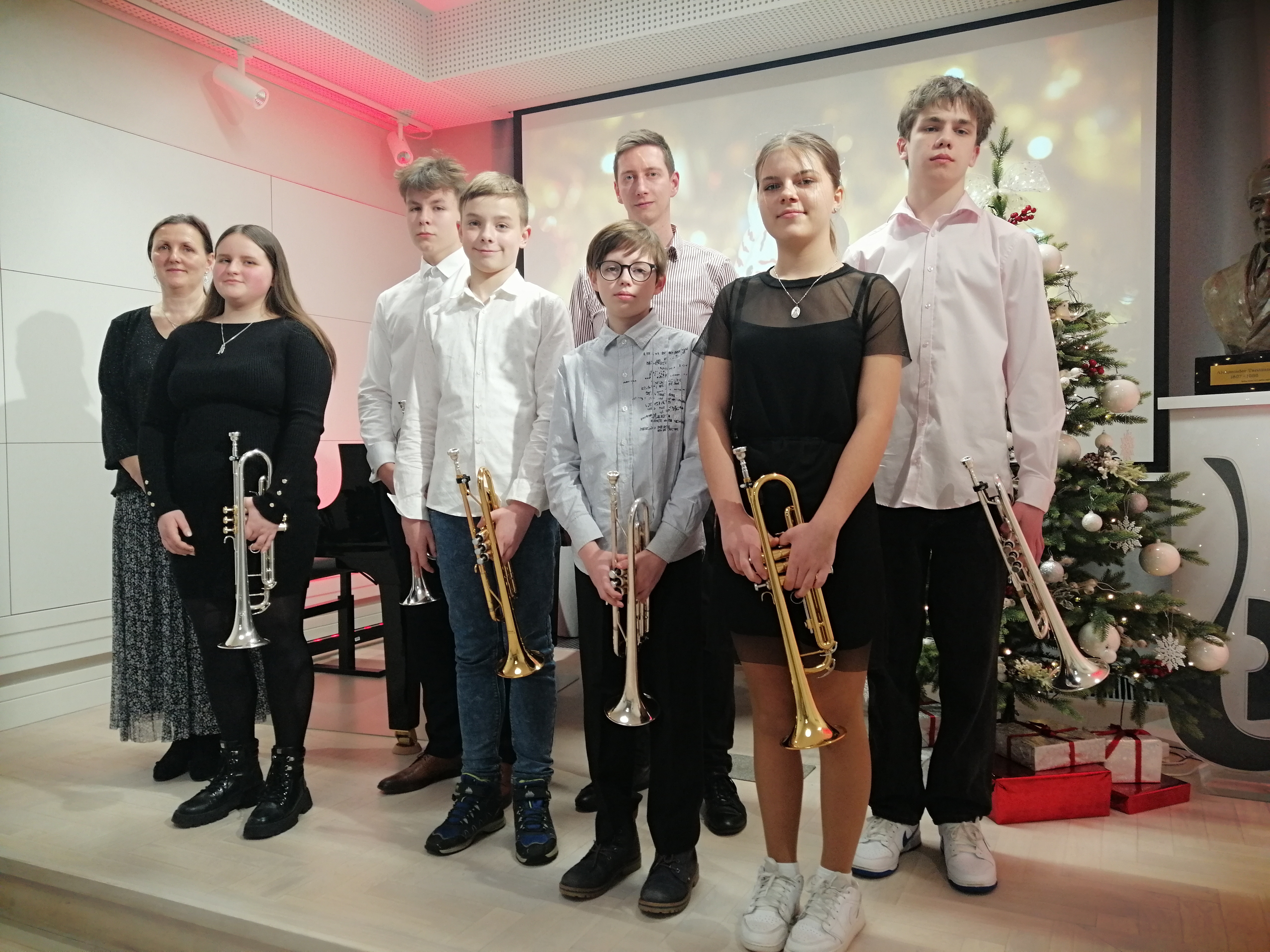 W dniu 17 stycznia 2024 r. w naszej szkole odbył się popis uczniów klasy trąbki p. Damiana Chudego. Uczniom akompaniowała p. Edyta Szymańska.