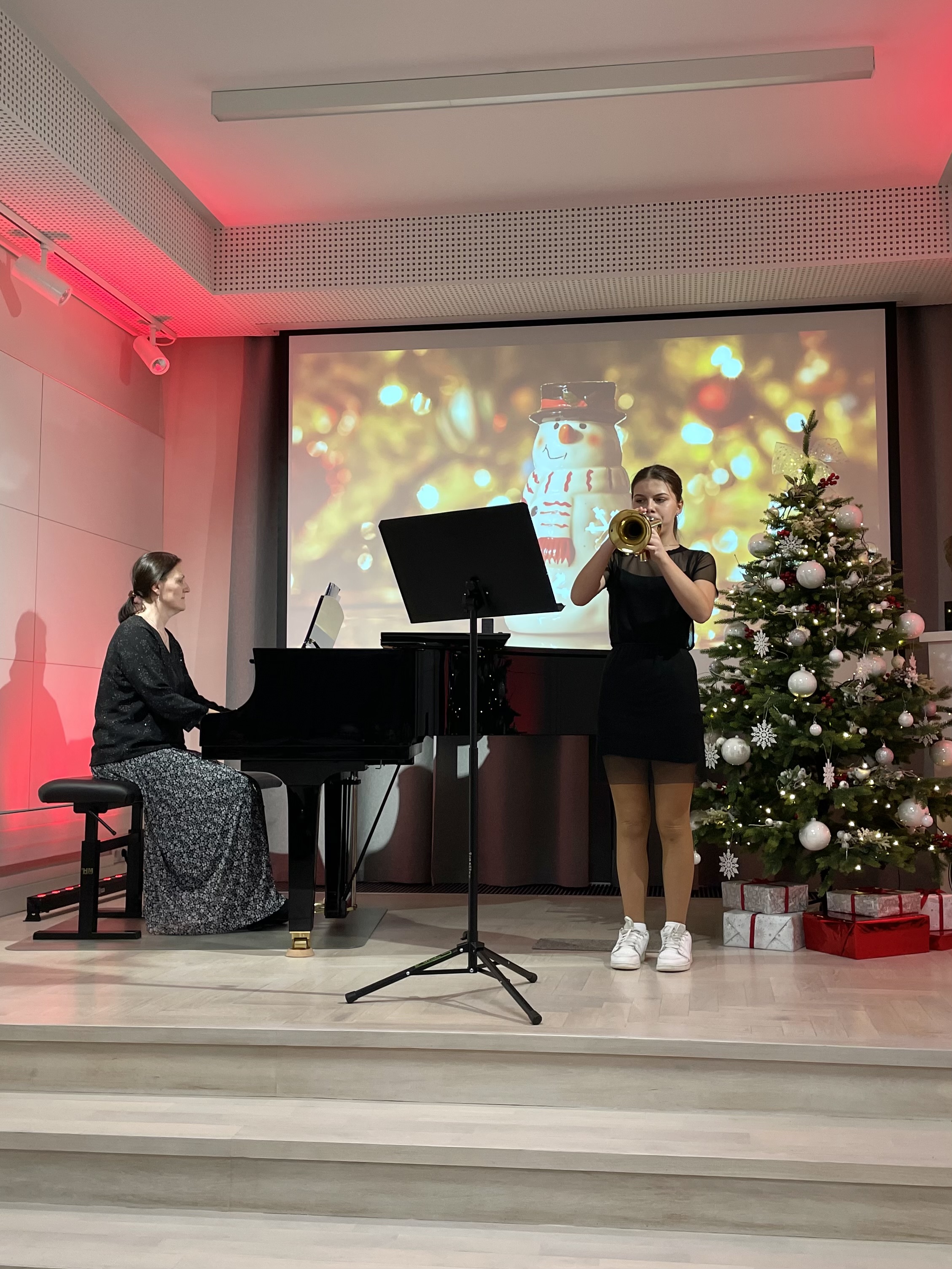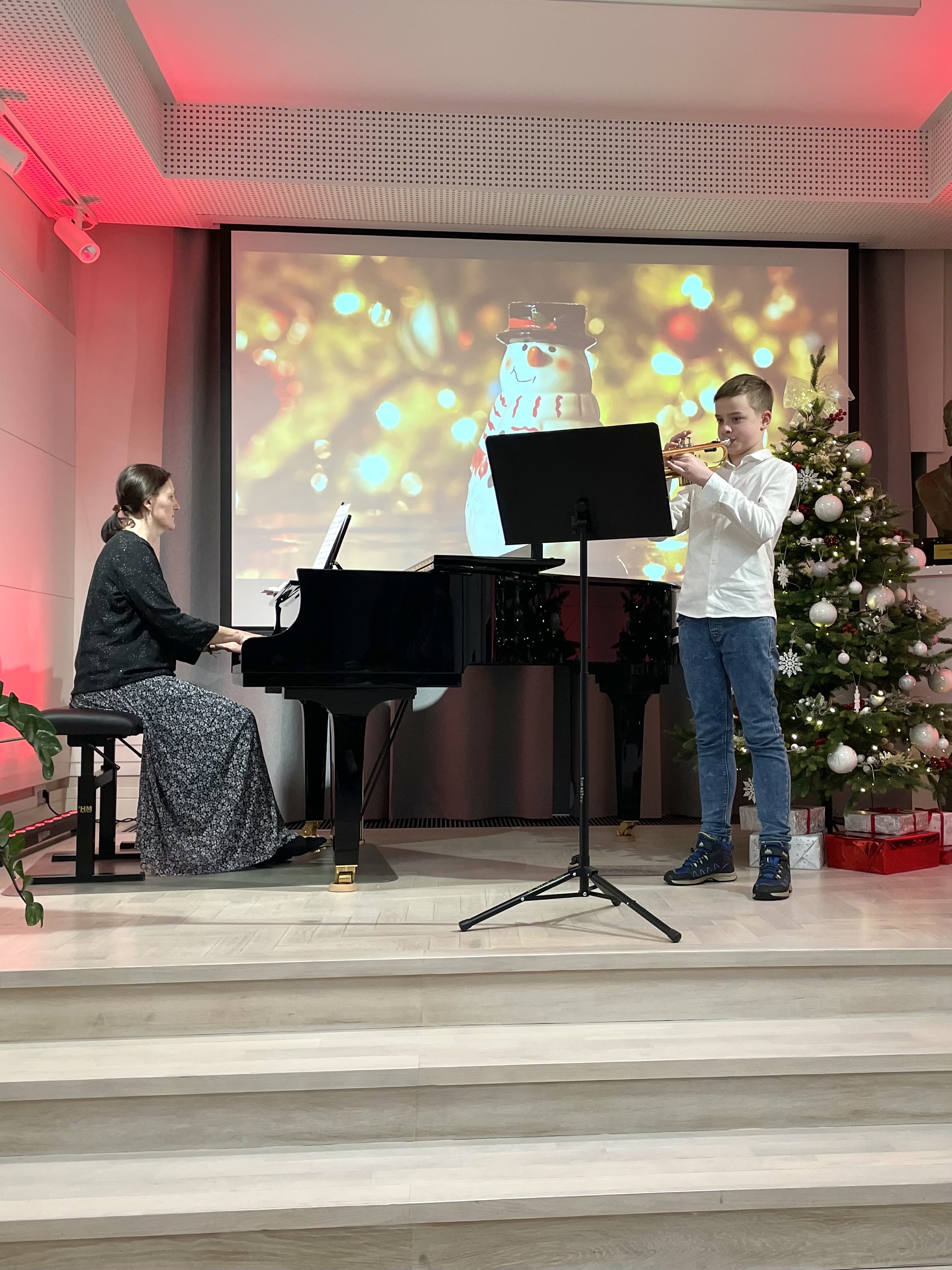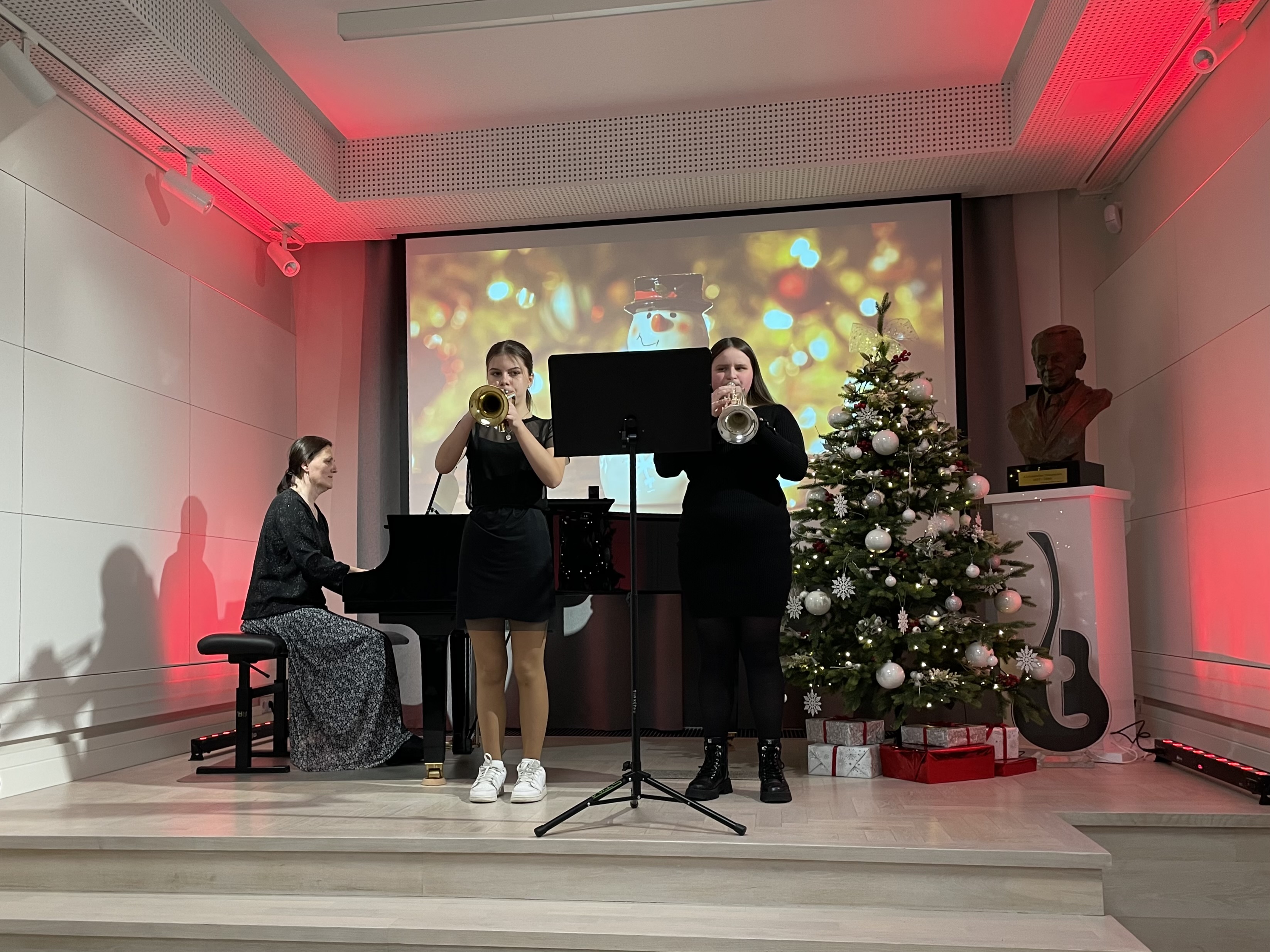 W dniu 17 stycznia 2024 r. w naszej szkole odbył się popis uczniów klasy trąbki p. Damiana Chudego. Uczniom akompaniowała p. Edyta Szymańska.