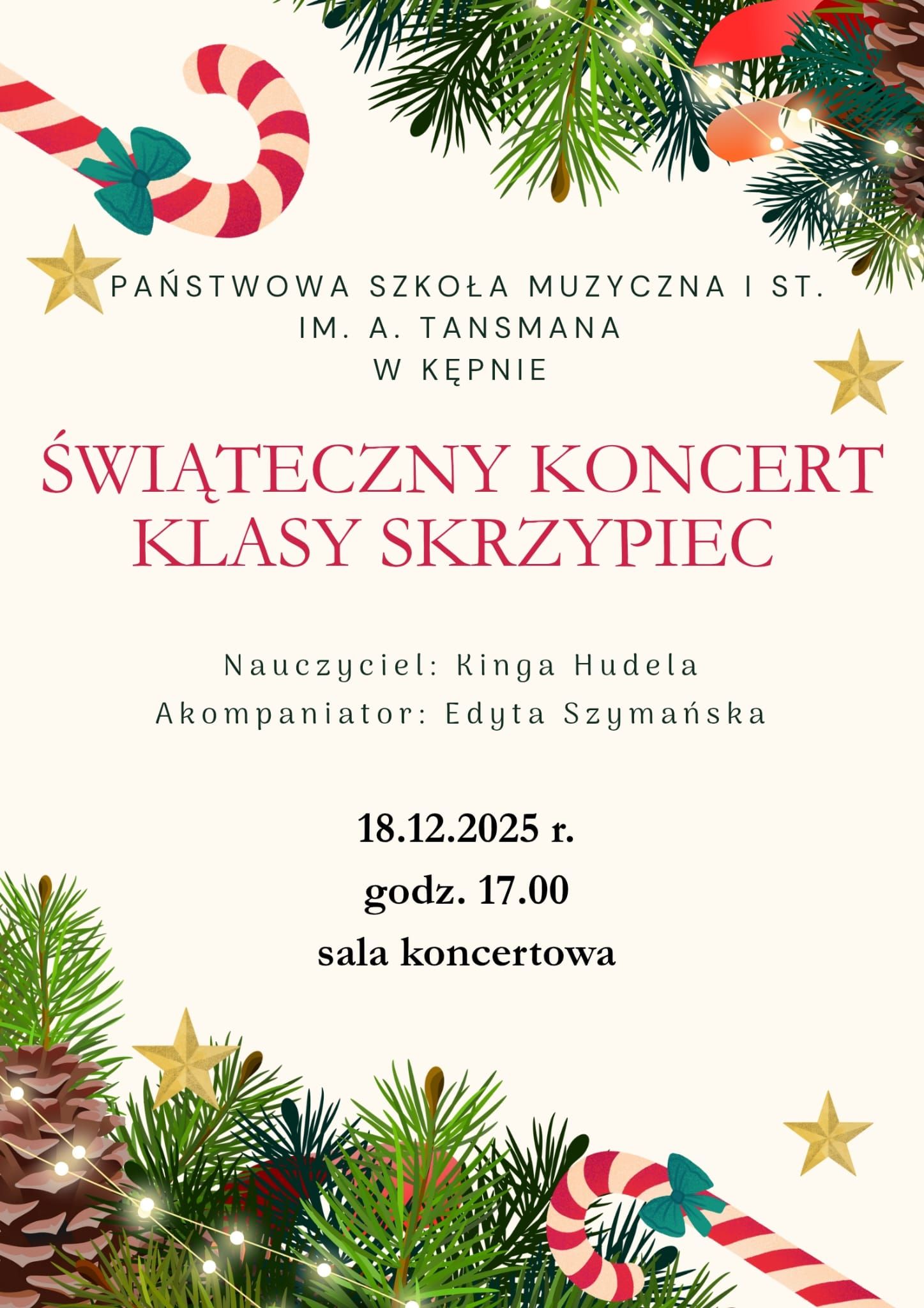 Świąteczny koncert uczniów klasy skrzypiec p. Kingi Hudeli - 18 grudnia 2025