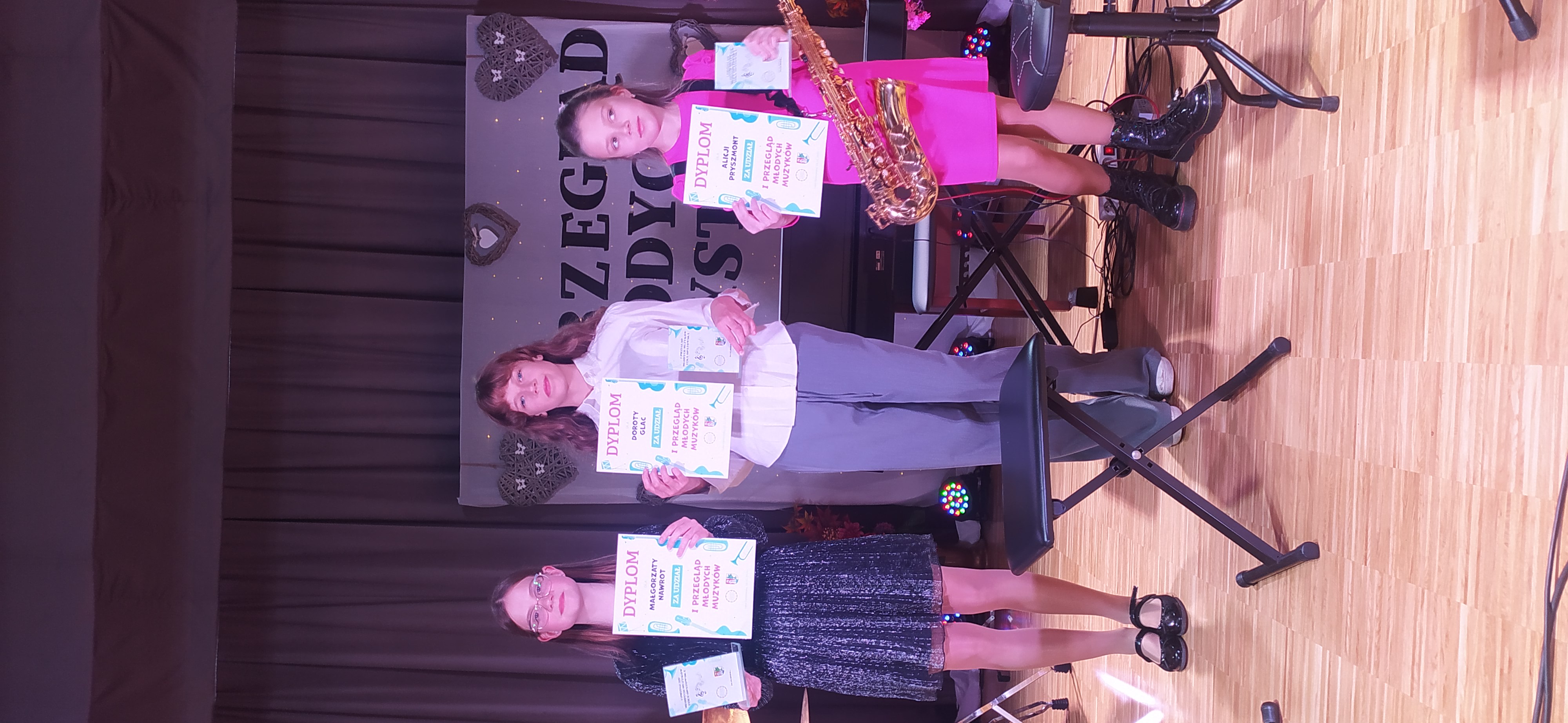 W dniu 16 listopada 2024 r. w Łęce Opatowskiej, jednej z gmin powiatu kępińskiego, odbył się I Przegląd Młodych Muzyków, w którym wzięli również udział nasi uczniowie: Małgorzata Nawrot z klasy fortepianu p. L. Rydz, Dorota Glac z klasy fortepianu p. P. Sochockiej-Musiał i Alicja Pryszmont z klasy saksofonu p. M. Kasprzaka.