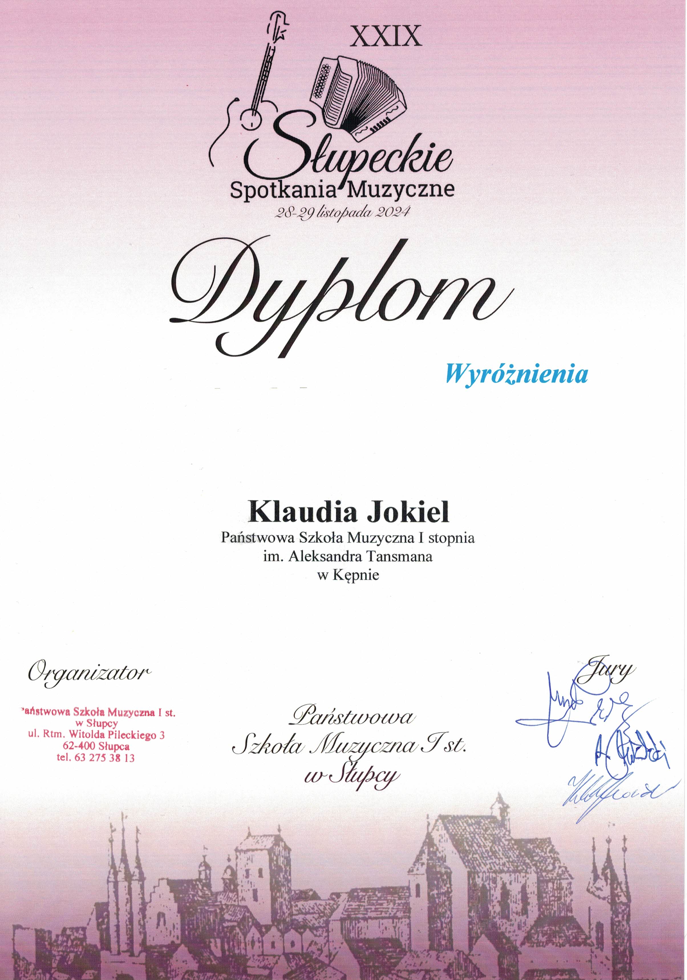 Wyróżnienie dla Klaudii Jokiel w Słupeckich Spotkaniach Muzycznych - 29 listopada 2024