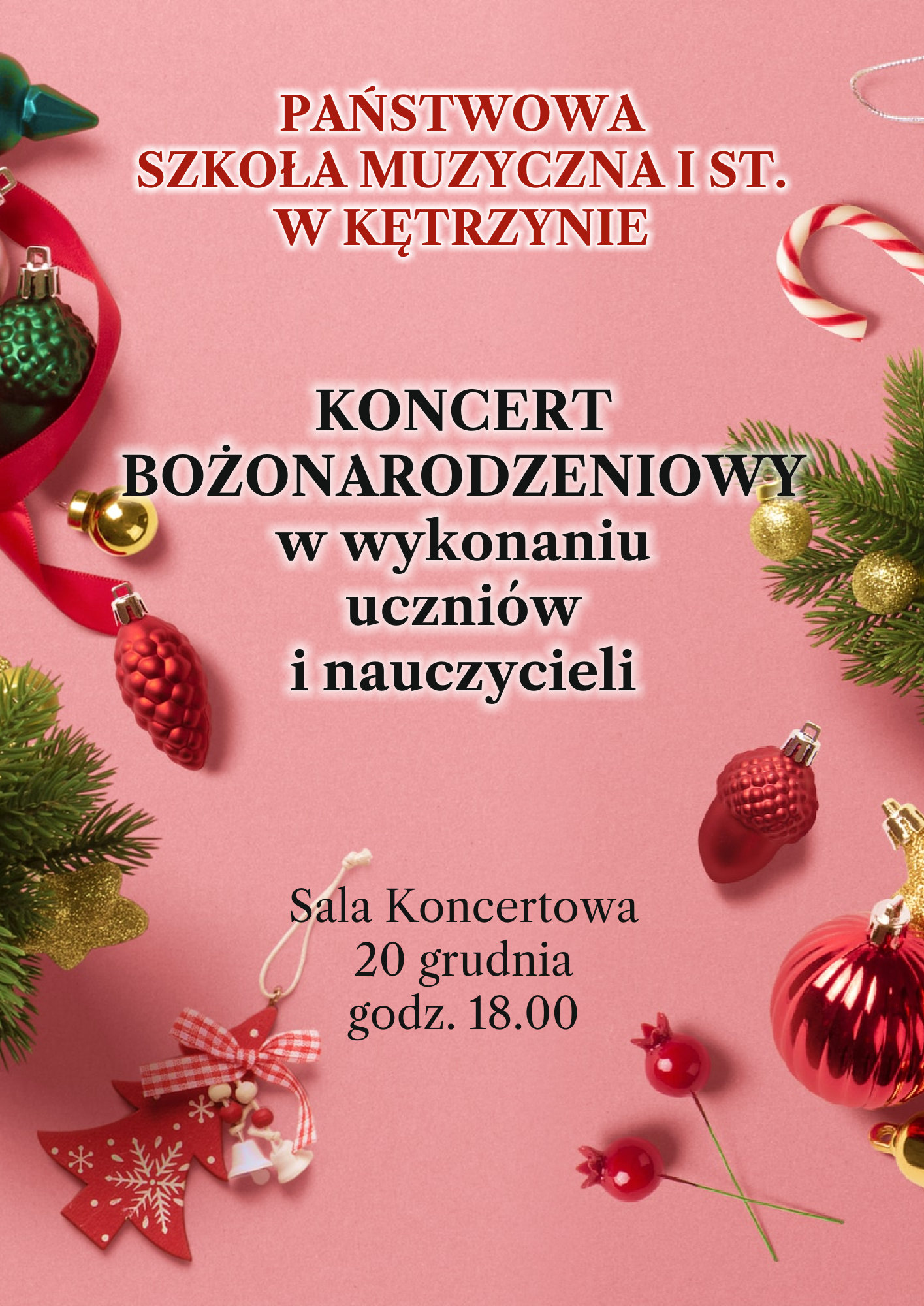 Serdecznie zapraszamy na Koncert Bożonarodzeniowy w wykonaniu uczniów PSM I st. w Kętrzynie.