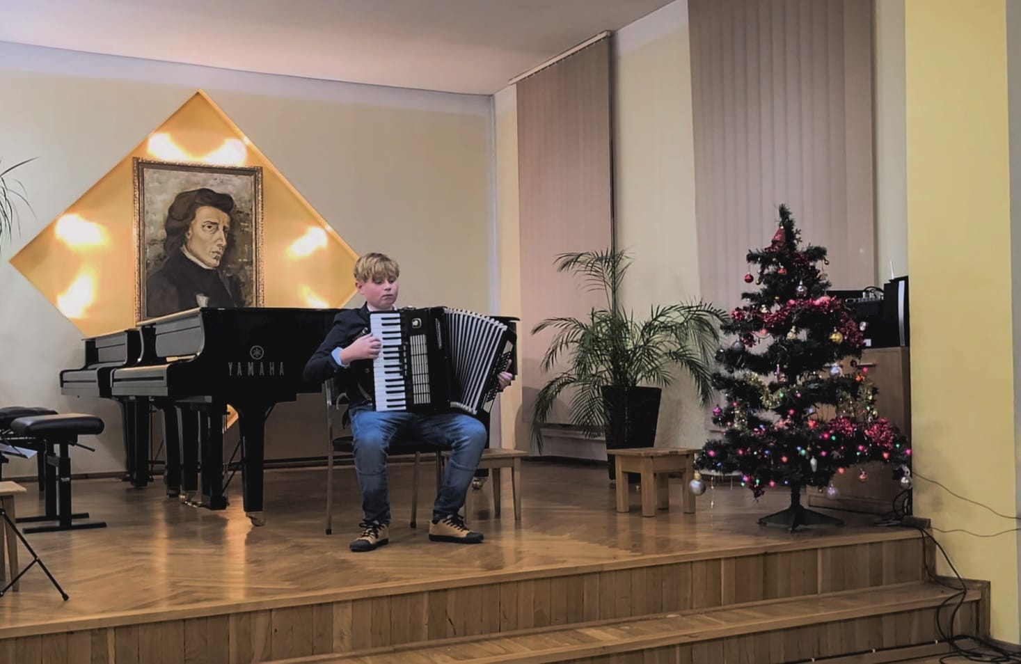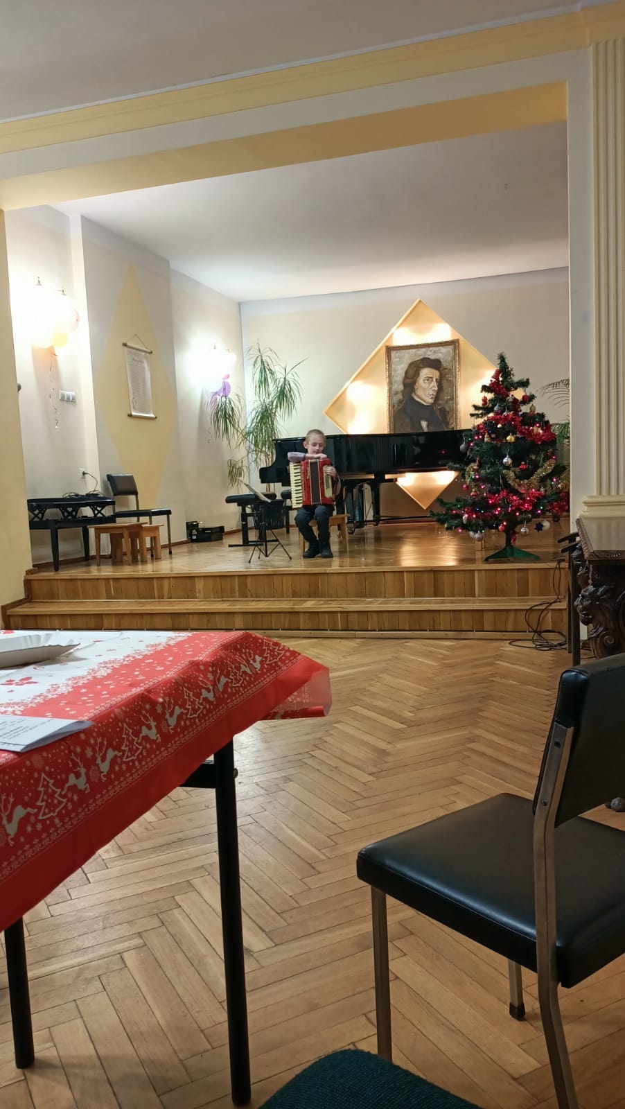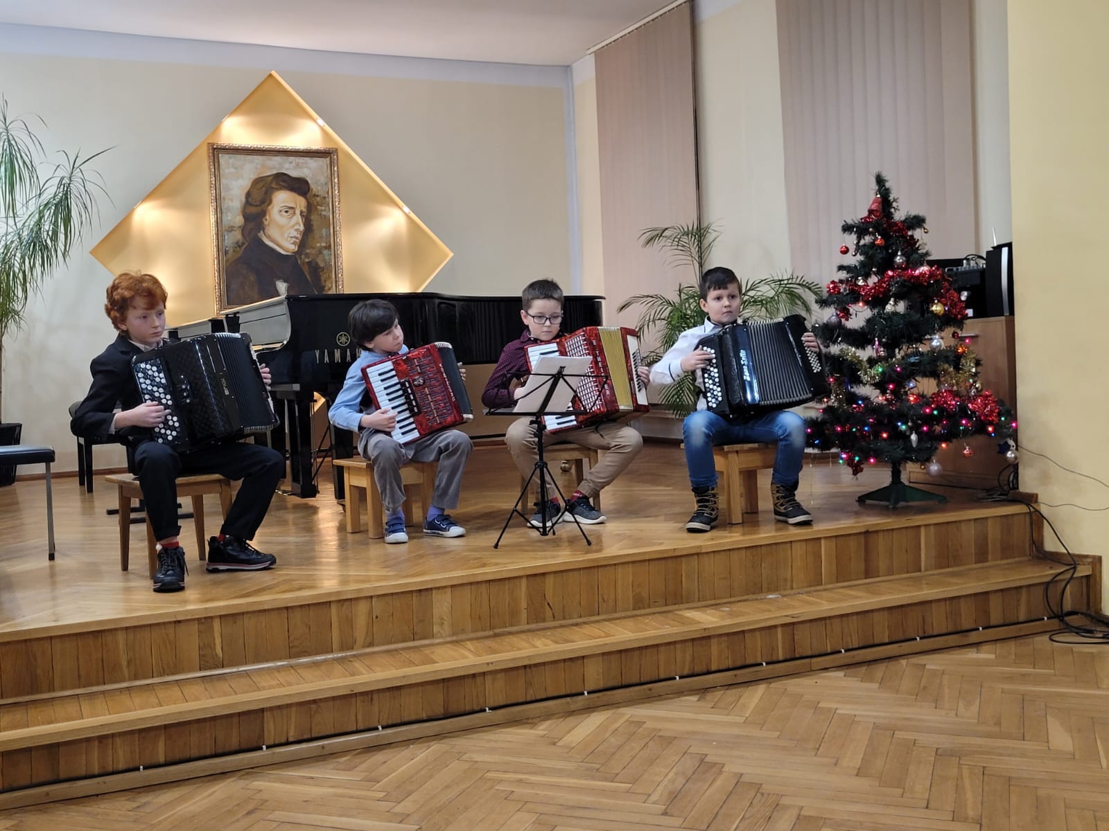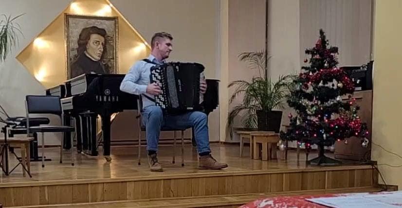 Na początku imprezy wystąpiła cała orkiestra akordeonowa i wykonała kolędę "Pójdźmy wszyscy do stajenki", a następnie, każdy uczeń wykonał swój program solowy. Gratulacje dla wszystkich uczniów i podziękowania dla rodziców za zaangażowanie.