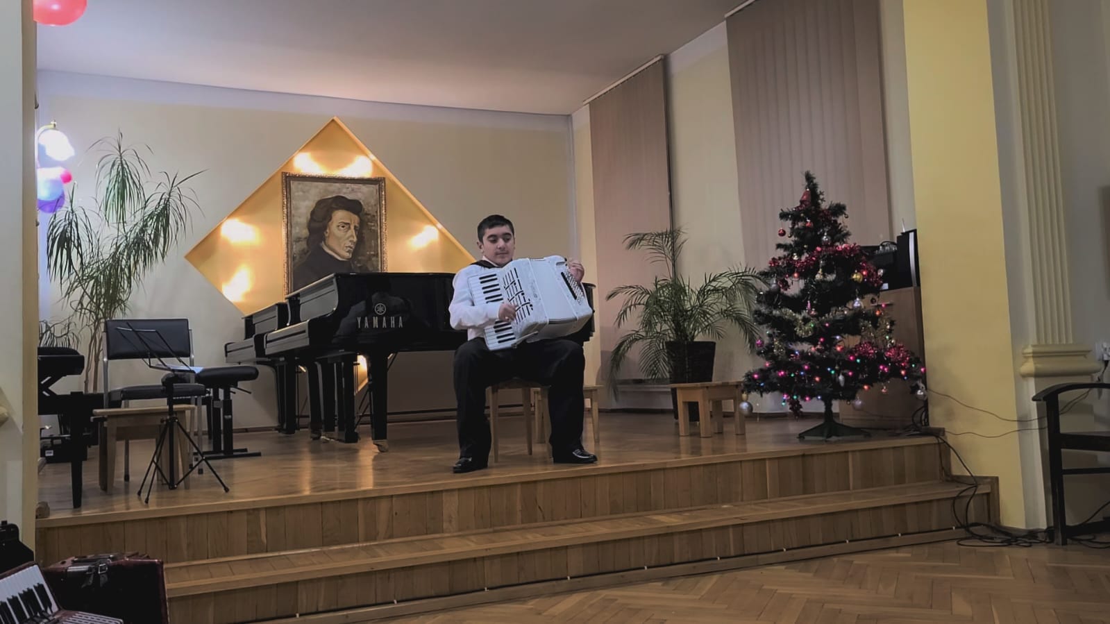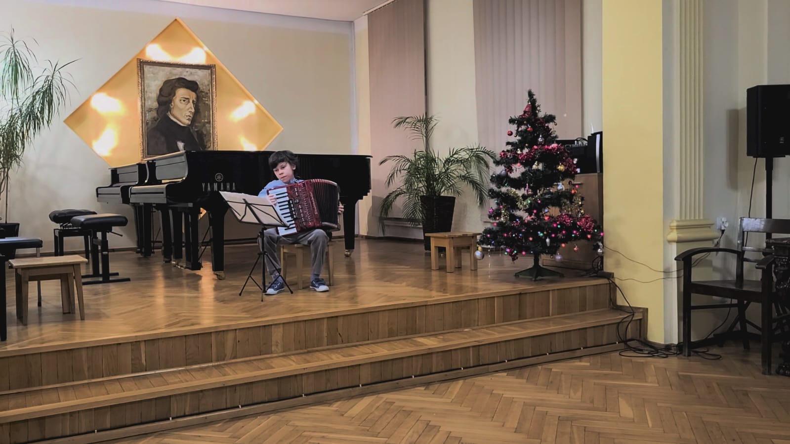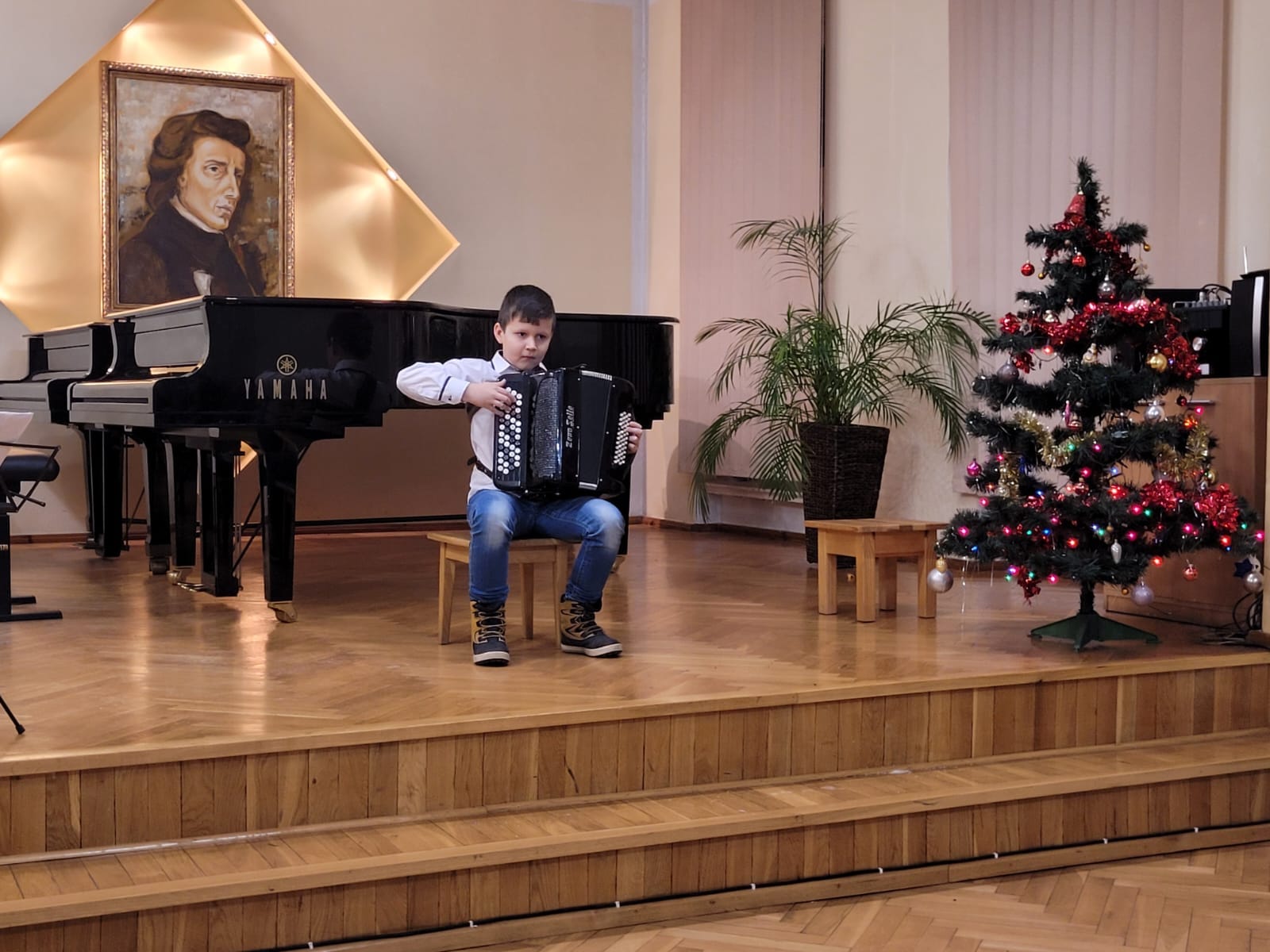 Na początku imprezy wystąpiła cała orkiestra akordeonowa i wykonała kolędę "Pójdźmy wszyscy do stajenki", a następnie, każdy uczeń wykonał swój program solowy. Gratulacje dla wszystkich uczniów i podziękowania dla rodziców za zaangażowanie.