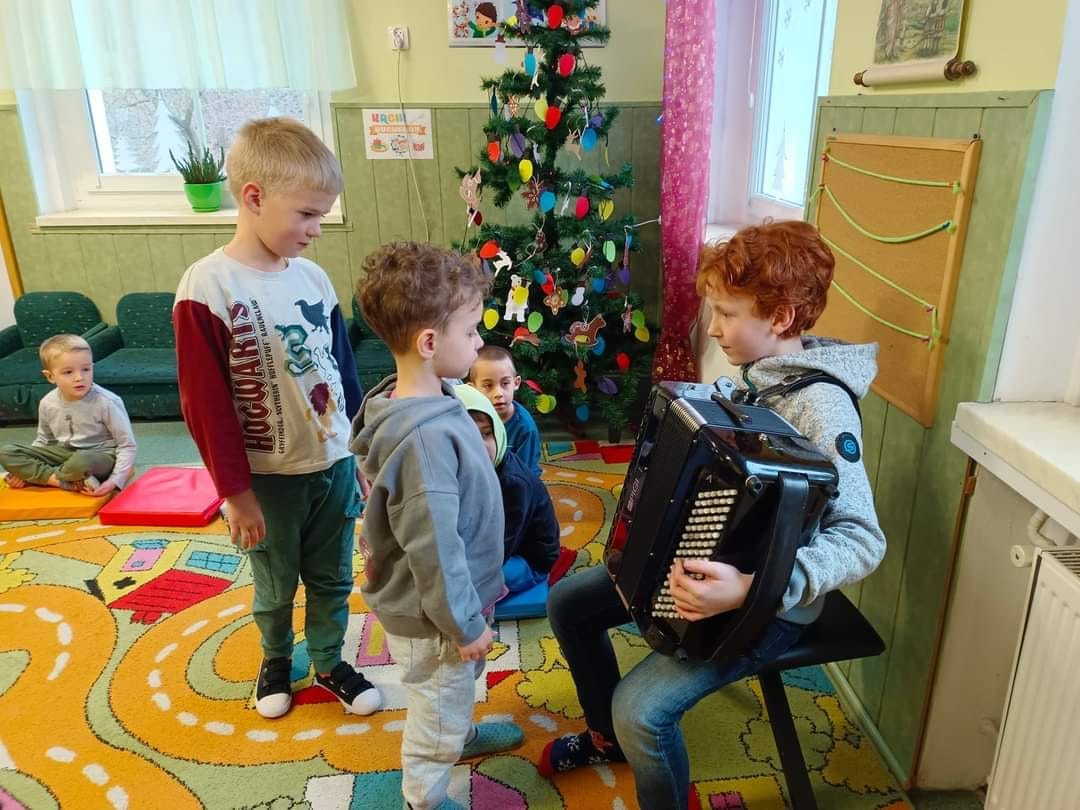 Gabryś opowiadał o swojej pasji, o tym jaką przyjemność może sprawiać gra na instrumencie. Było również wspólne kolędowanie i śpiewanie piosenek. Brawo Gabryś!