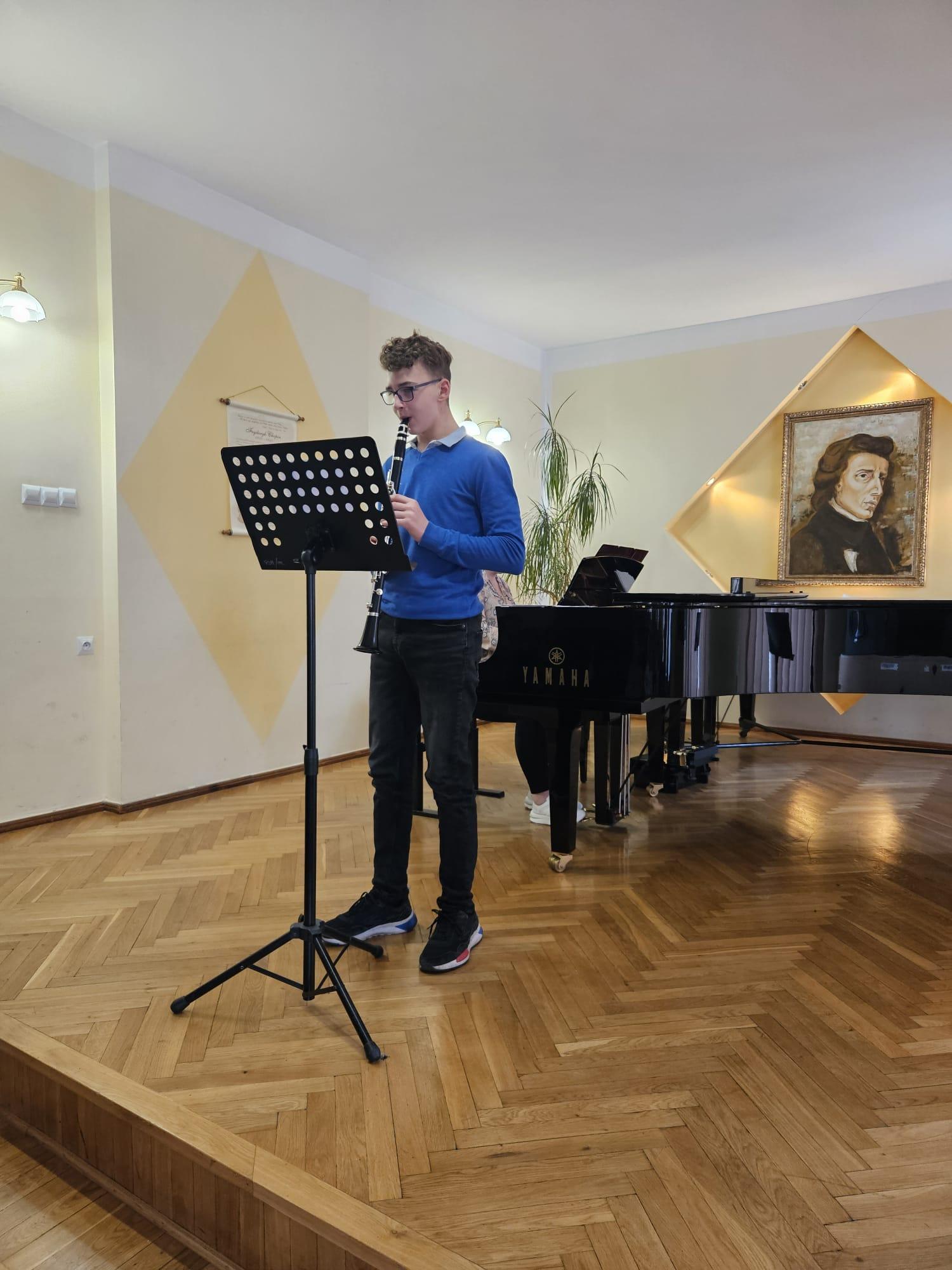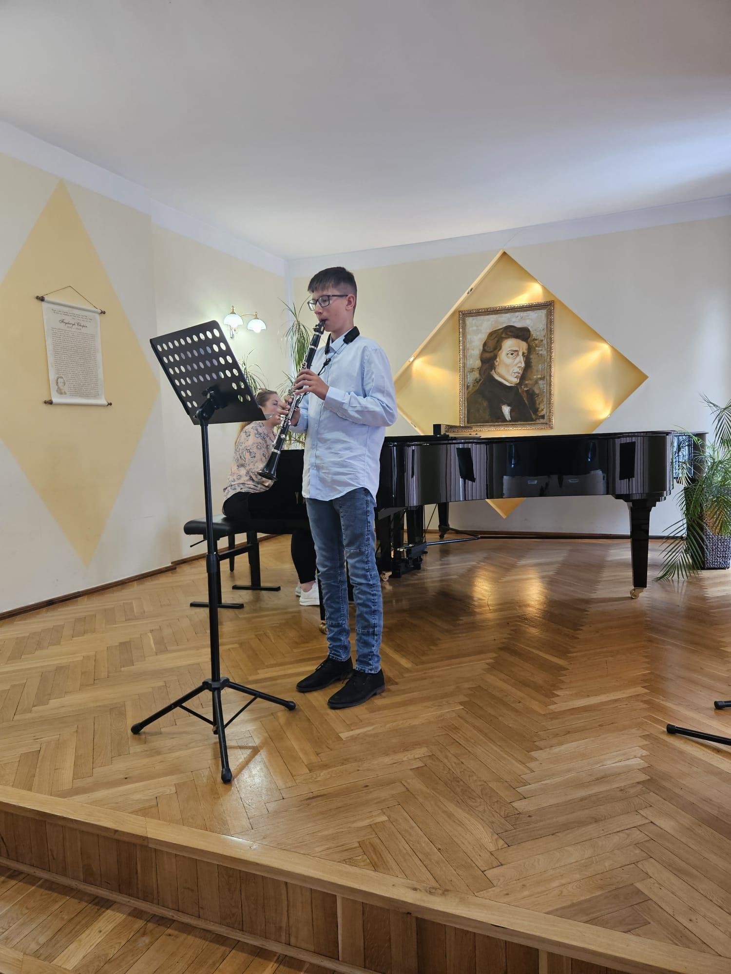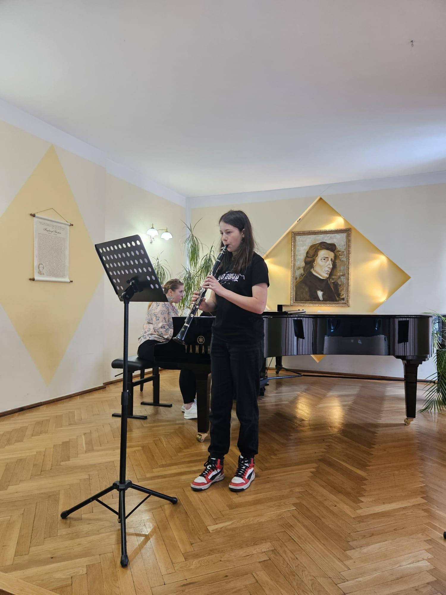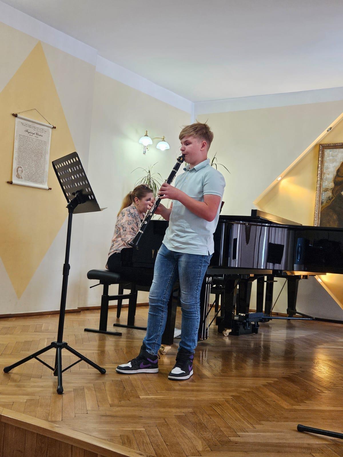 08.05 odbyły się kolejne majowe audycje, na których zaprezentowali się uczniowie klasy klarnetu P. Przemysława Polaka i saksofonu P. Katarzyny Brzeskiej - Krawczyk, a także gościnnie wystąpili uczniowie z klasy fortepianu, fletu oraz gitary. Przy fortepianie towarzyszyła nam Pani Iryna Yakymets.