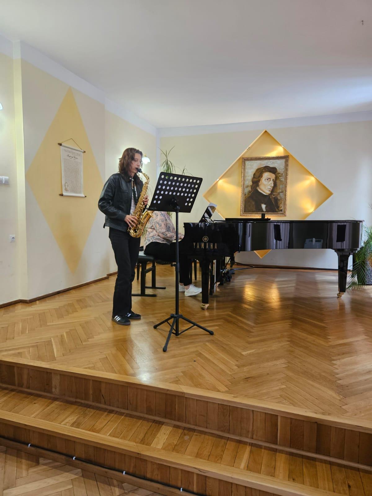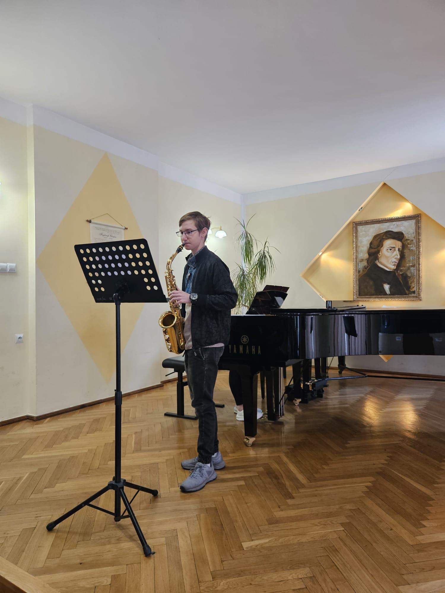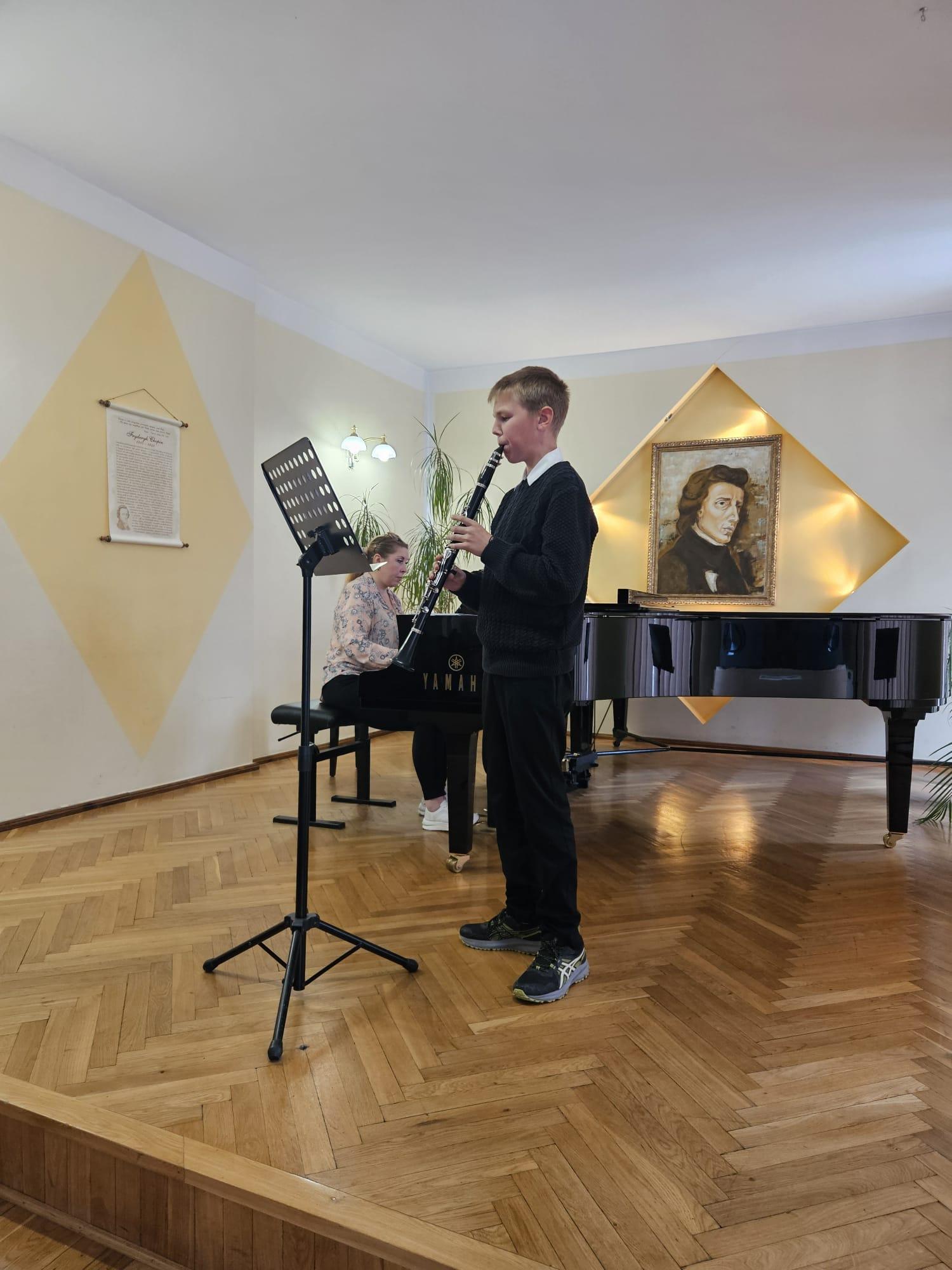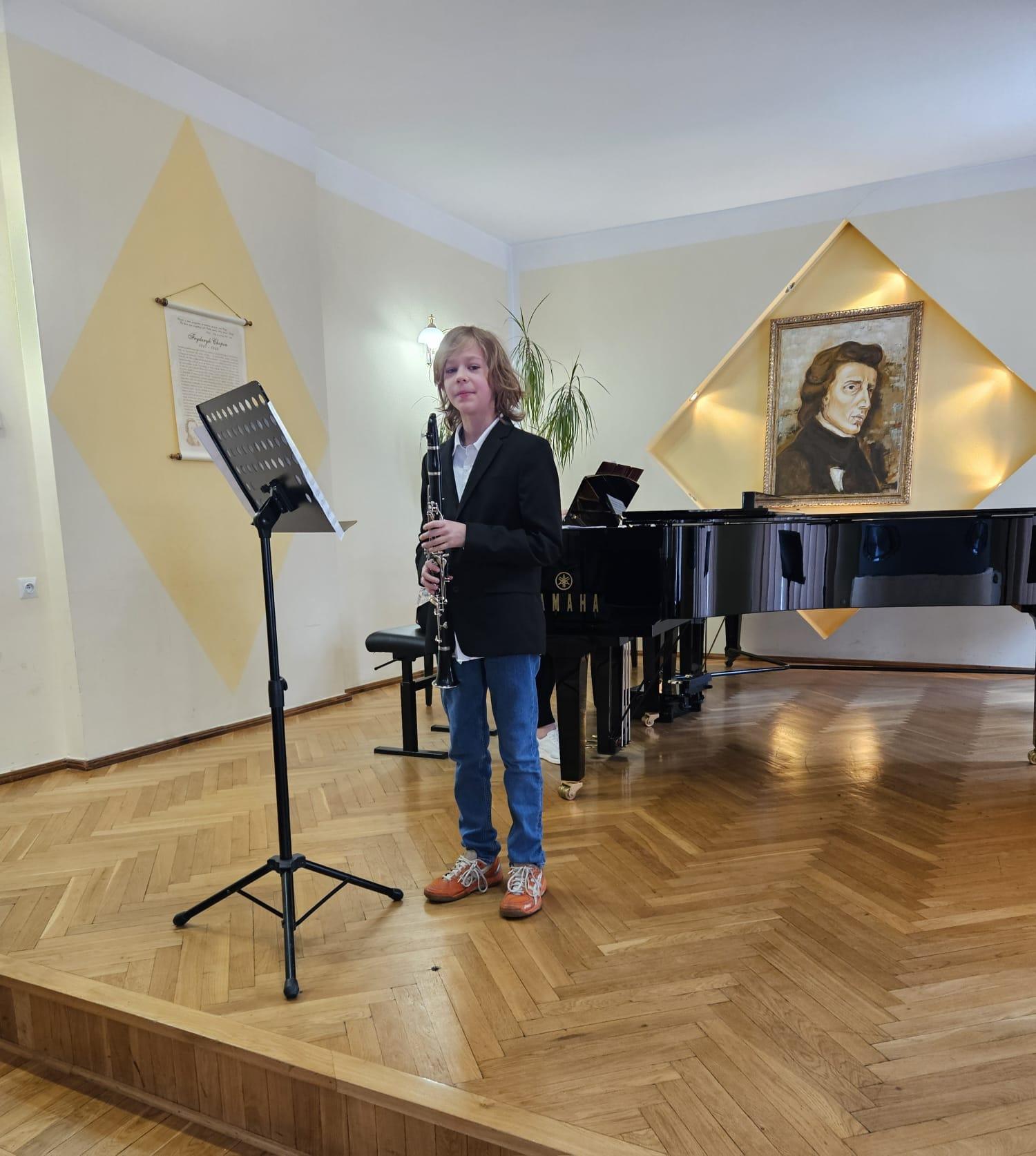 08.05 odbyły się kolejne majowe audycje, na których zaprezentowali się uczniowie klasy klarnetu P. Przemysława Polaka i saksofonu P. Katarzyny Brzeskiej - Krawczyk, a także gościnnie wystąpili uczniowie z klasy fortepianu, fletu oraz gitary. Przy fortepianie towarzyszyła nam Pani Iryna Yakymets.
