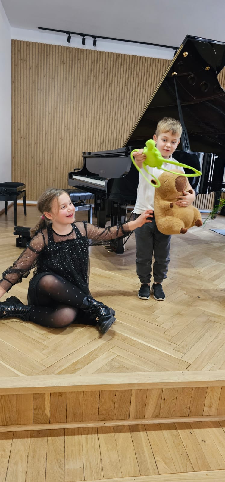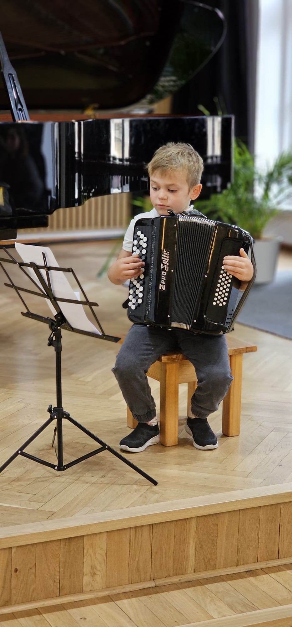 Młodzi muzycy zaprezentowali swoje umiejętności gry na różnych instrumentach: Piotr Kopeć (akordeon), Lena Urban (skrzypce), Jan Jasiński (wiolonczela), Weronika Ryba (flet), Michał Kustra, Maria Ziobrowska i Anna Kopeć (fortepian) oraz Maja Kliś (gitara). Dziękujemy pani Elżbiecie Malinowskiej za piękny akompaniament, pani Angelice Strzygockiej za zdjęcia, panu Tomaszowi Brusińskiemu za prezentację akordeonu oraz wszystkim uczniom za ich zaangażowanie i piękne występy!