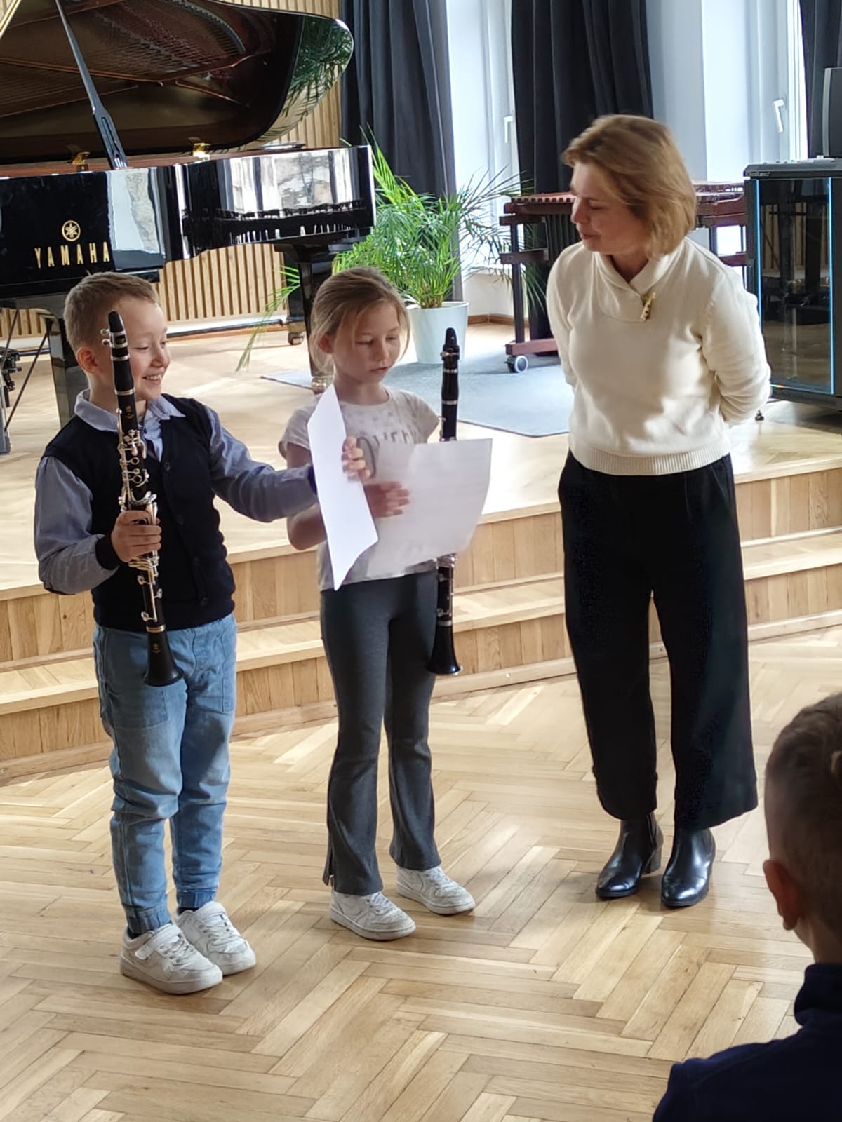 W piątek 22 listopada br. w naszej szkole odbyła się, ostatnia w tym sezonie, audycja muzyczna pt. "Złota pięciolinia zaprasza". Młodzi słuchacze podziwiali grę na: fortepianie, flecie, gitarze, skrzypcach i klarnecie.