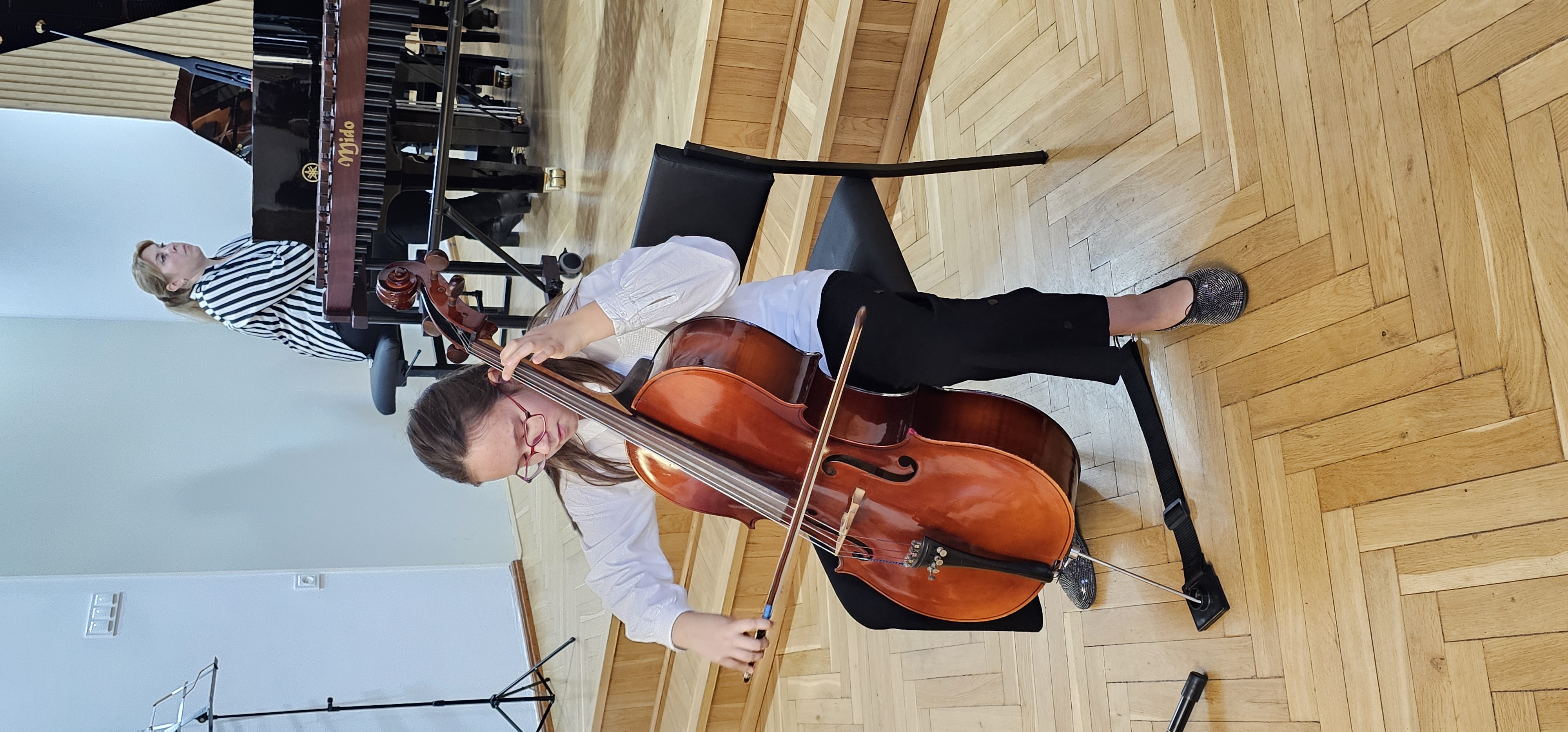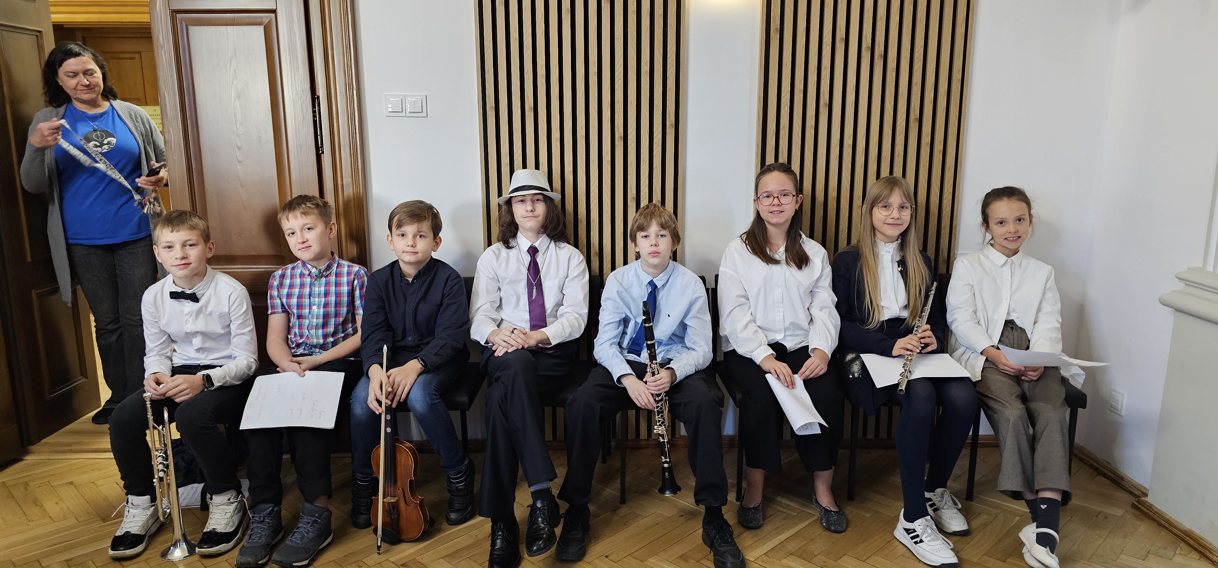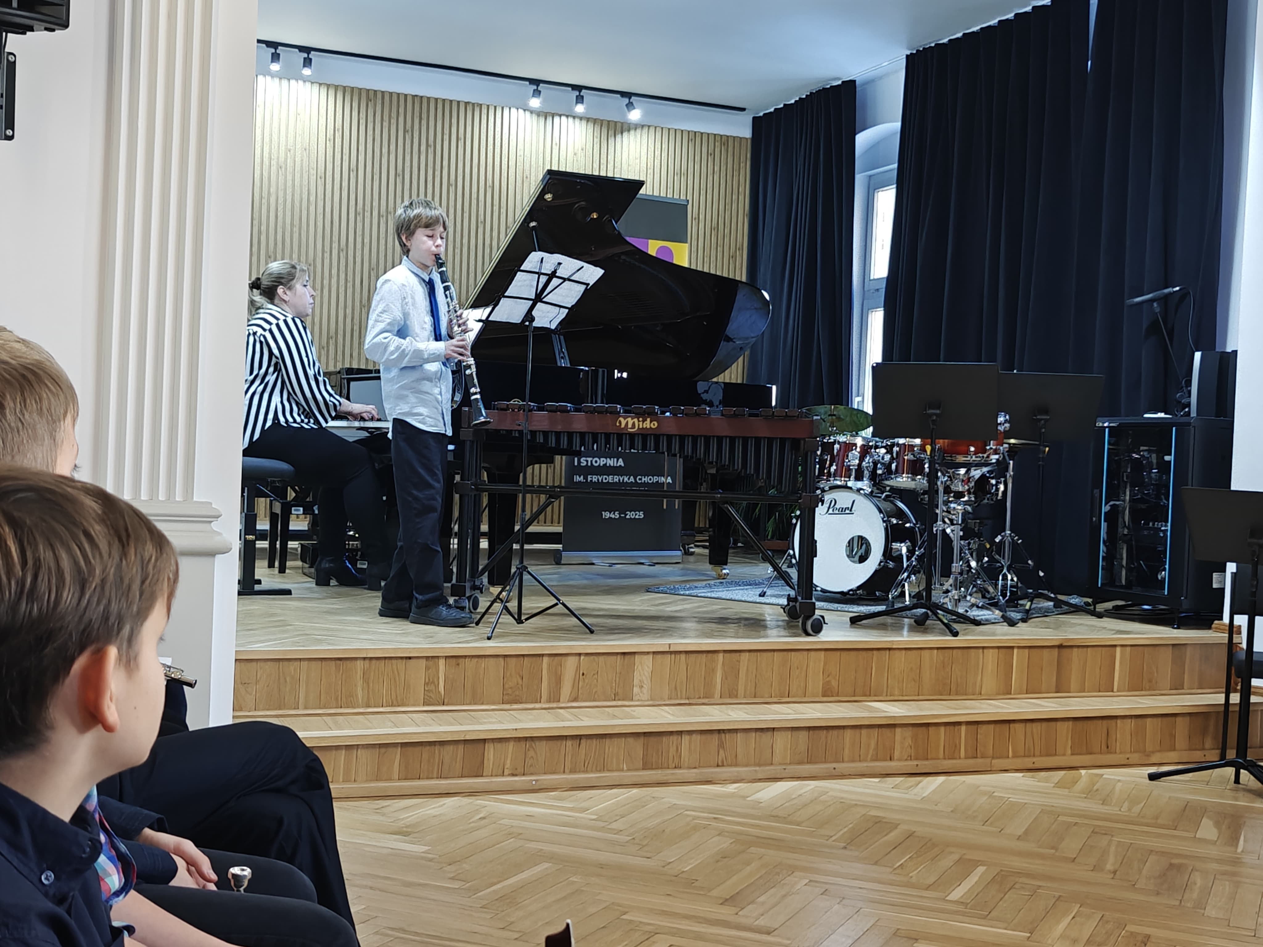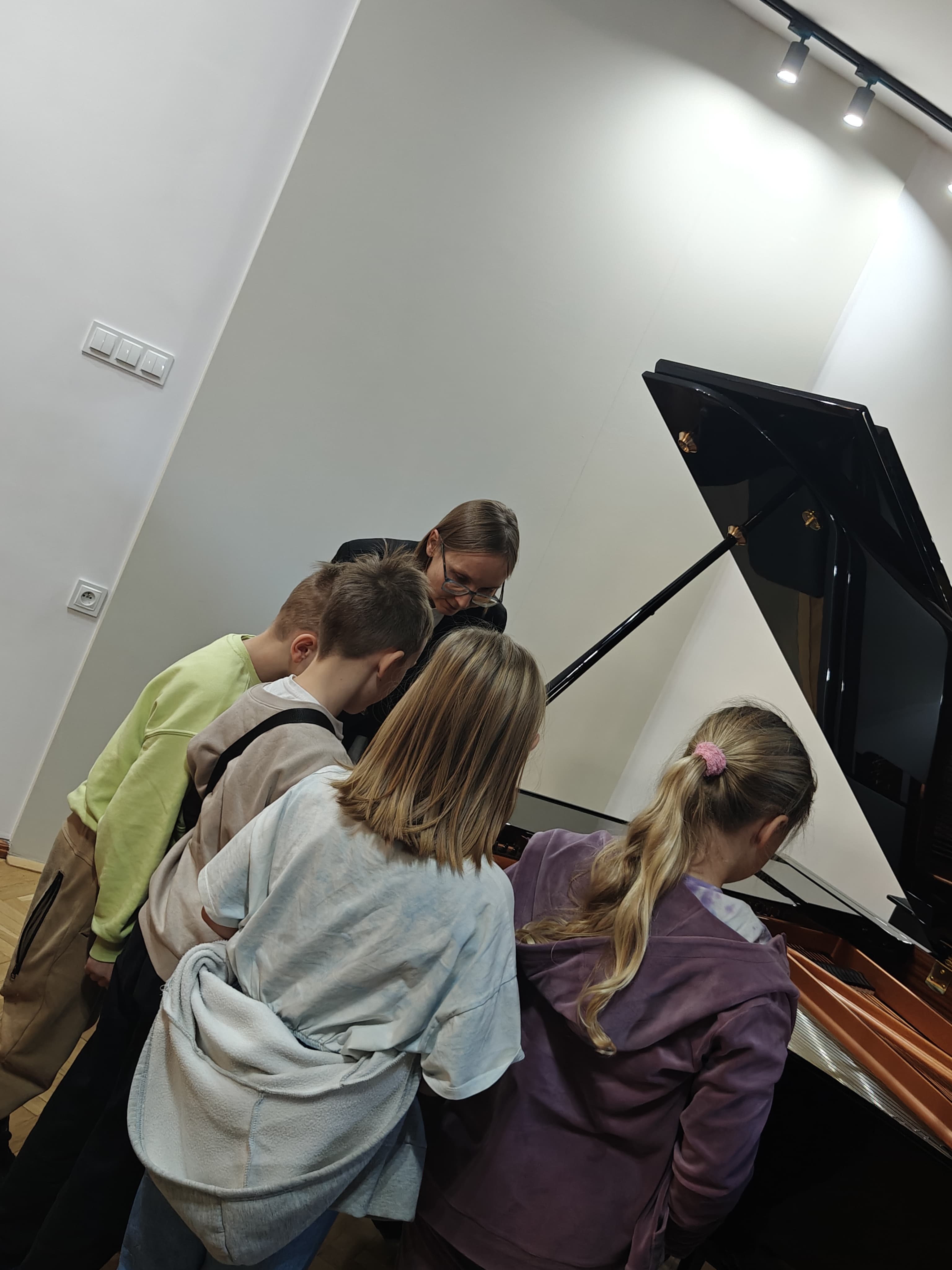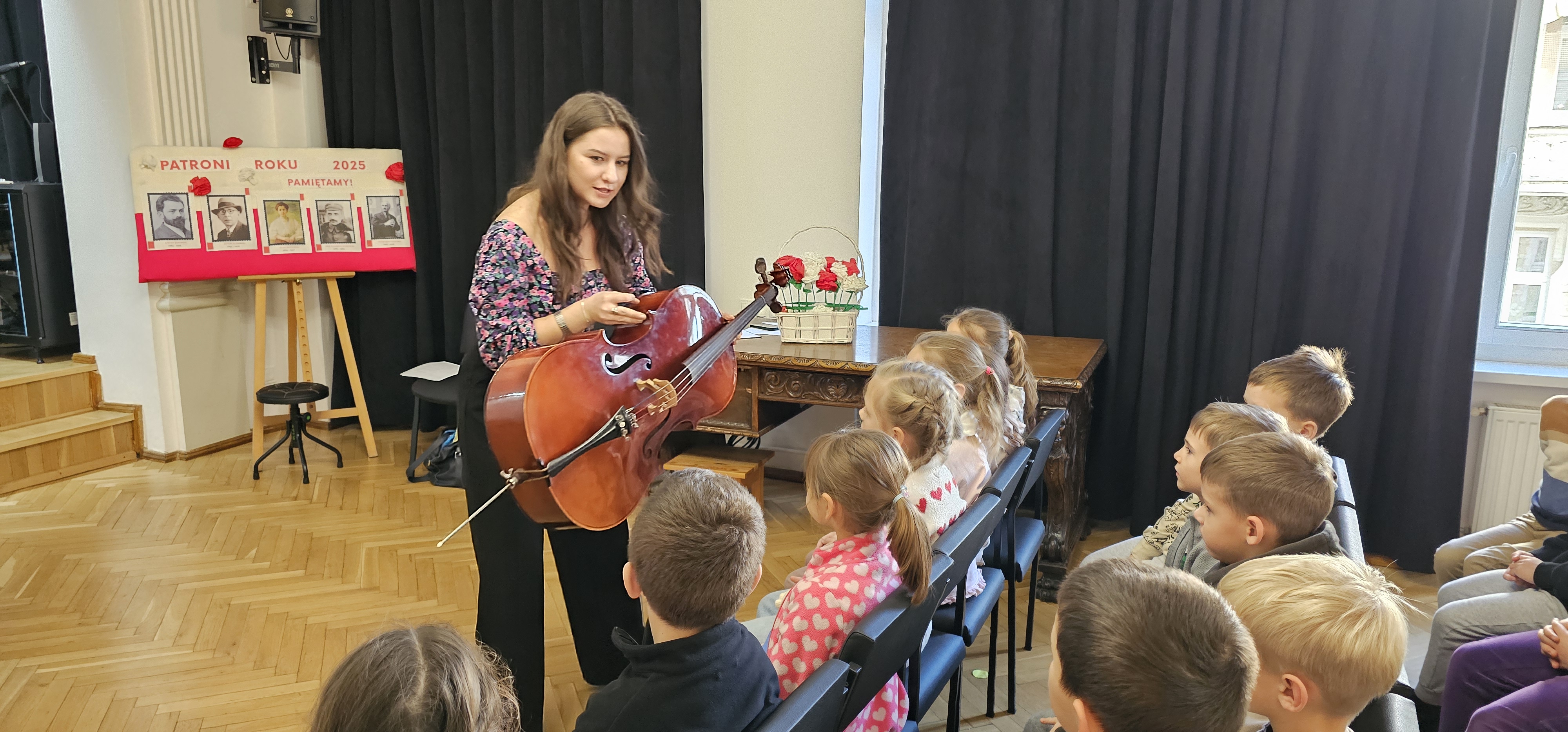 18 listopada 2025 r. odbyły się audycje muzyczne z cyklu "Złota pięciolinia zaprasza". W dwóch koncertach edukacyjnych uczestniczyły zaproszone dzieci z Przedszkola nr 1 i Przedszkola Promyczek w Kłodzku oraz ze Szkoły Podstawowej nr 1 klasy 1a, 1c, 3c i ze Szkoły Podstawowej nr 3 klasy 1a, 1d w Kłodzku. Audycje prowadziły panie Angelika Strzygocka i Patrycja Machała, przy fortepianie towarzyszyła naszym uczniom pani Iryna Yakymets.