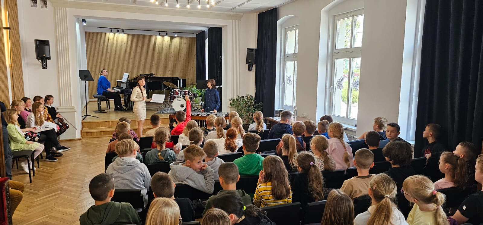 W dniu 20.05.2025 r. gościliśmy dzieci z Przedszkola nr 2 w Kłodzku, Szkoły Podstawowej nr 1 w Kłodzku (kl. IIa, IIb, IIIa, IIIb) oraz ze Szkoły Podstawowej nr 3 w Kłodzku (kl. IIIa). Koncerty poprowadziły p. Renata Fiałkowska-Duma, p. Dominik Jarocki oraz p. Natalia Mierzwa. Akompaniowała p. Iryna Yakymets.