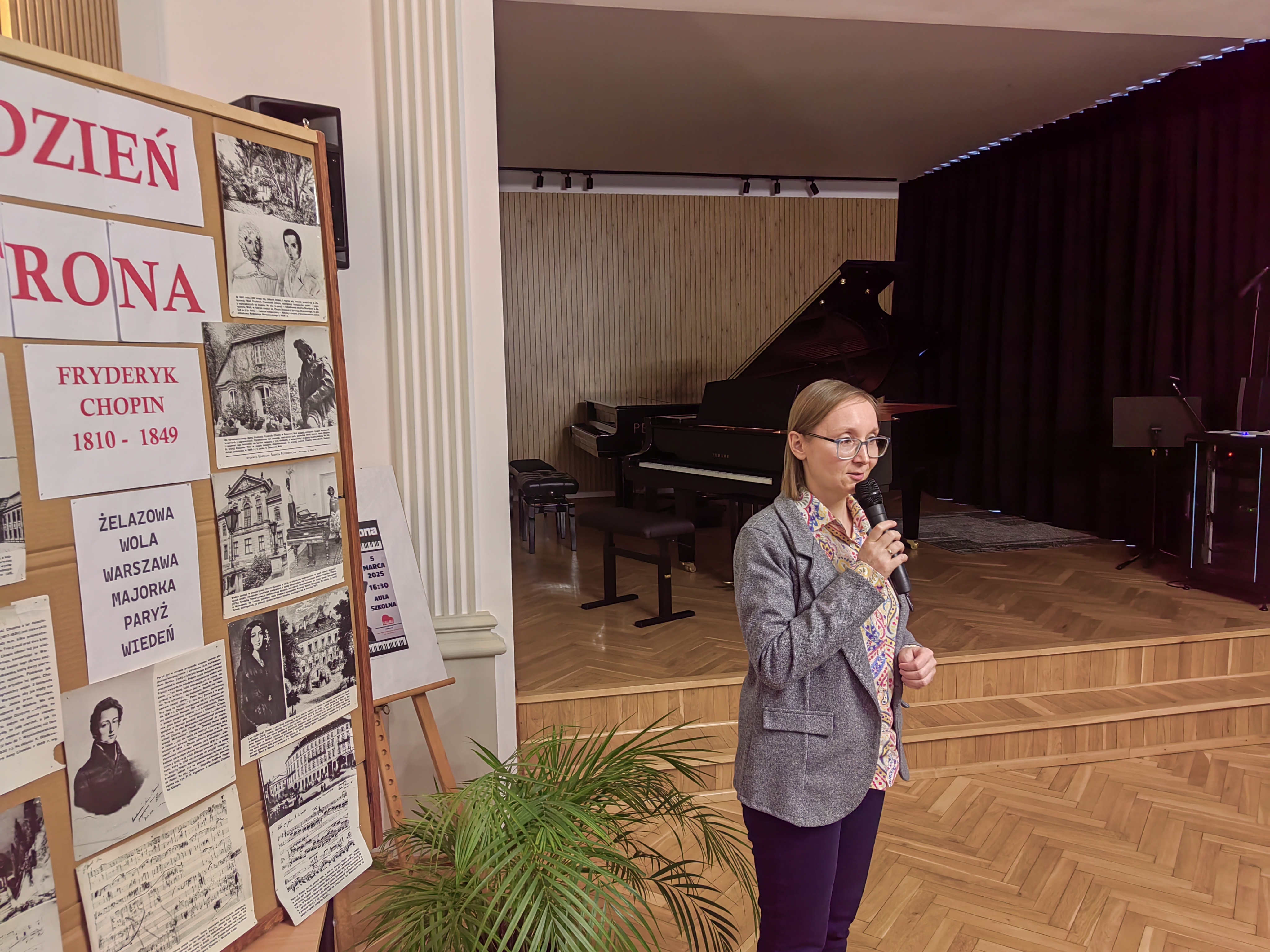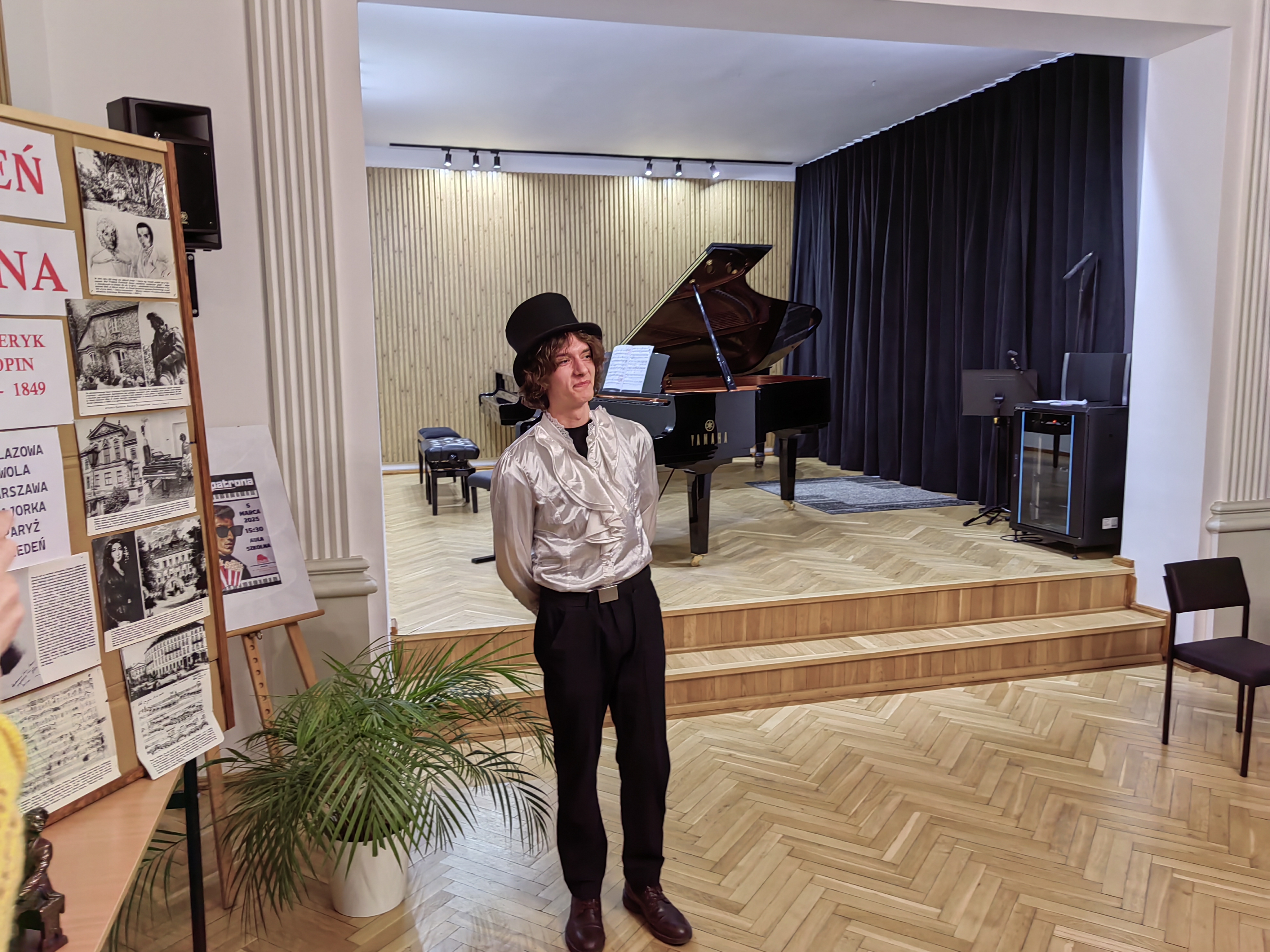 5 marca obchodziliśmy Dzień Patrona naszej szkoły. Z tej okazji przyjęliśmy wyjątkowego gościa, samego Fryderyka Chopina w osobie Franciszka Żbikowskiego, który w roli wybitnego Polaka wykonał Preludium Des-dur op. 28 nr 15 nazywane deszczowym.
