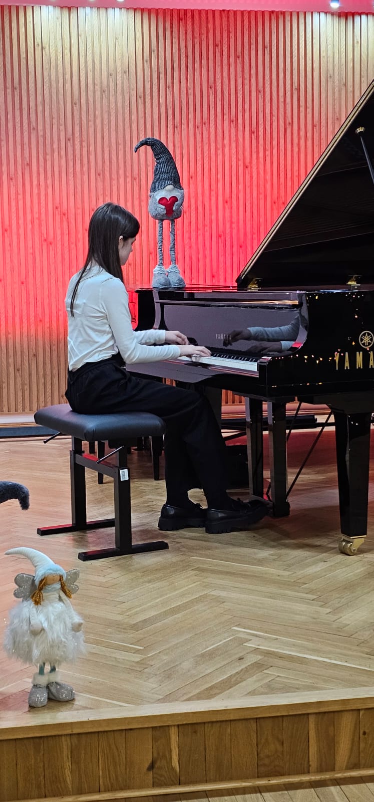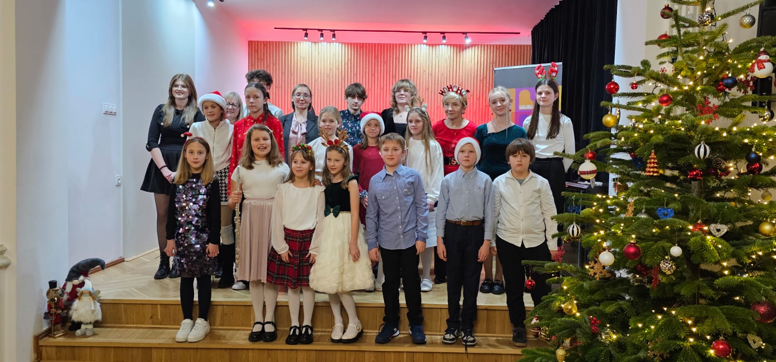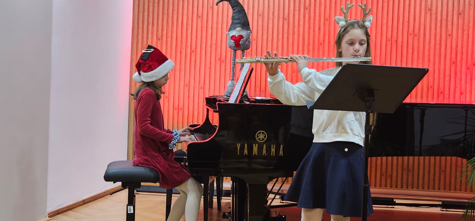 Młodzi pianiści przygotowali wspaniałe prezenty muzyczne. Oprócz występów solowych wystąpił fortepianowy duet rodzinny w składzie: Anna Podobińska razem z mamą panią Magdaleną, gościliśmy na scenie również duety fletowo-fortepianowe w składzie Milena Migrała i Kinga Petelska oraz Maja Gałązka i Natalia Bednarska . Gratulujemy wszystkim młodym artystom wspaniałych występów . Dziękujemy za przygotowanie uczniów paniom: Elżbiecie Malinowskiej , Bożenie Adamskiej🪈, Katarzynie Gałczyńskaiej i Angelice Strzygockiej , która również zorganizowała koncert