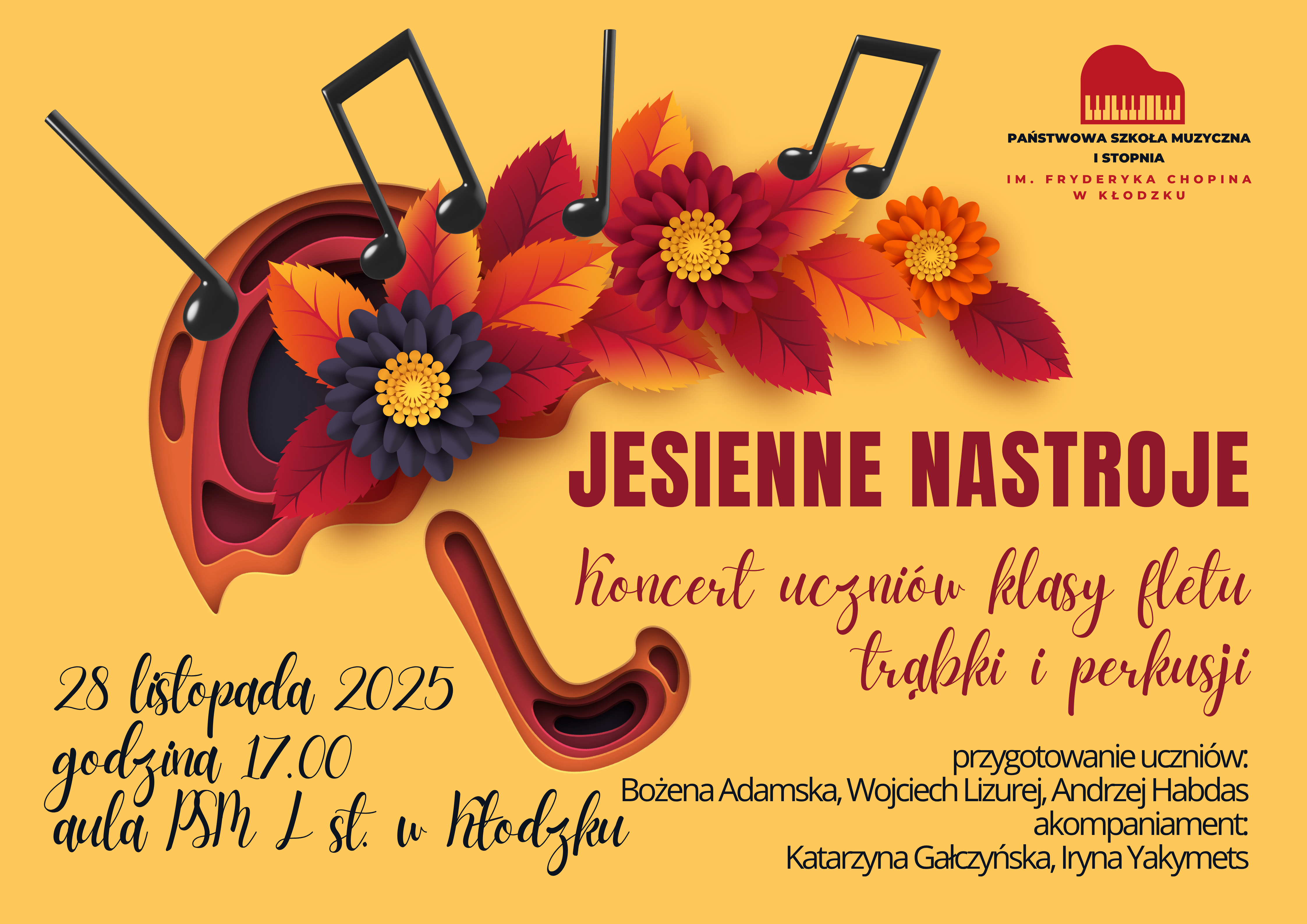 Jesienne nastroje - Koncert uczniów klasy fletu, trąbki i perkusji 28.11.2025