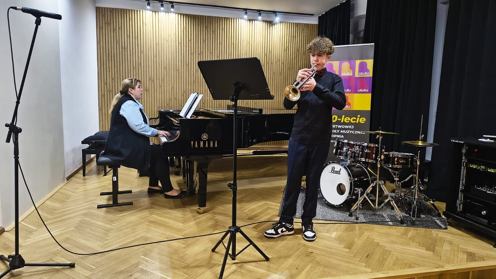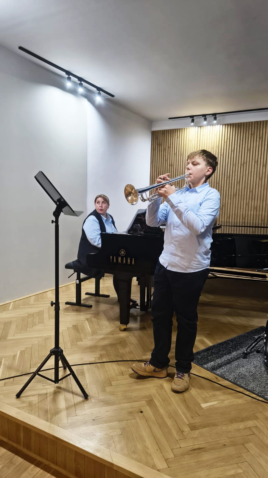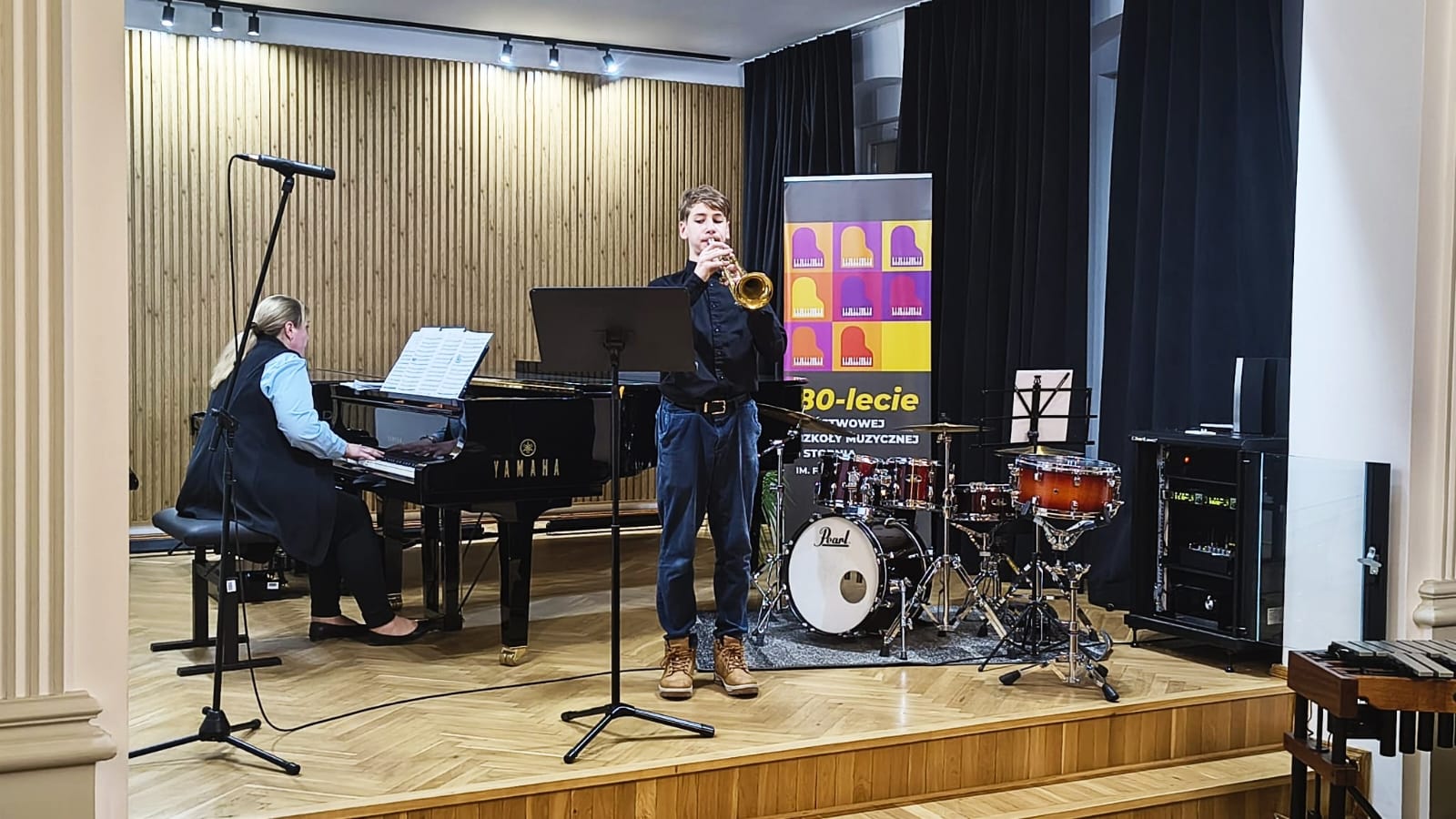 W koncercie udział wzięli uczniowie klasy fletu p. Bożeny Adamskiej, klasy trąbki p. Wojciecha Lizureja i klasy perkusji p. Andrzeja Habdasa.🪈🎺🥁 Koncert wypełniły utwory, nad którymi uczniowie pracowali przez ostatnie miesiące. Młodym wykonawcom akompaniowały p. Katarzyna Gałczyńska i p. Irena Yakymets. Uczniom gratulujemy udanych muzycznych prezentacji 👏👏👏i życzymy najwyższych ocen w nadchodzących półrocznych przesłuchaniach🍁☀🍁.