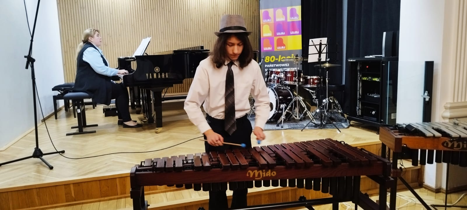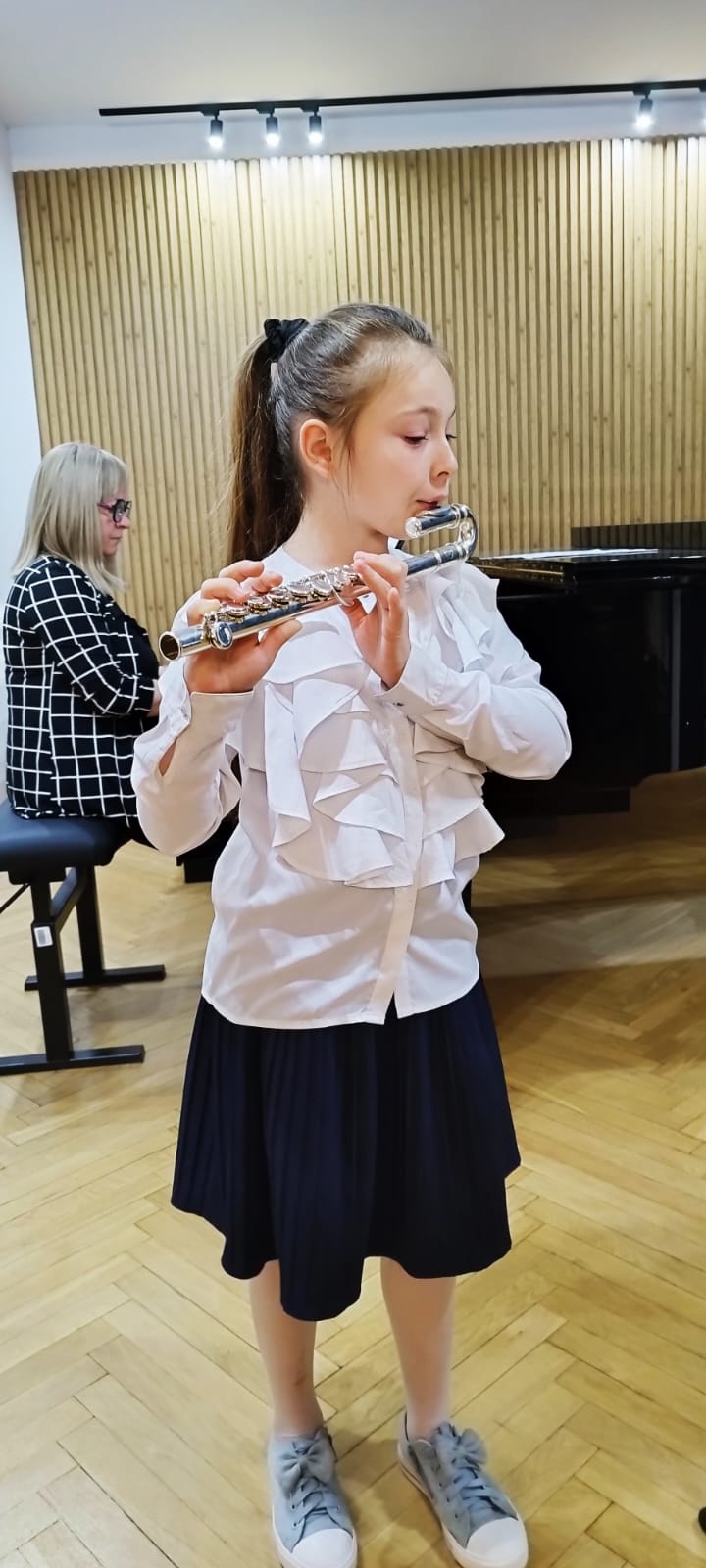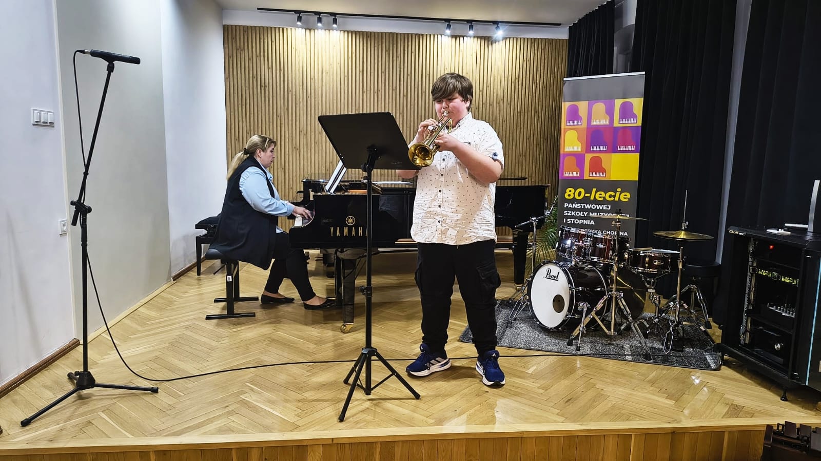 W koncercie udział wzięli uczniowie klasy fletu p. Bożeny Adamskiej, klasy trąbki p. Wojciecha Lizureja i klasy perkusji p. Andrzeja Habdasa.🪈🎺🥁 Koncert wypełniły utwory, nad którymi uczniowie pracowali przez ostatnie miesiące. Młodym wykonawcom akompaniowały p. Katarzyna Gałczyńska i p. Irena Yakymets. Uczniom gratulujemy udanych muzycznych prezentacji 👏👏👏i życzymy najwyższych ocen w nadchodzących półrocznych przesłuchaniach🍁☀🍁.