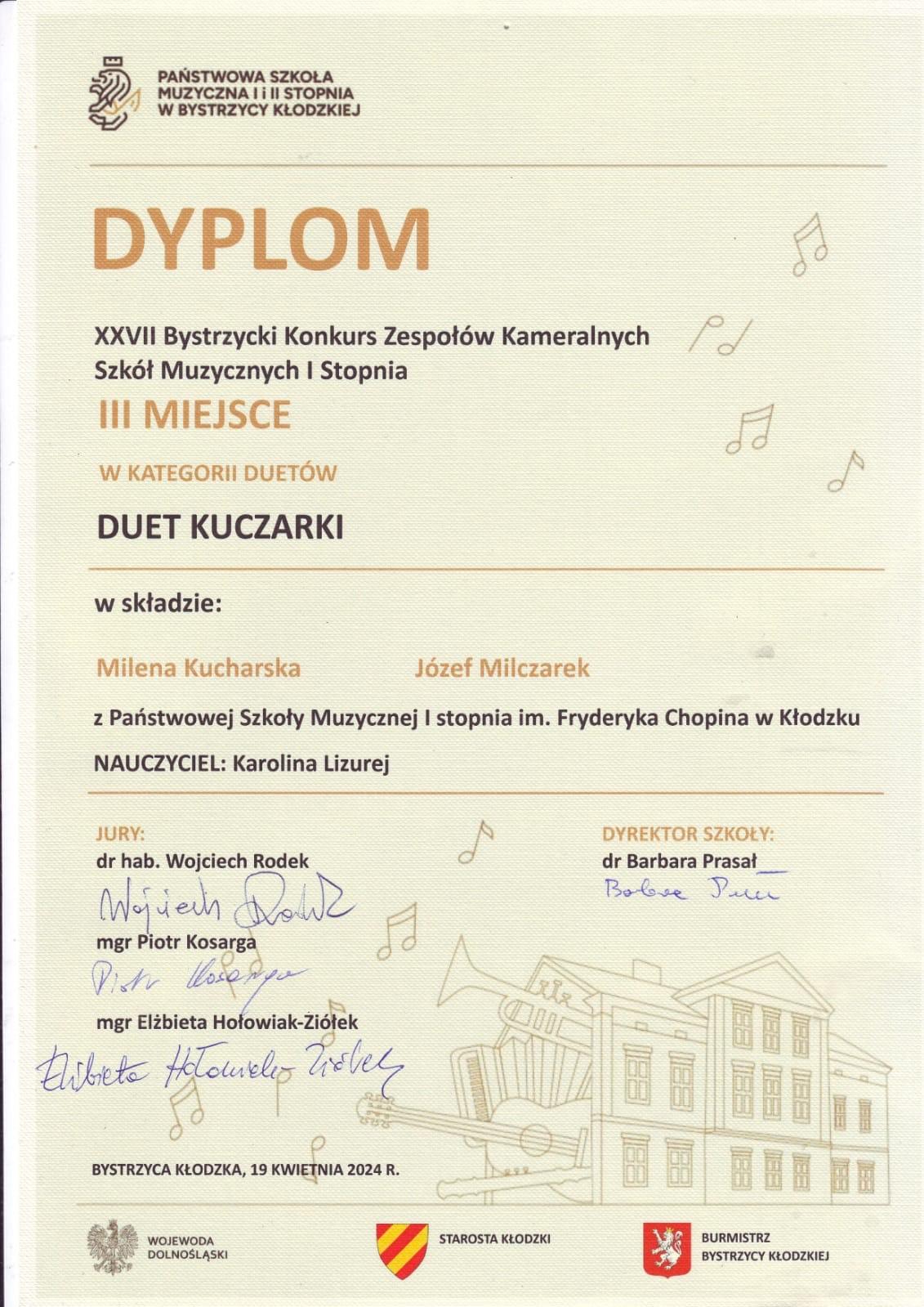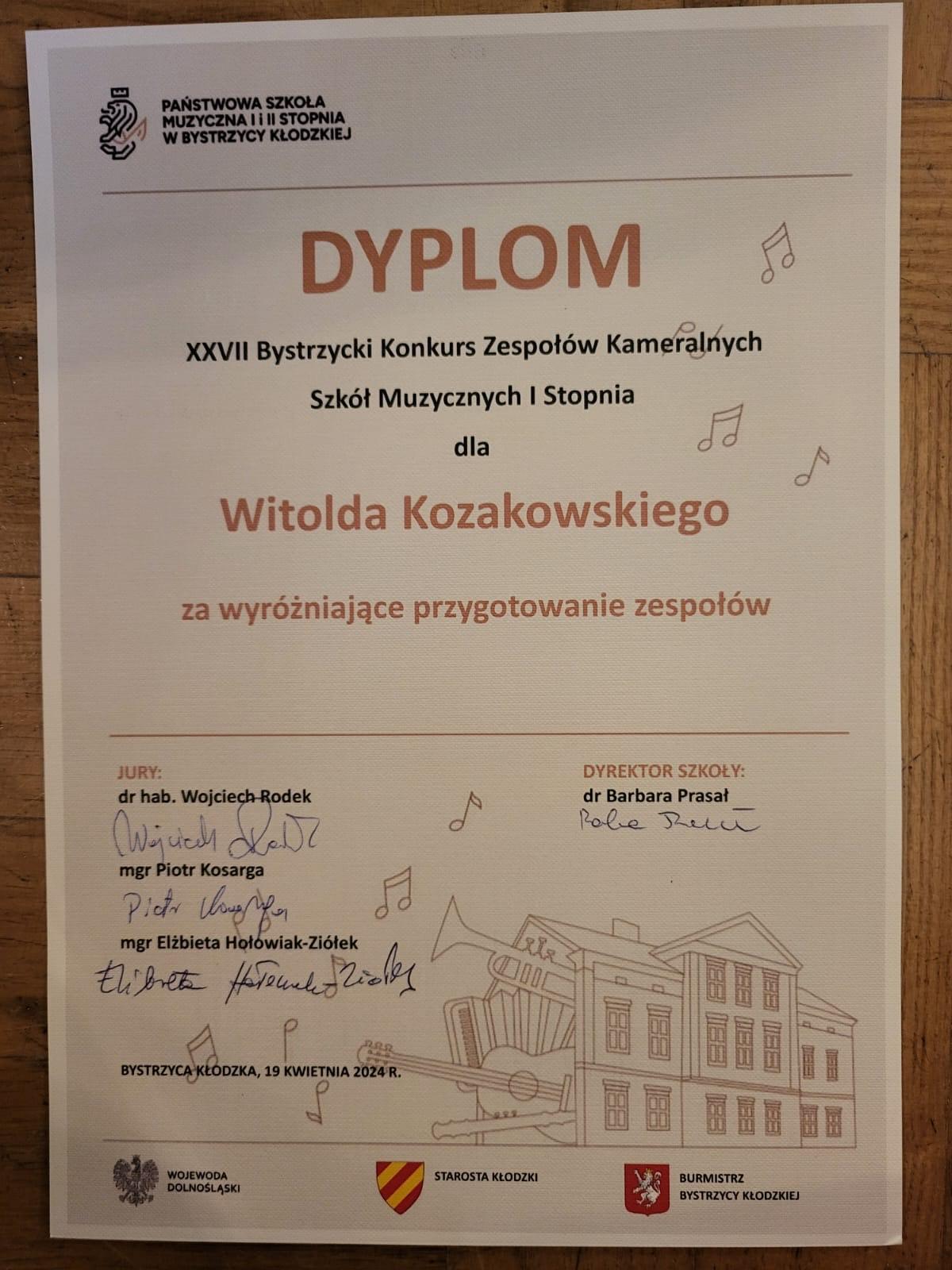 Kolejne fantastyczne sukcesy naszych uczniów! na XXVII Bystrzyckim Konkursie Zespołów Kameralnych w Bystrzycy Kłodzkiej - 19 kwietnia 2024