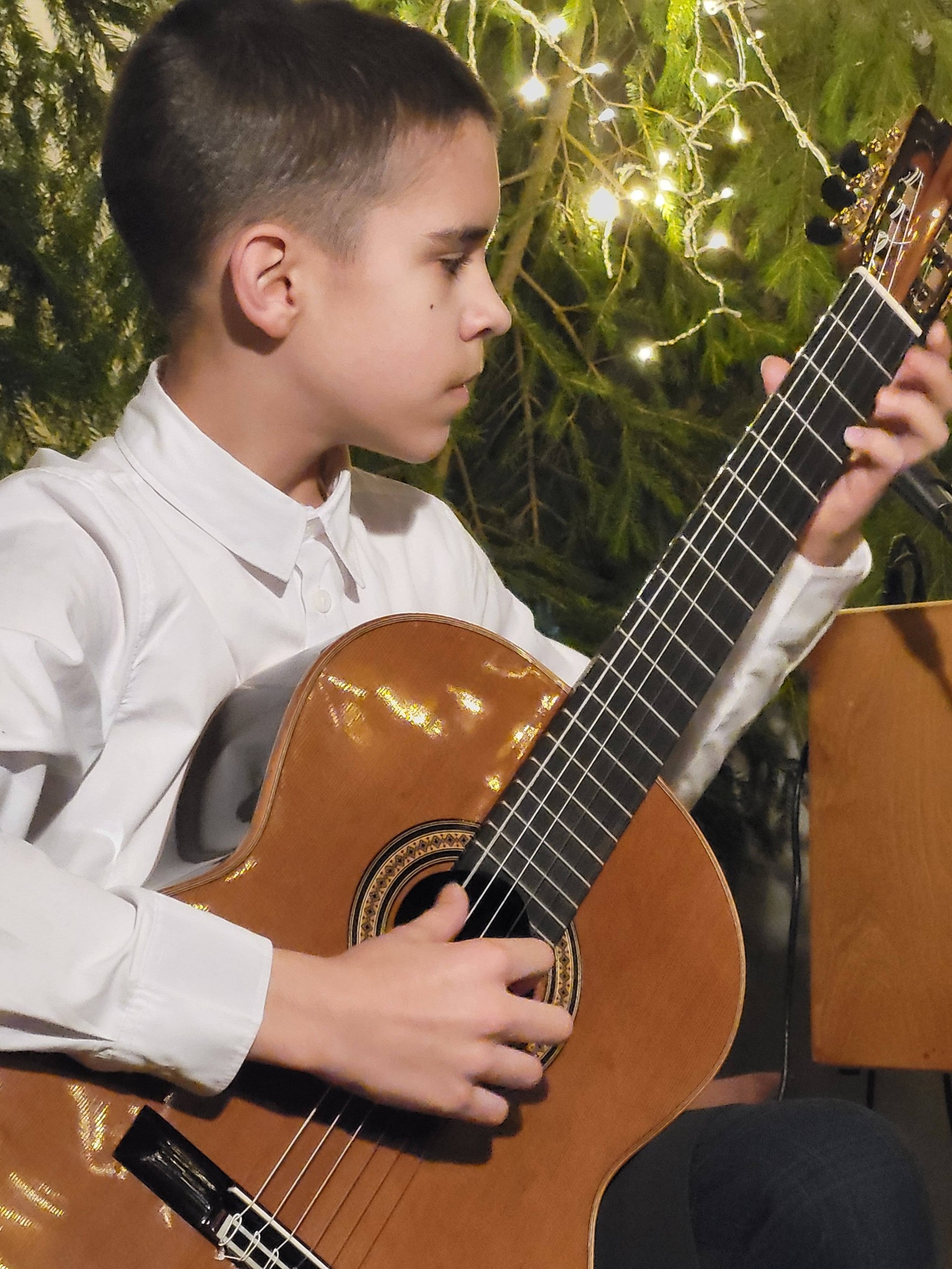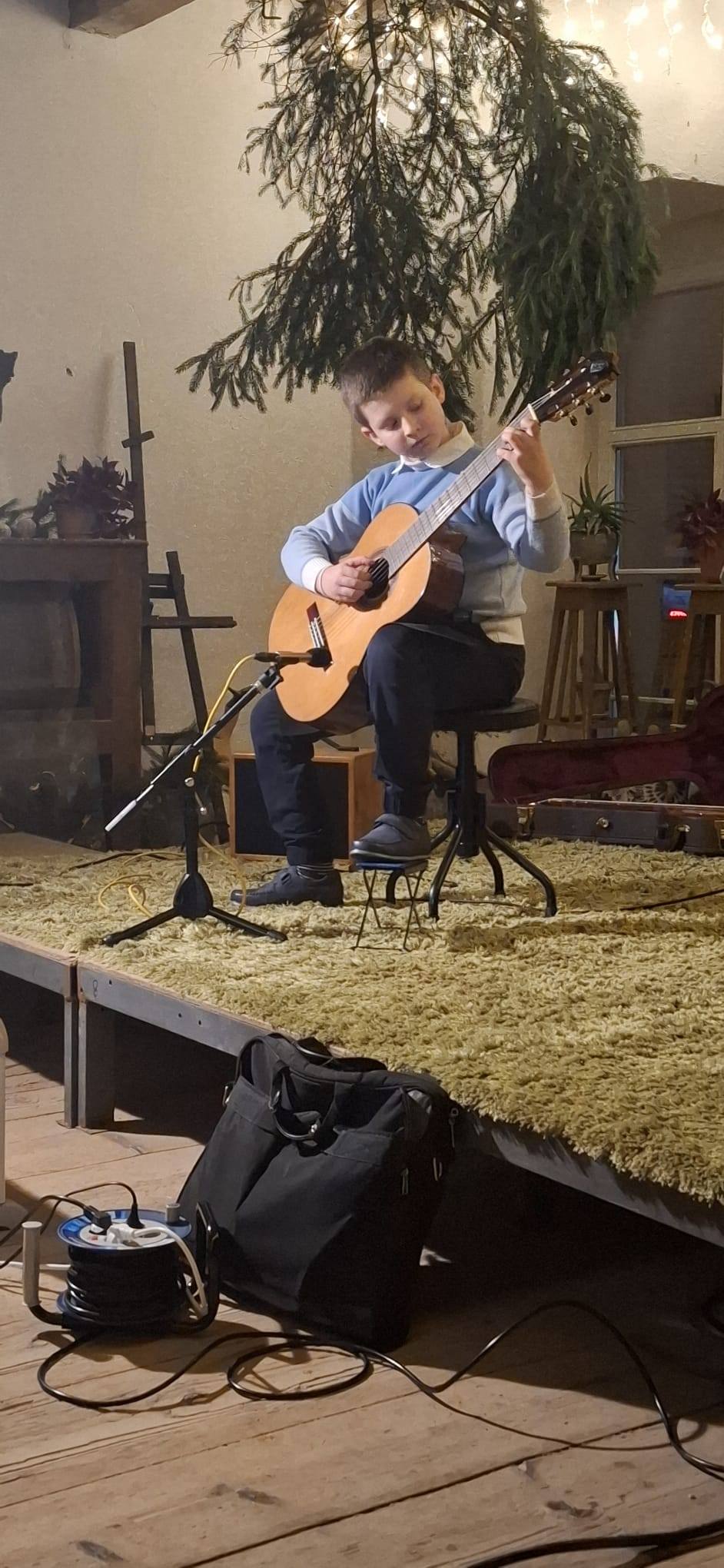 W koncercie wzięli udział uczniowie ze szkół muzycznych z Kłodzka, Bystrzycy Kłodzkiej i Wałbrzycha, zespół śpiewaczy "Cyraneczki" oraz Dariusz Grzybkowski (śpiew, gitara). Z naszej szkoły wystąpili uczniowie z klasy Agnieszki Kozakowskiej: Jakub Sobol oraz Emilian Klimonda. Gitarzyści zaprezentowali kolędy w różnych ciekawych opracowaniach i aranżacjach. Podczas koncertu nie zabrakło też wspólnego kolędowania i degustacji świątecznych smakołyków. Gratulujemy aktywności koncertowej!