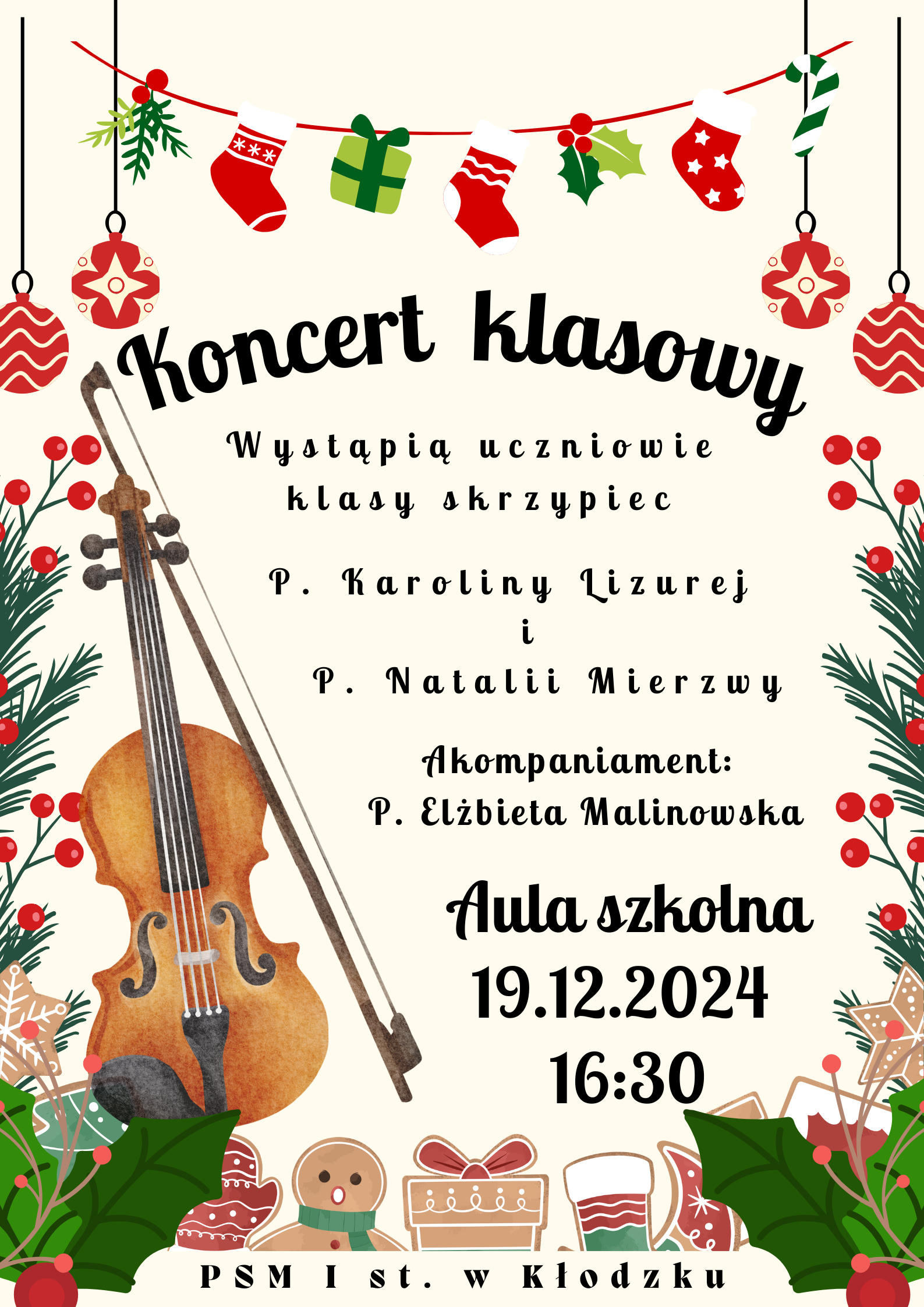 Koncert klasy skrzypiec p. Karoliny Lizurej i p. Natalii Mierzwy - 19 grudnia 2024