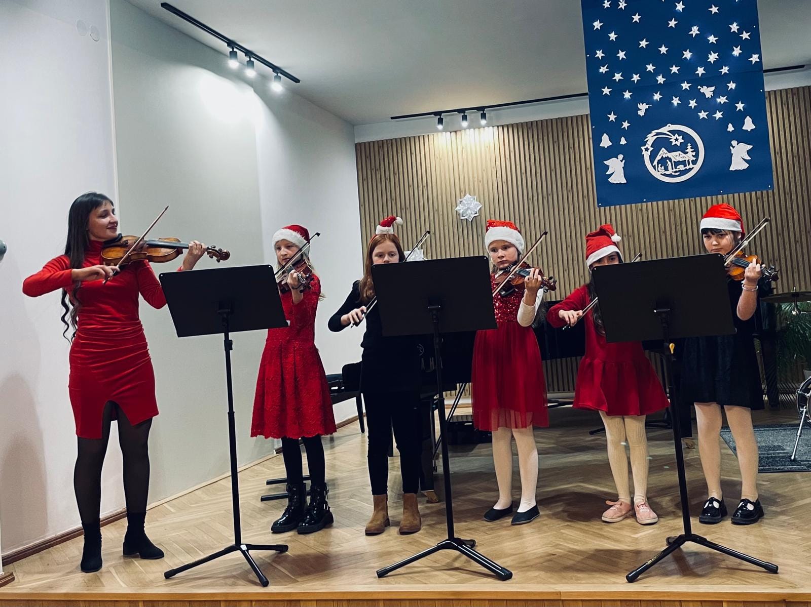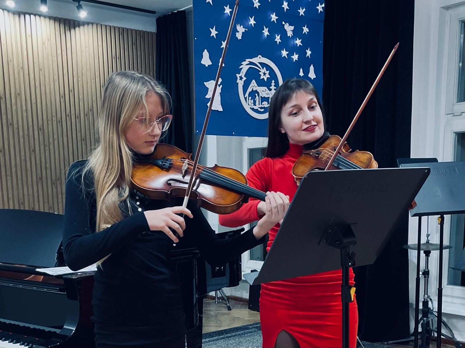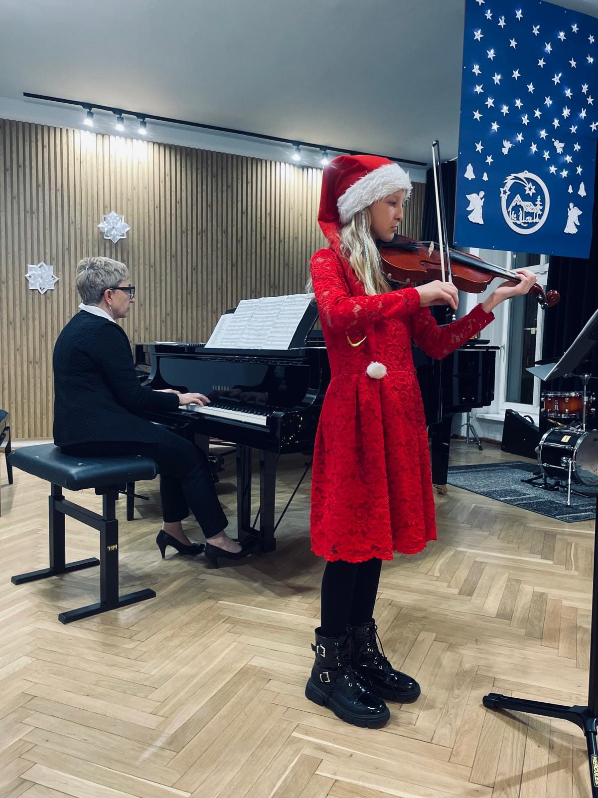 Na scenie zaprezentowali się zarówno soliści, jak i zespoły kameralne, które wystąpiły z towarzyszeniem swoich nauczycielek. Gratulujemy uczniom i nauczycielkom pięknych występów, pełnych pasji i zaangażowania. Serdeczne podziękowania składamy także p. Elżbiecie Malinowskiej za jej piękny akompaniament. Życzymy wszystkim zdrowych i radosnych Świąt Bożego Narodzenia oraz Szczęśliwego Nowego Roku!