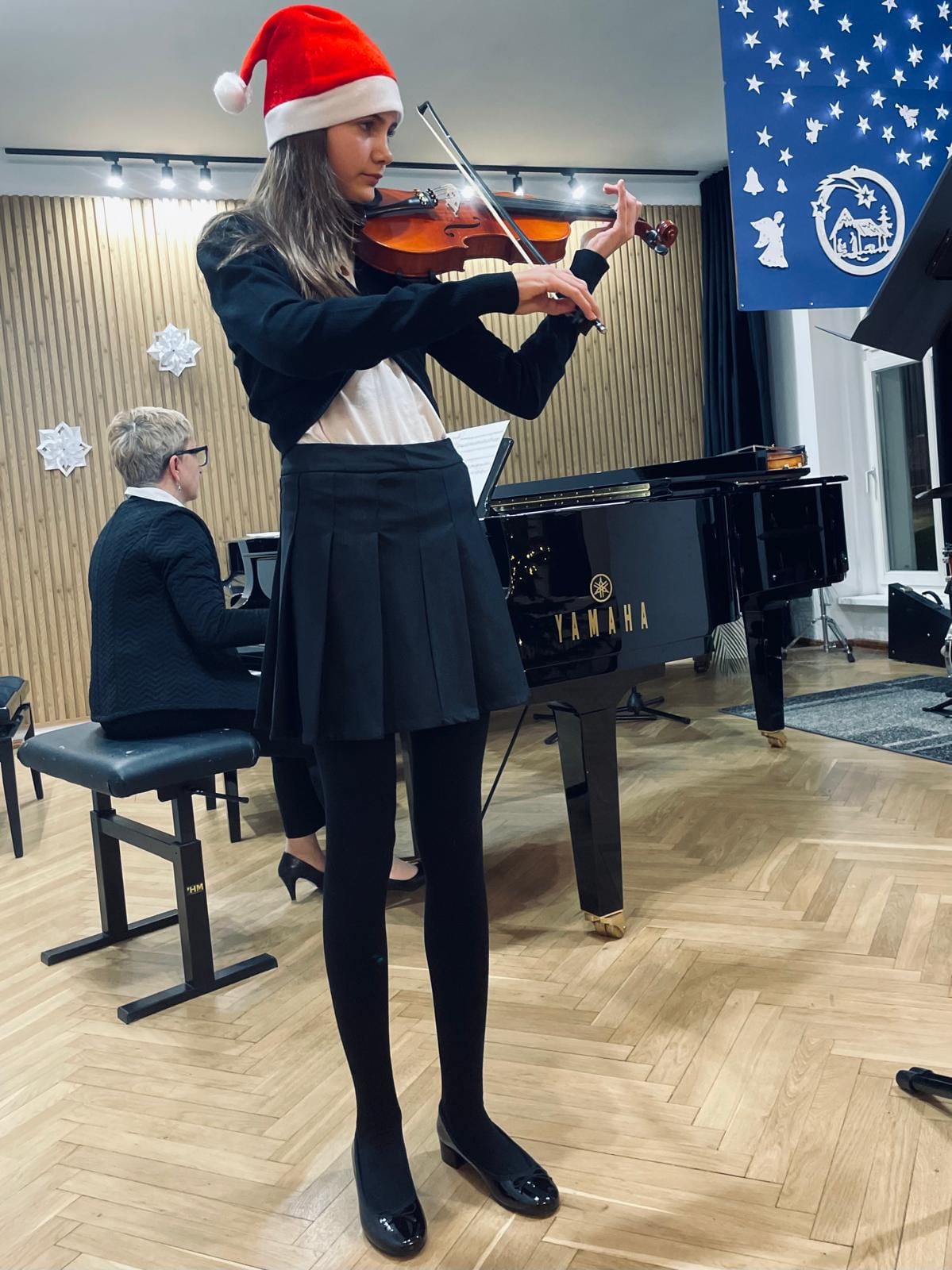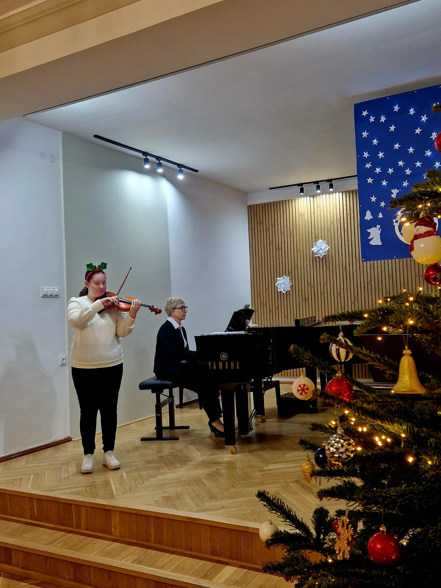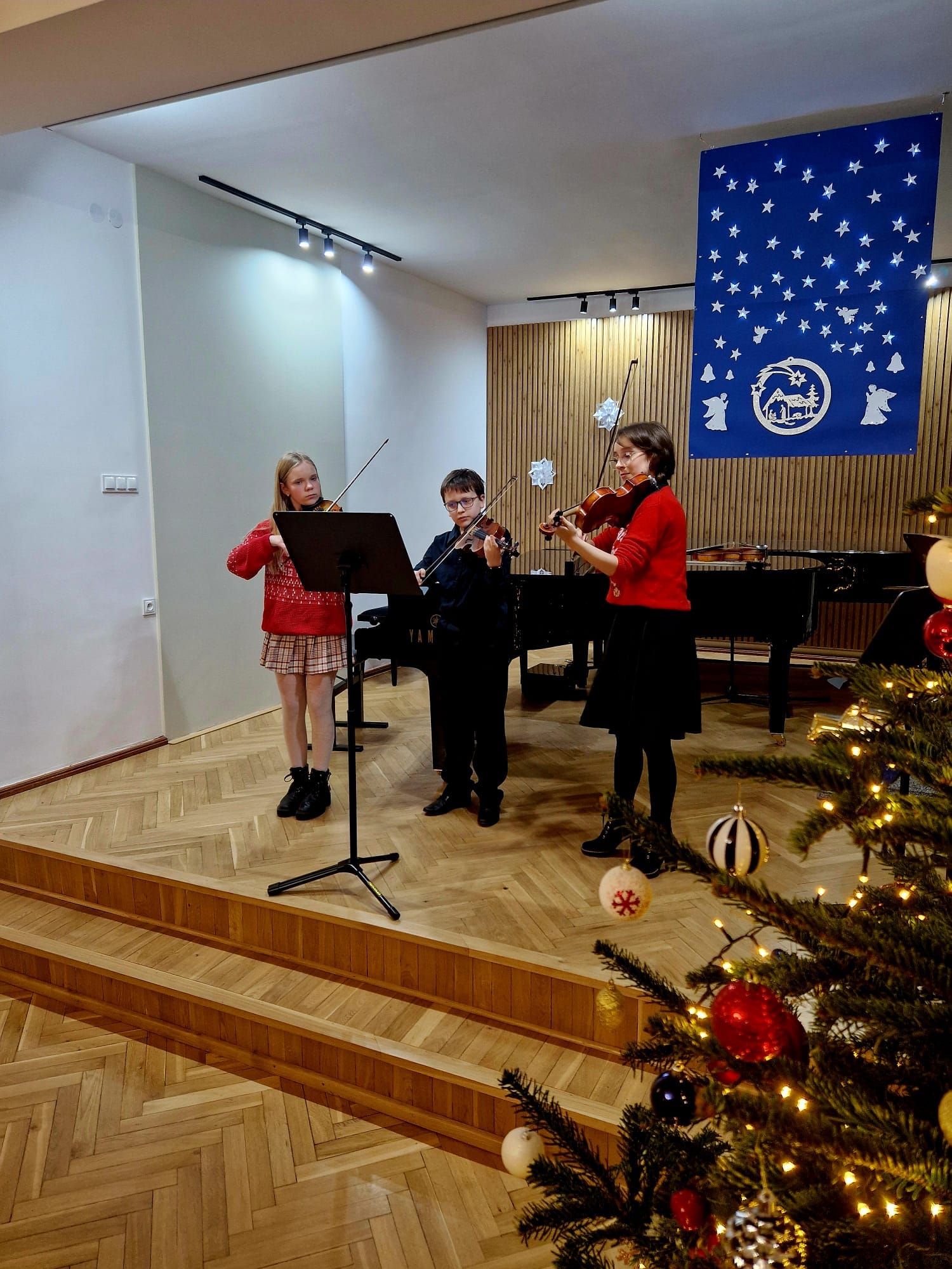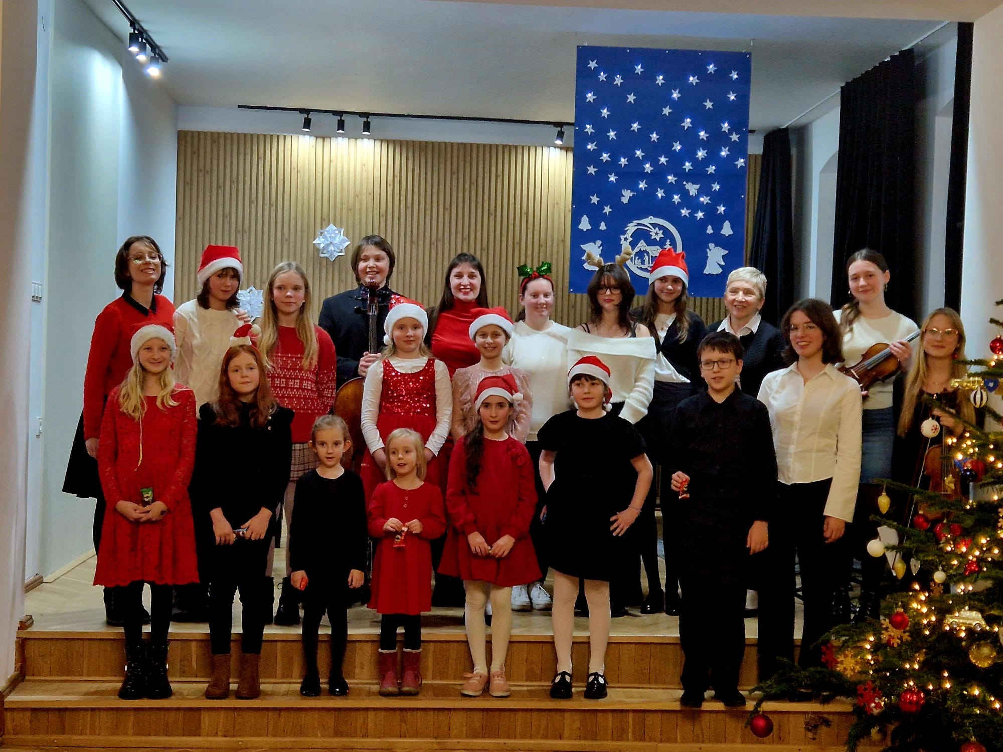 Na scenie zaprezentowali się zarówno soliści, jak i zespoły kameralne, które wystąpiły z towarzyszeniem swoich nauczycielek. Gratulujemy uczniom i nauczycielkom pięknych występów, pełnych pasji i zaangażowania. Serdeczne podziękowania składamy także p. Elżbiecie Malinowskiej za jej piękny akompaniament. Życzymy wszystkim zdrowych i radosnych Świąt Bożego Narodzenia oraz Szczęśliwego Nowego Roku!