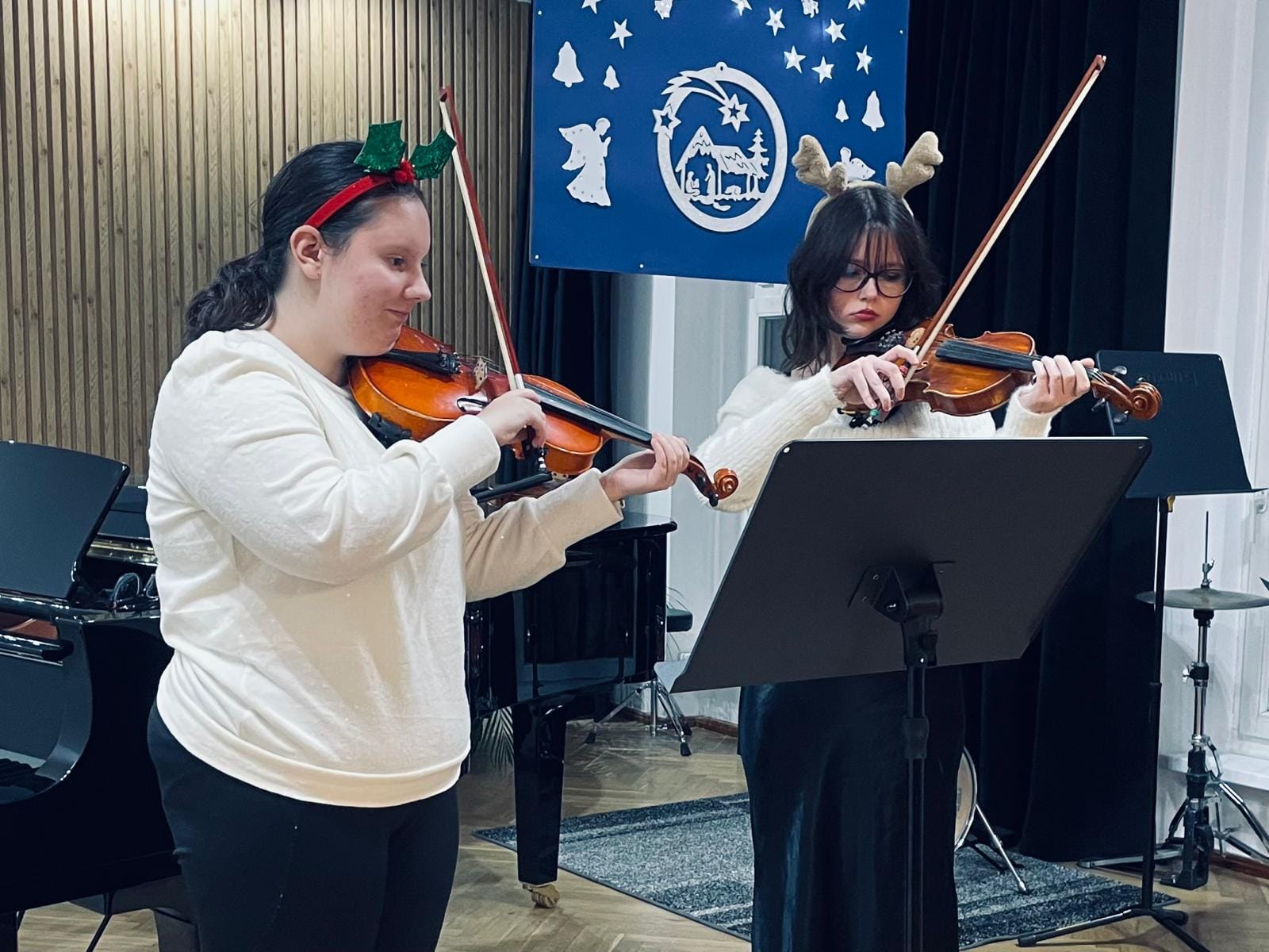W dniu 19.12.2024 r. odbył się koncert klas skrzypiec p. Natalii Mierzwy i p. Karoliny Lizurej ,który zachwycił wyjątkową, ciepłą atmosferą oraz wspaniałymi interpretacjami utworów skrzypcowych i kolęd.