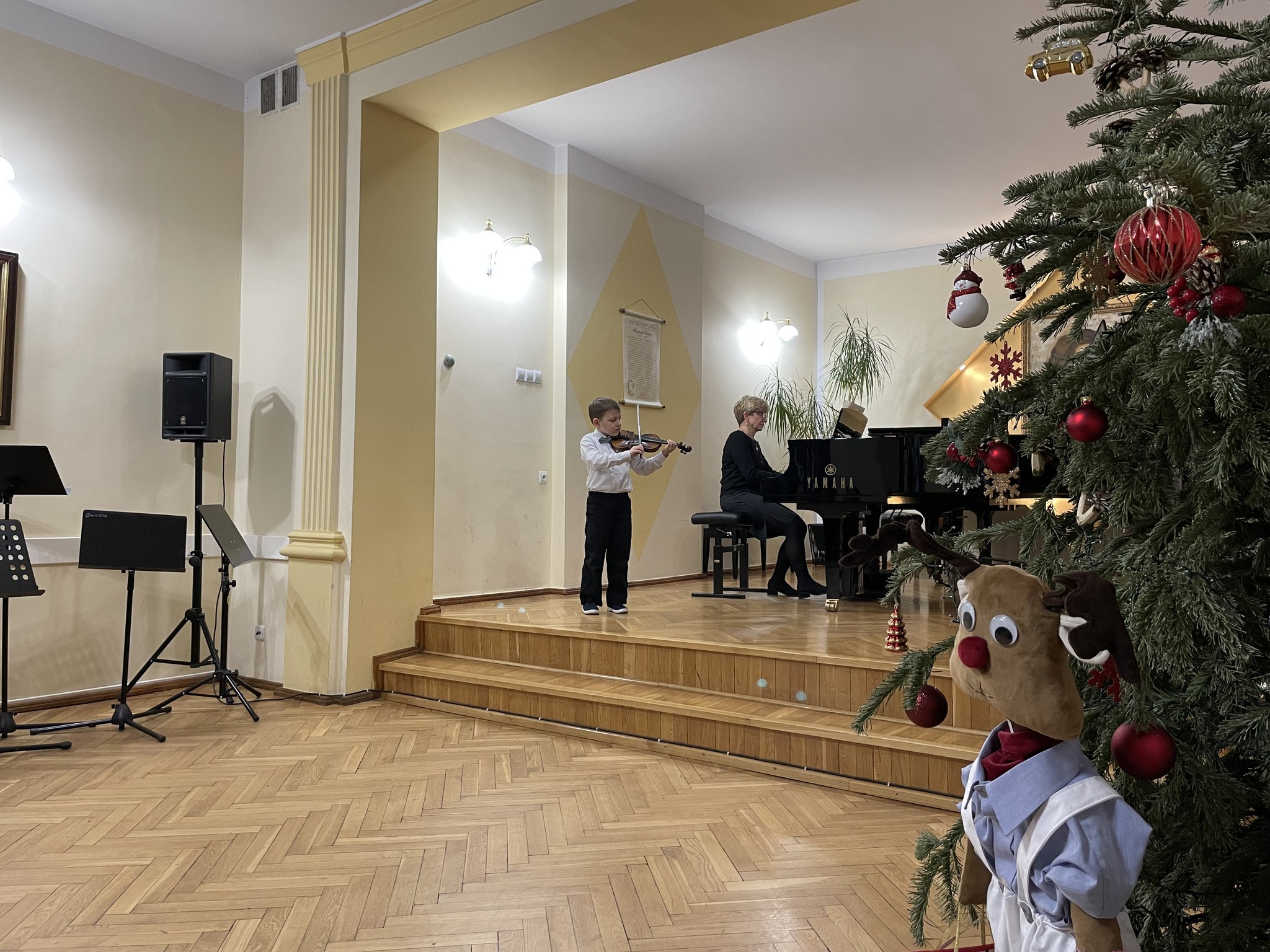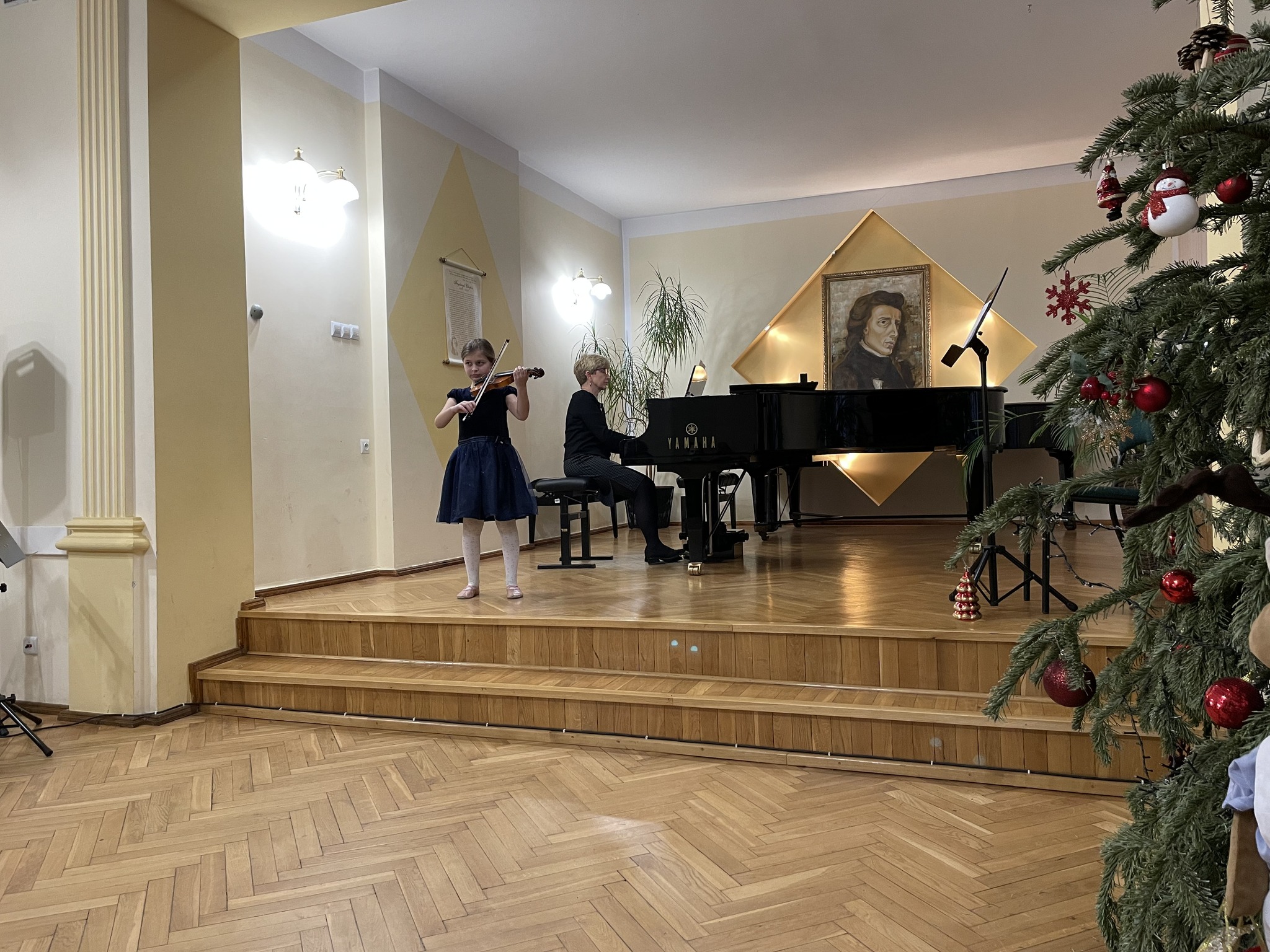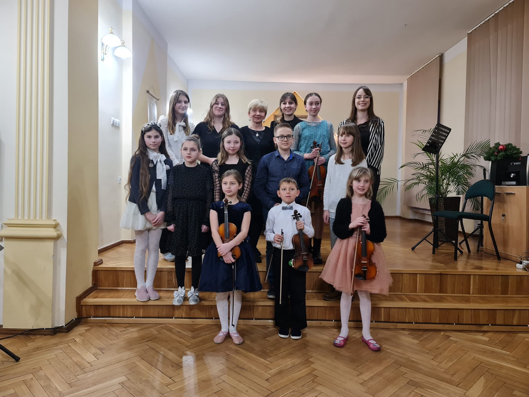 Na początku wystąpił dzielnie najmłodszy uczeń Matvii Maksymenko. Był to jego pierwszy występ publiczny. Na scenie zaprezentowały się głównie uczennice drugiej i trzeciej klasy: Maria Stańczyk-Biernacka, Hanna Drofiszyn, Zuzanna Dubiel, Kinga Krupnik, Magdalena Mielcarz, Hanna Podgórska oraz Kalina Blechinger. Popularnością cieszyły się utwory D. Obijalskiej. Na koncercie Aleksandra Ferenz wykonała po raz pierwszy w naszej szkole ,,Kołysankę’’ E. Griega. Uczennice klasy VI: Aleksandra Żołnierz oraz Wiktoria Węglowska wykonały kantylenowe utwory: Ave Maria Gounoda oraz Cavatinę Raffa. Podczas koncertu dwukrotnie zaprezentował się Yevhen Pleten najpierw z Solo Koncertowym op. 77 Ch. Dancla. Następnie ludowym akcentem wyśmienicie zakończył koncert wykonując Mazurka Emila Młynarskiego. Na widowni nie zabrakło zwłaszcza rodziny i najbliższych uczniów naszej szkoły. Gratulujemy wszystkim młodym wykonawcom!