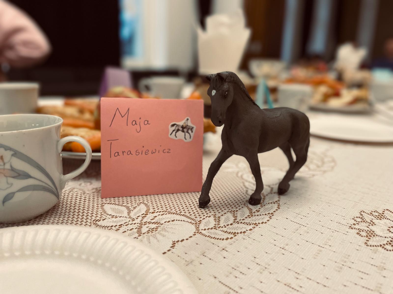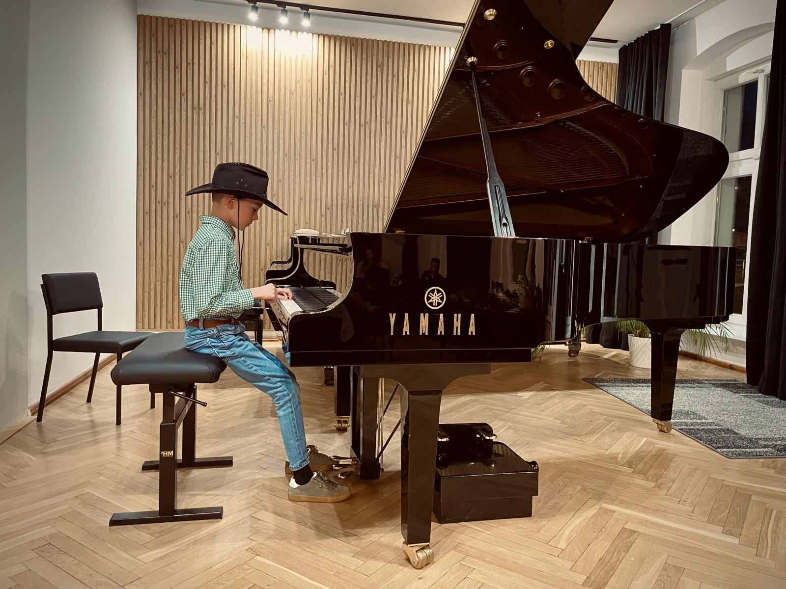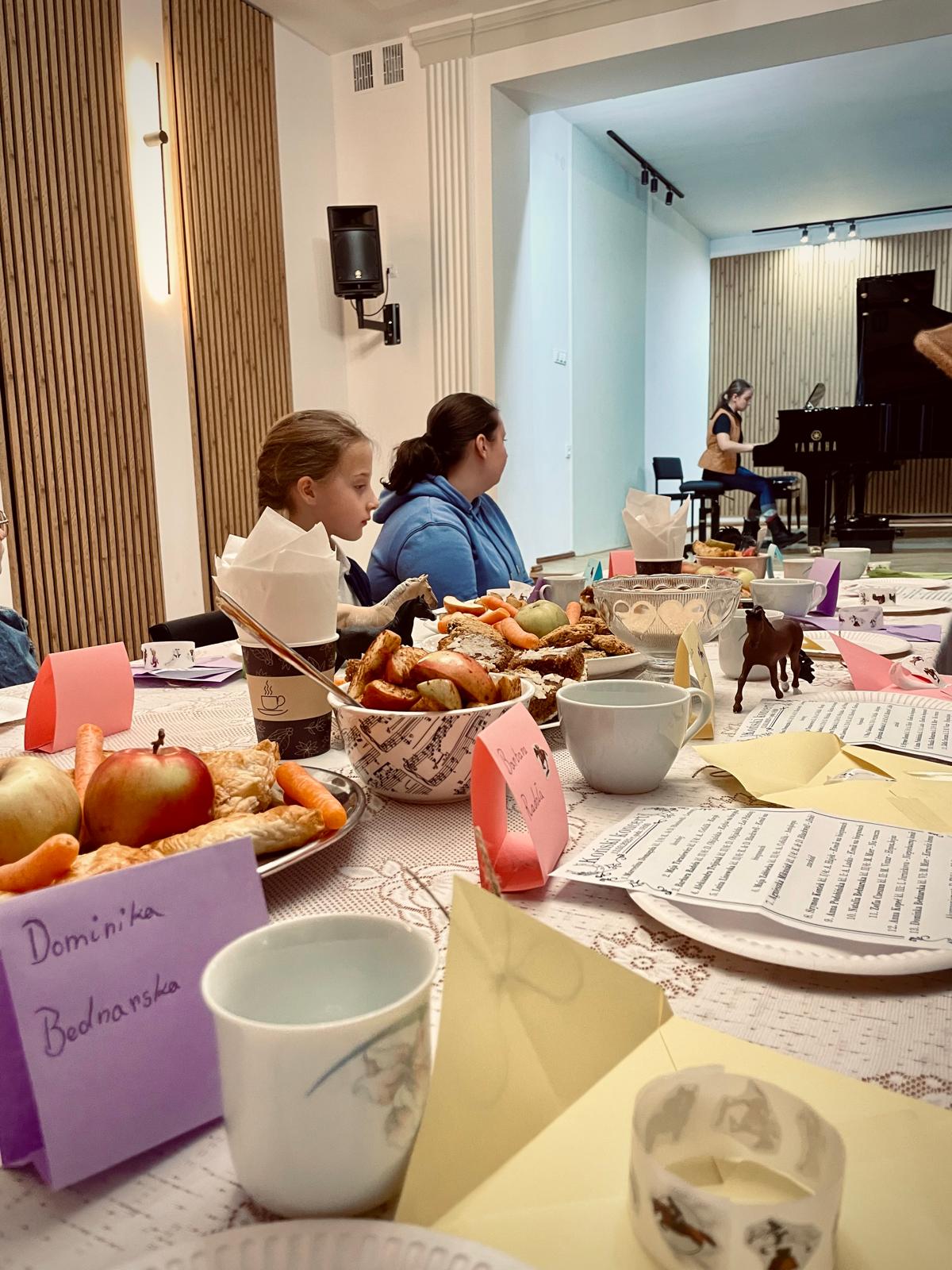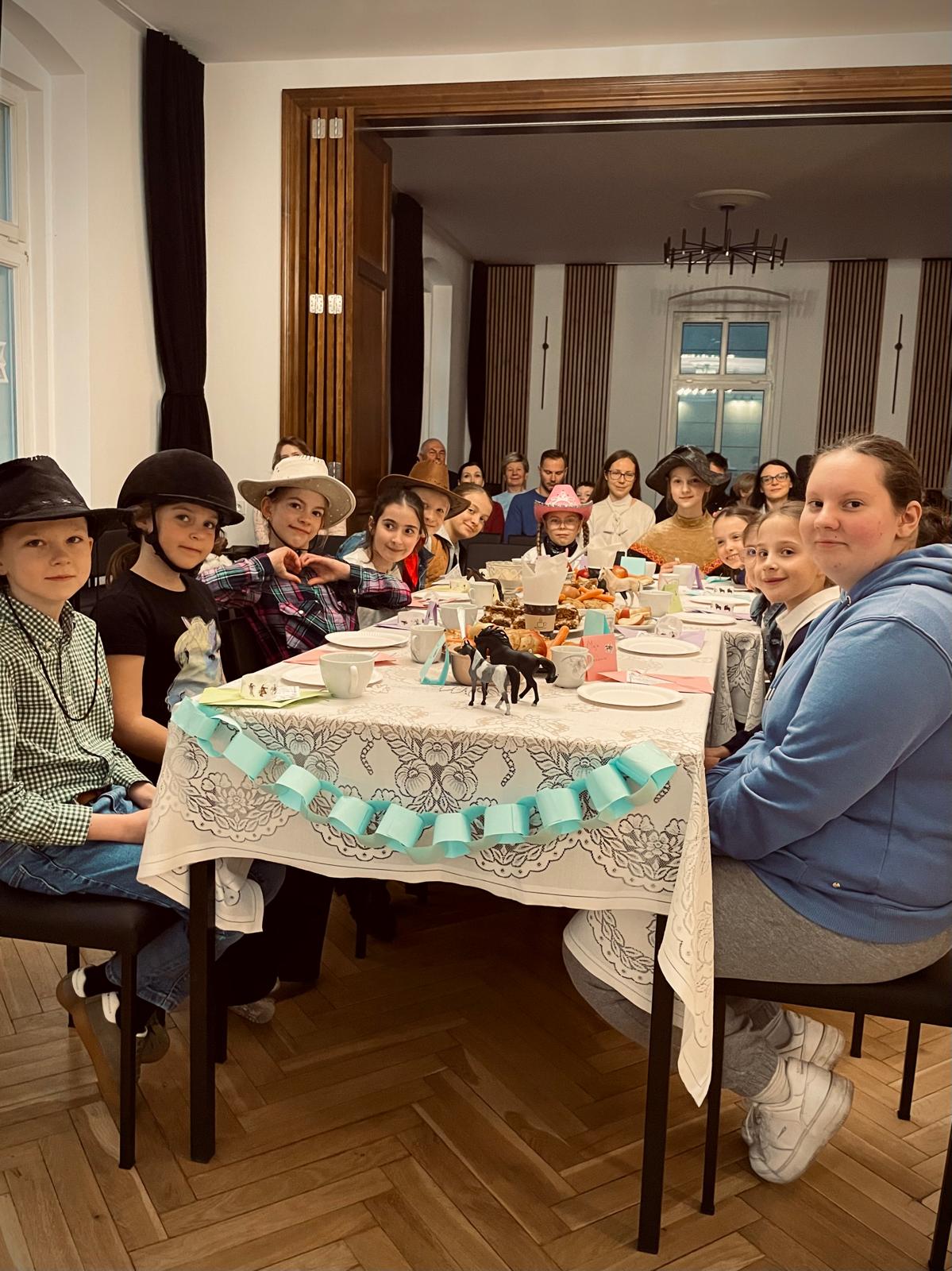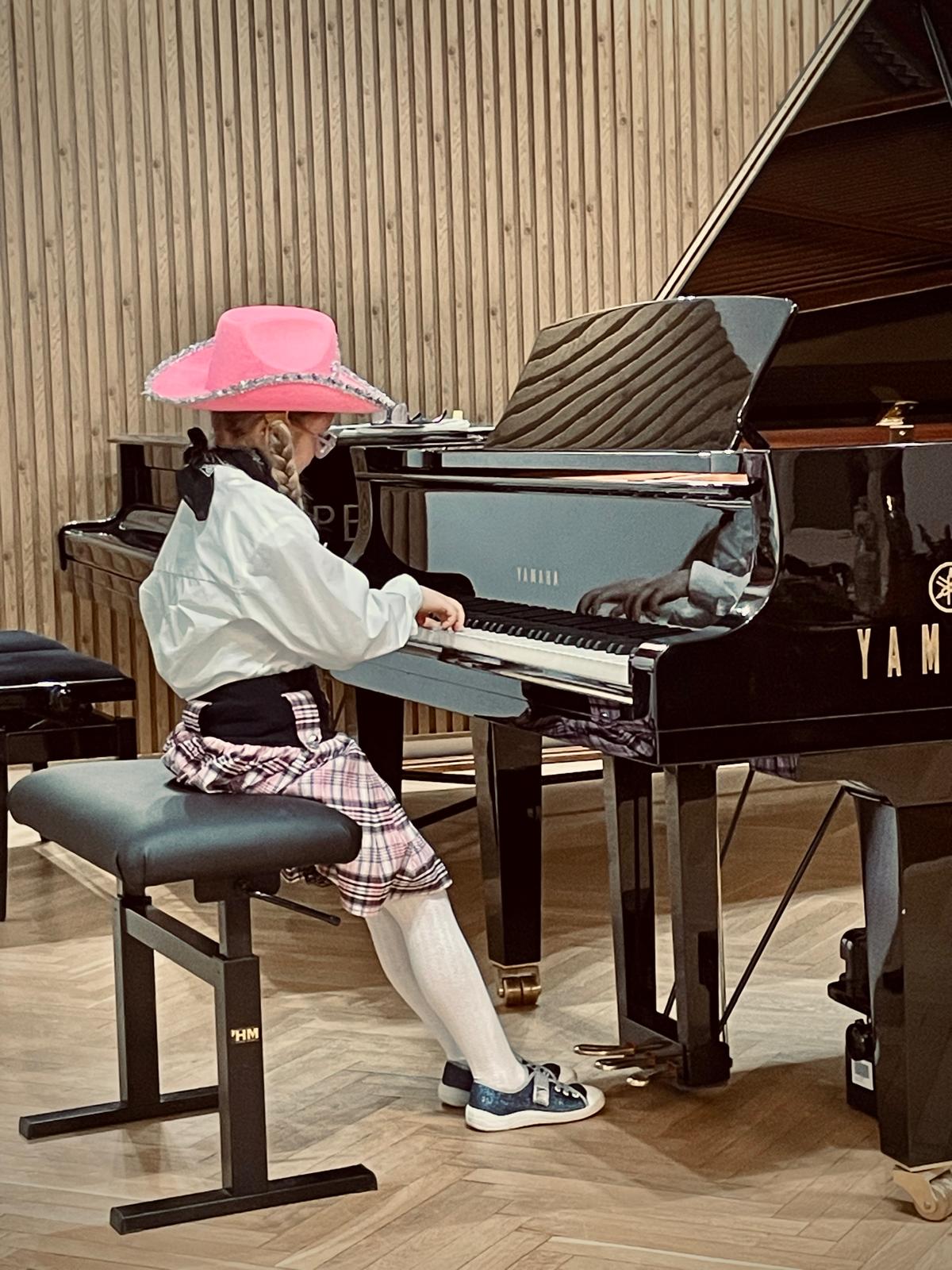 Usłyszeliśmy przepiękne wykonania utworów z katalogu muzyki instrumentalnej o tematyce konnej, kowbojskiej i innych podobnych kopytnych zwierząt. Wystąpili pianiści i skrzypkowie przy akompaniamencie P. Elżbiety Malinowskiej. Po części muzycznej dzieci miały okazję porozmawiać o swoich hobby przy herbatce i pysznych smakołykach, na które niejeden koń by się skusił. Na szczególne uznanie zasługuje uczennica, Maja Tarasiewicz, z klasy skrzypiec P. Karoliny Lizurej, która z ogromnym zaangażowaniem brała udział w organizacji tej imprezy.
