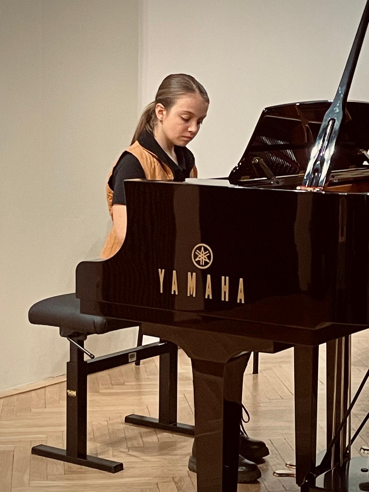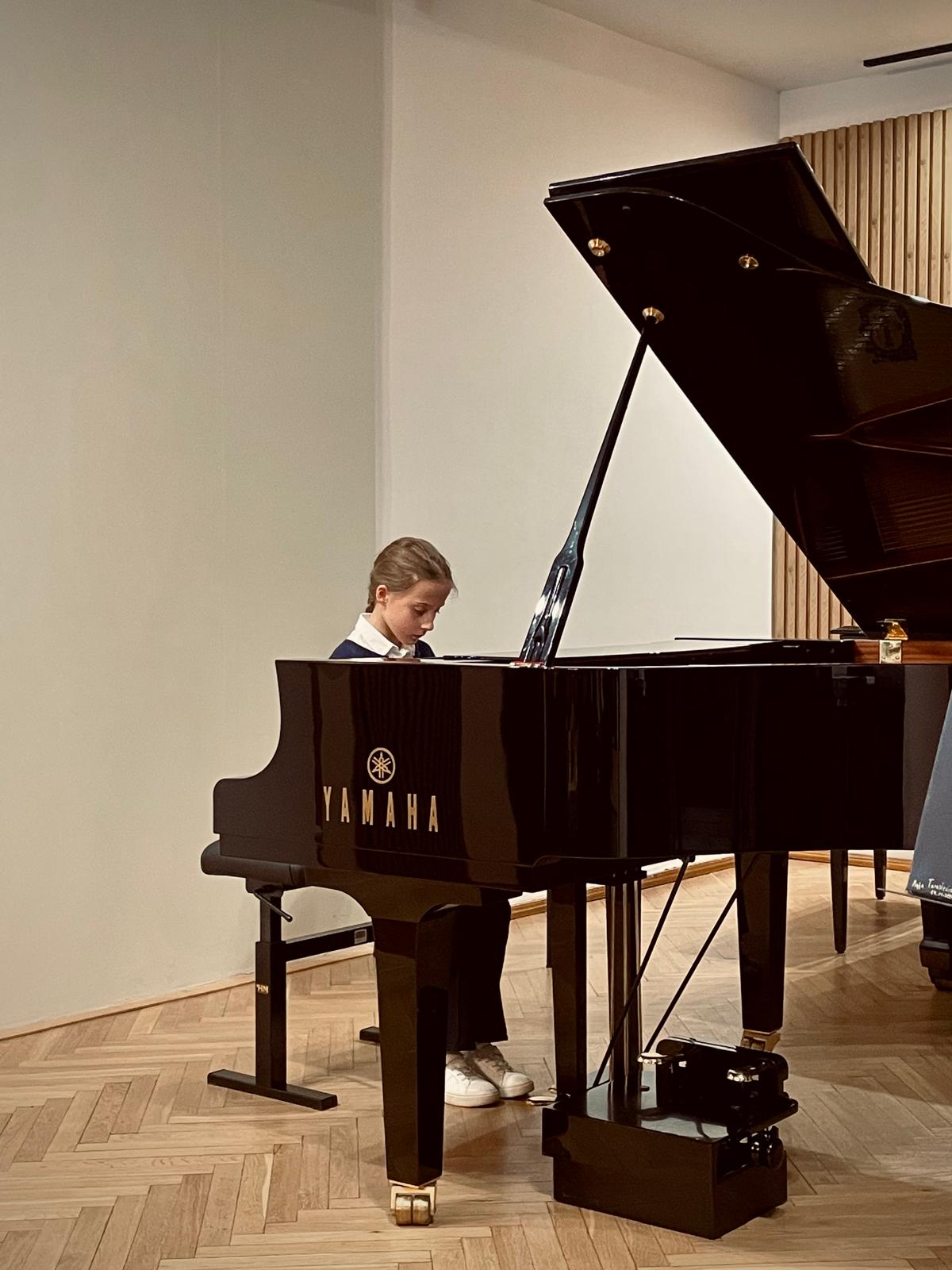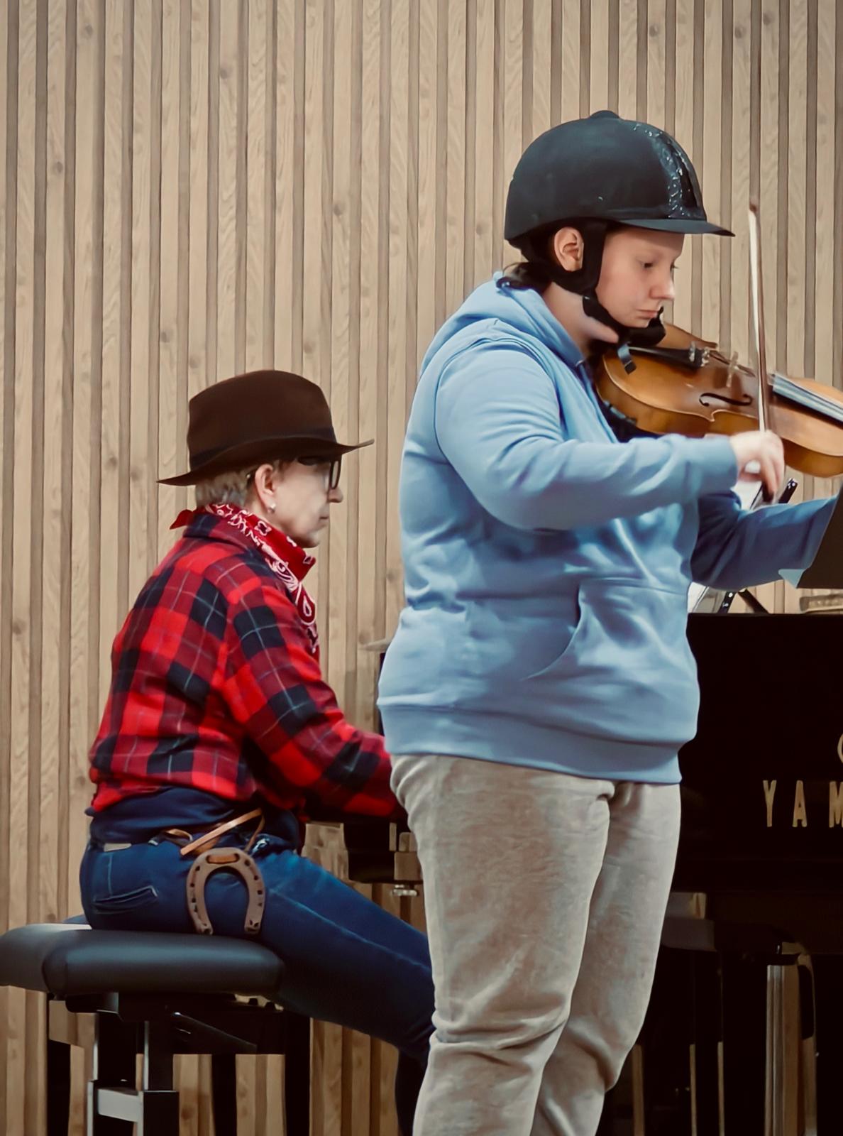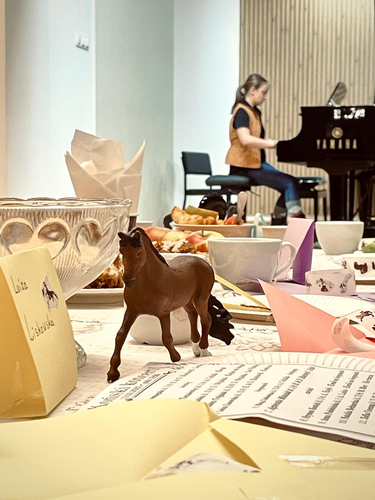 Usłyszeliśmy przepiękne wykonania utworów z katalogu muzyki instrumentalnej o tematyce konnej, kowbojskiej i innych podobnych kopytnych zwierząt. Wystąpili pianiści i skrzypkowie przy akompaniamencie P. Elżbiety Malinowskiej. Po części muzycznej dzieci miały okazję porozmawiać o swoich hobby przy herbatce i pysznych smakołykach, na które niejeden koń by się skusił. Na szczególne uznanie zasługuje uczennica, Maja Tarasiewicz, z klasy skrzypiec P. Karoliny Lizurej, która z ogromnym zaangażowaniem brała udział w organizacji tej imprezy.