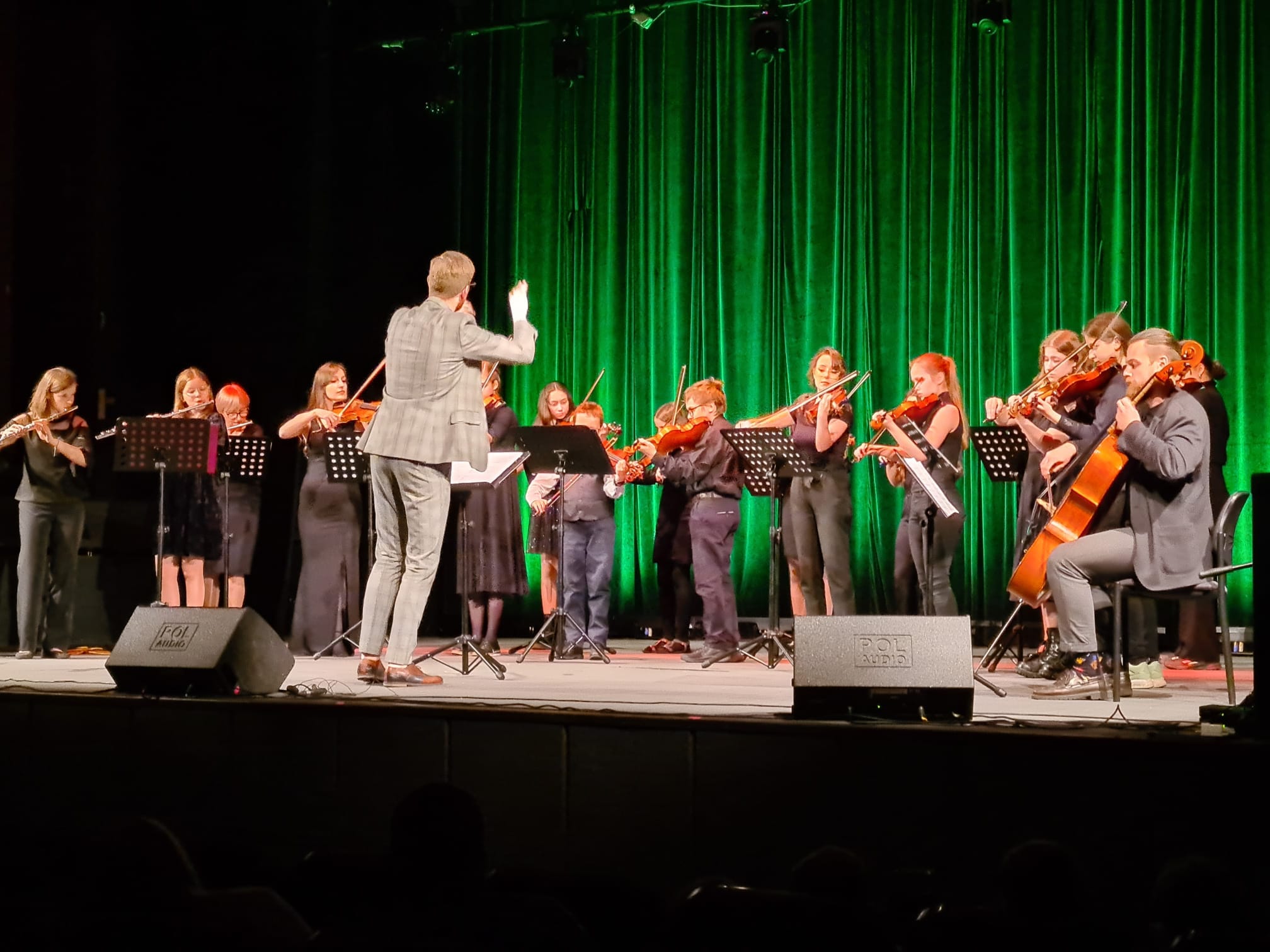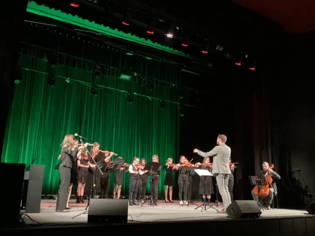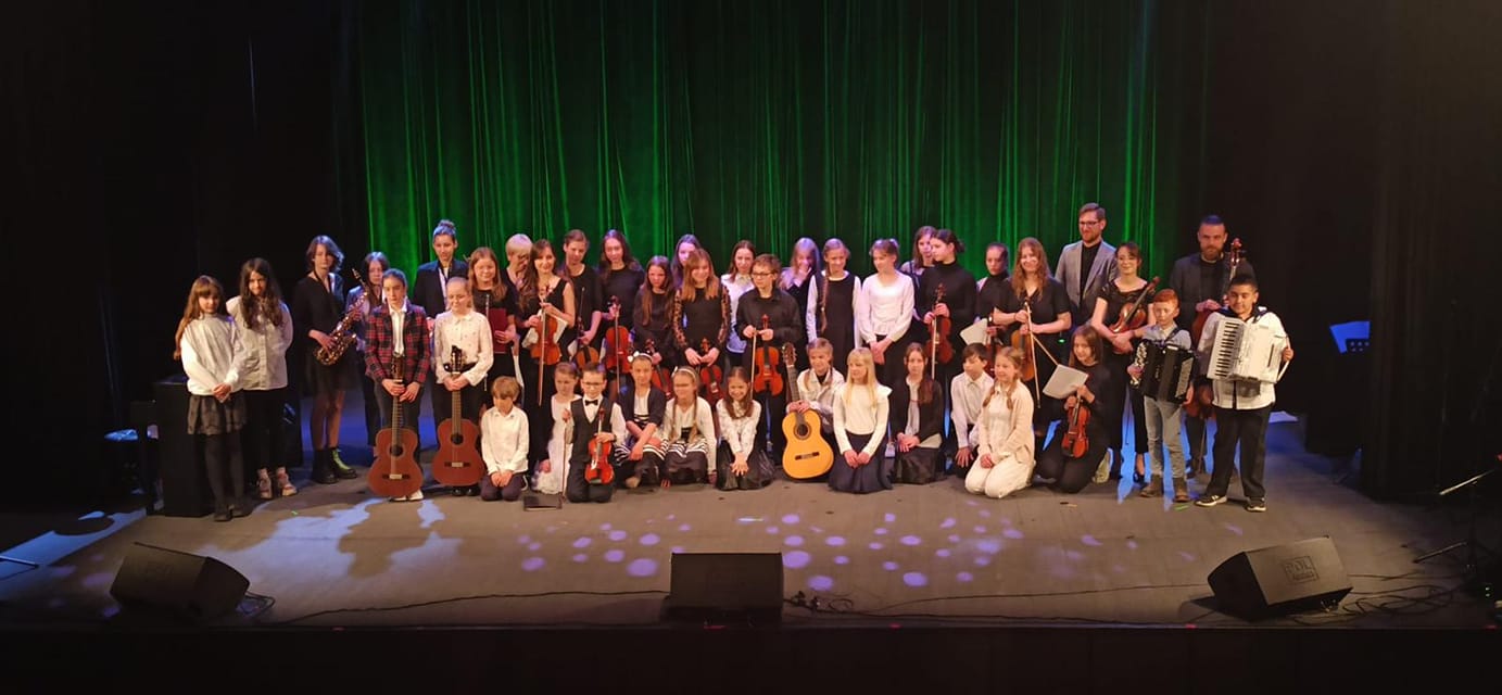Na scenie zaprezentowali się laureaci konkursów, soliści, zespoły, chór oraz Szkolna Orkiestra Kameralna, którą wsparli nauczyciele p. Natalia Mierzwa, p. Karolina Lizurej, p. Bożena Adamska oraz p. Adam Garnecki. Koncert wspaniale poprowadziły p. Agnieszka Kozakowska, a także p. Katarzyna Brzeska-Krawczyk. Przygotowaniem koncertu zajęli się p. Witold Kozakowski, p. Natalia Mierzwa oraz p. Katarzyna Brzeska-Krawczyk. Na scenie można było usłyszeć uczniów p. W. Kozakowskiego, p. Katarzyny Mąki-Żelazko, p. Anny Bartkiewicz-Brzozowskiej, p. Natalii Mierzwy, p. Bożeny Adamskiej, p. Angeliki Strzygockiej, p. Tomasza Brusińskiego, p. Katarzyny Brzeskiej-Krawczyk, p. Dominika Jarockiego, którym serdecznie dziękujemy za przygotowanie uczniów. Uczniowie, którzy otrzymali nagrody na konkursach w tym roku to: duet akordeonowy w składzie: Wiktor Styrkacz, Gabriel Haręza, gitarzystka-Dobrawa Wers-Skawina, pianistka-Weronika Osicka oraz duet ,,Presto” w składzie: Weronika Osicka, Dominika Bednarska. Pokaźnymi osiągnięciami może się pochwalić Natalia Skrzydło, która była laureatką aż 7 konkursów! Uczniowie Ci są pod opieką merytoryczną p. T. Brusińskiego, p. W. Kozakowskiego , p. K. Mąki-Żelazko oraz p. A. Strzygockiej. Na uwagę zasługuje gra Yevhena Pletena, który brawurowo wykonał Mazurka i otrzymał gromkie brawa.Szczególne podziękowania należą się niezawodnej p. Elżbiecie Malinowskiej za piękny akompaniament. Dziękujemy również rodzicom, którzy motywowali uczniów do pracy oraz zapraszamy wszystkich zainteresowanych na kolejne koncerty!