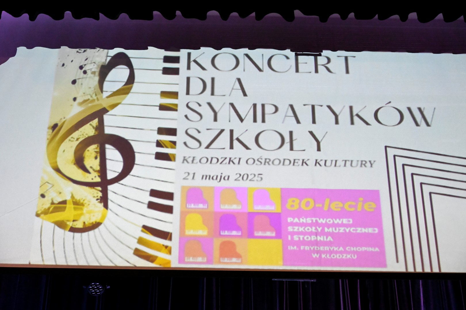 W ramach obchodów 80-lecia działalności PSM I st. w Kłodzku 21 maja 2025 r. odbył się w sali widowiskowej KOK koncert z cyklu ,,DLA SYMPATYKÓW SZKOŁY ".