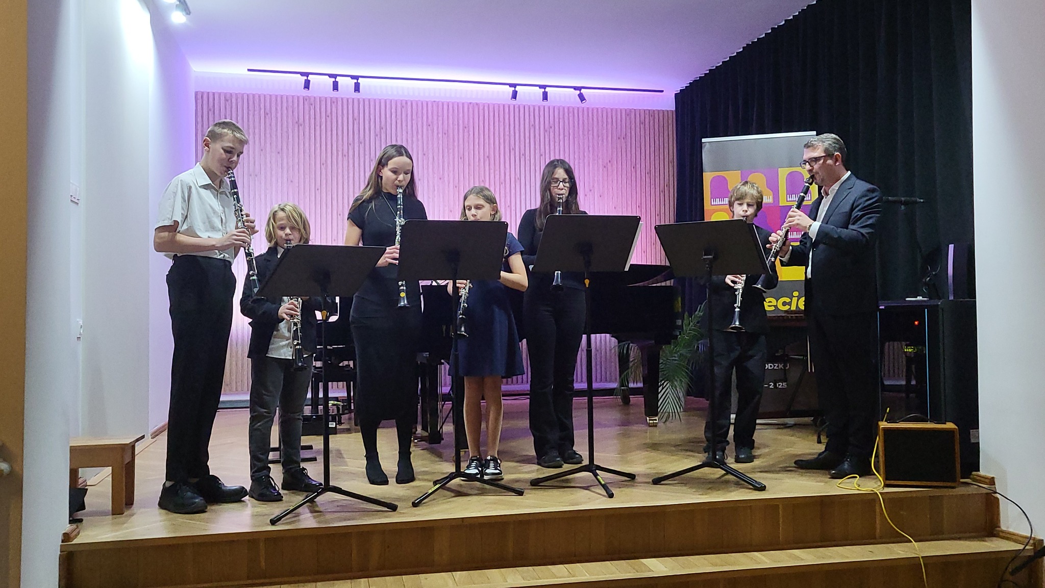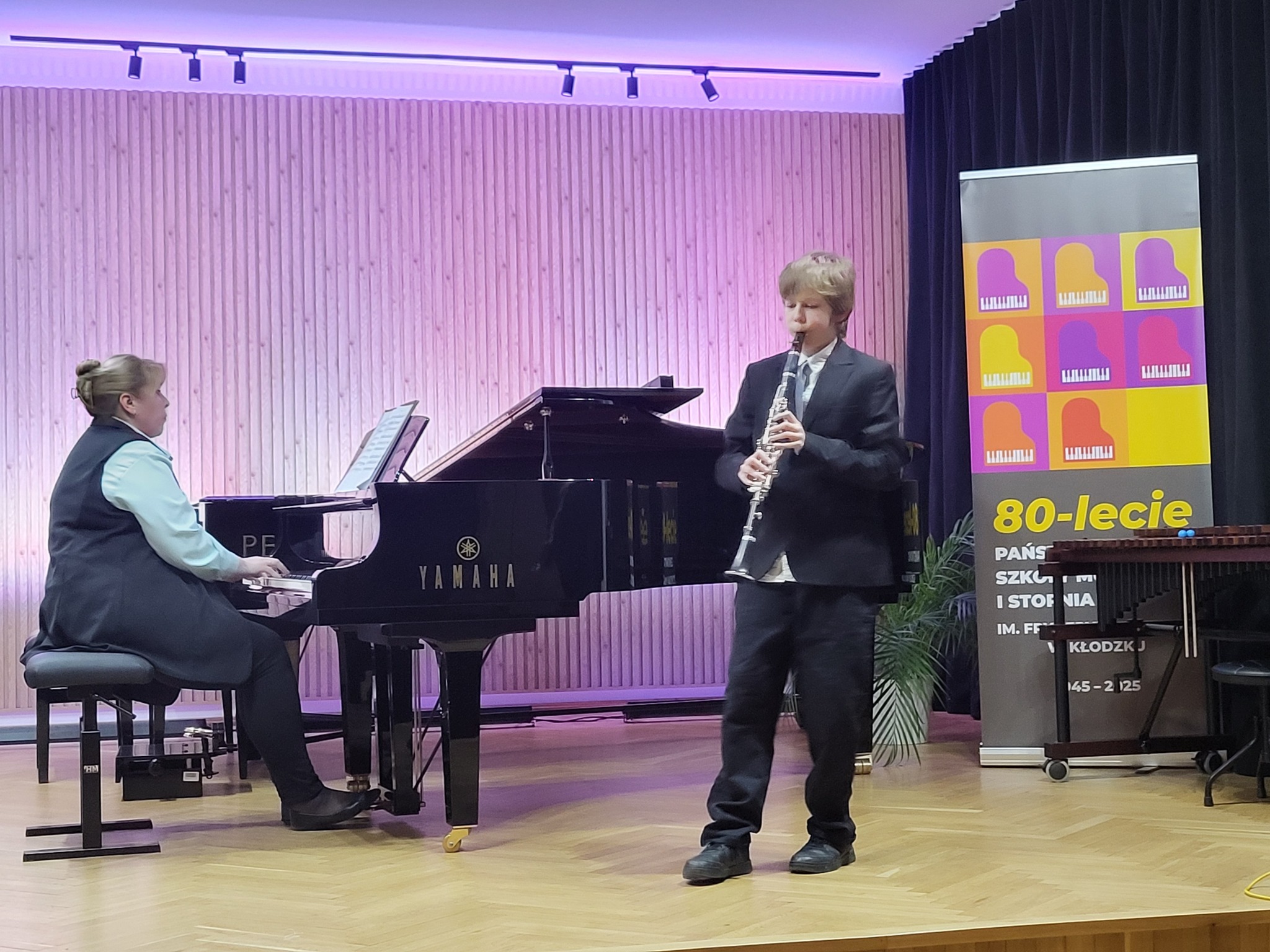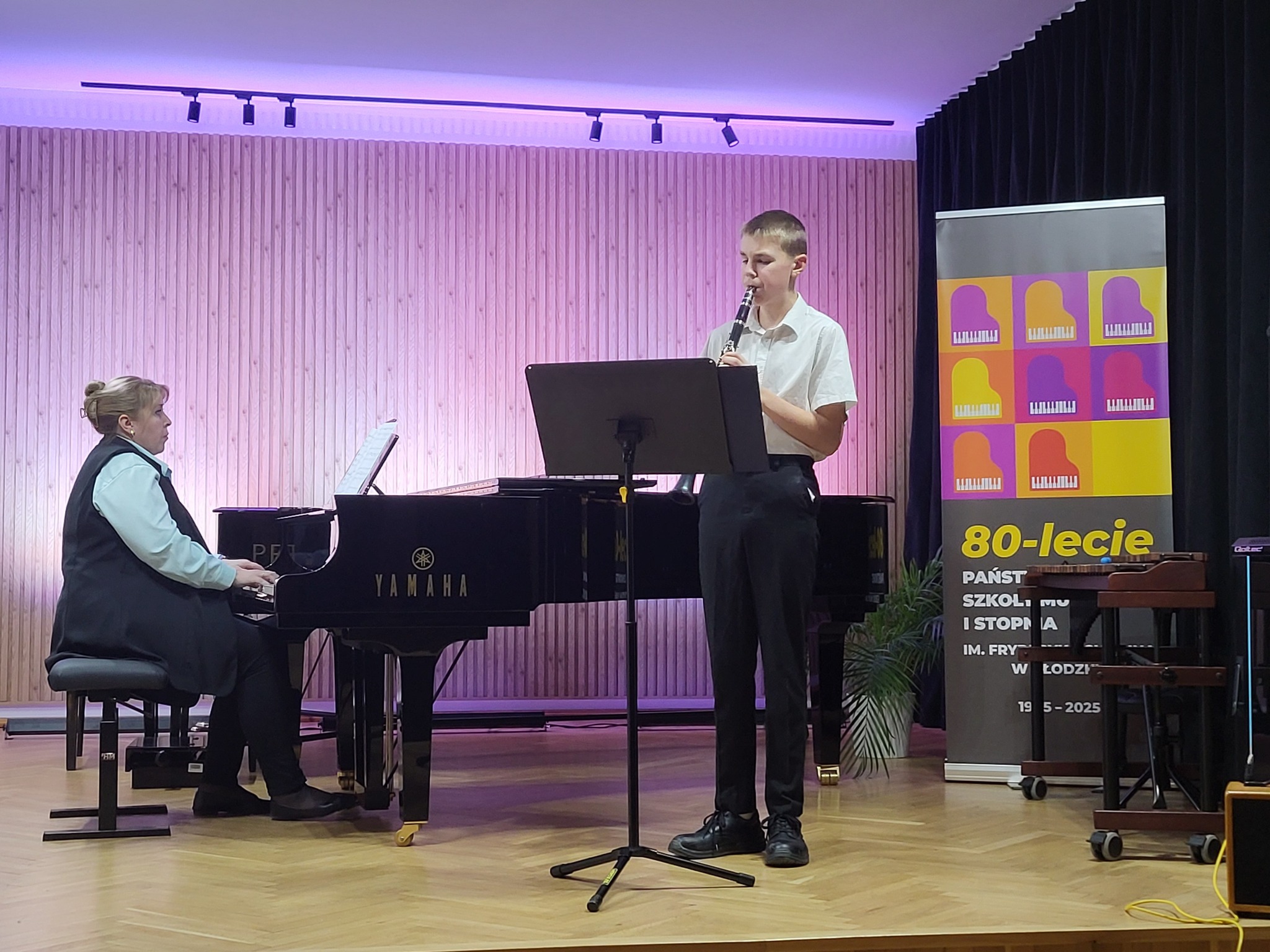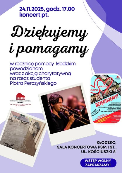 Rok temu, po dramatycznej w mieście i powiecie nagłej powodzi, społeczność naszej szkoły doświadczyła bezinteresownej pomocy ze strony wielu osób oraz instytucji. Szczególną pomoc uczniom dotkniętym dramatem udzieliło miasto Wolsztyn i powiat wolsztyński, a przede wszystkim Państwowa Szkoła Muzyczna I stopnia im. Ireny Pfeiffer w Wolsztynie. W ubiegły poniedziałek, 24.11.2025 r. uczniowie swoim koncertem ponownie podziękowali wszystkim tym, którzy rok temu nieśli pomoc, a także zachęcali równocześnie do wsparcia Piotra Perczyńskiego, studenta Uniwersytetu Muzycznego w Warszawie, który niedawno stracił obie nogi w wypadku komunikacyjnym. Dziękujemy wszystkim, którzy zaangażowali się w ten piękny koncert ludzkiej solidarności!