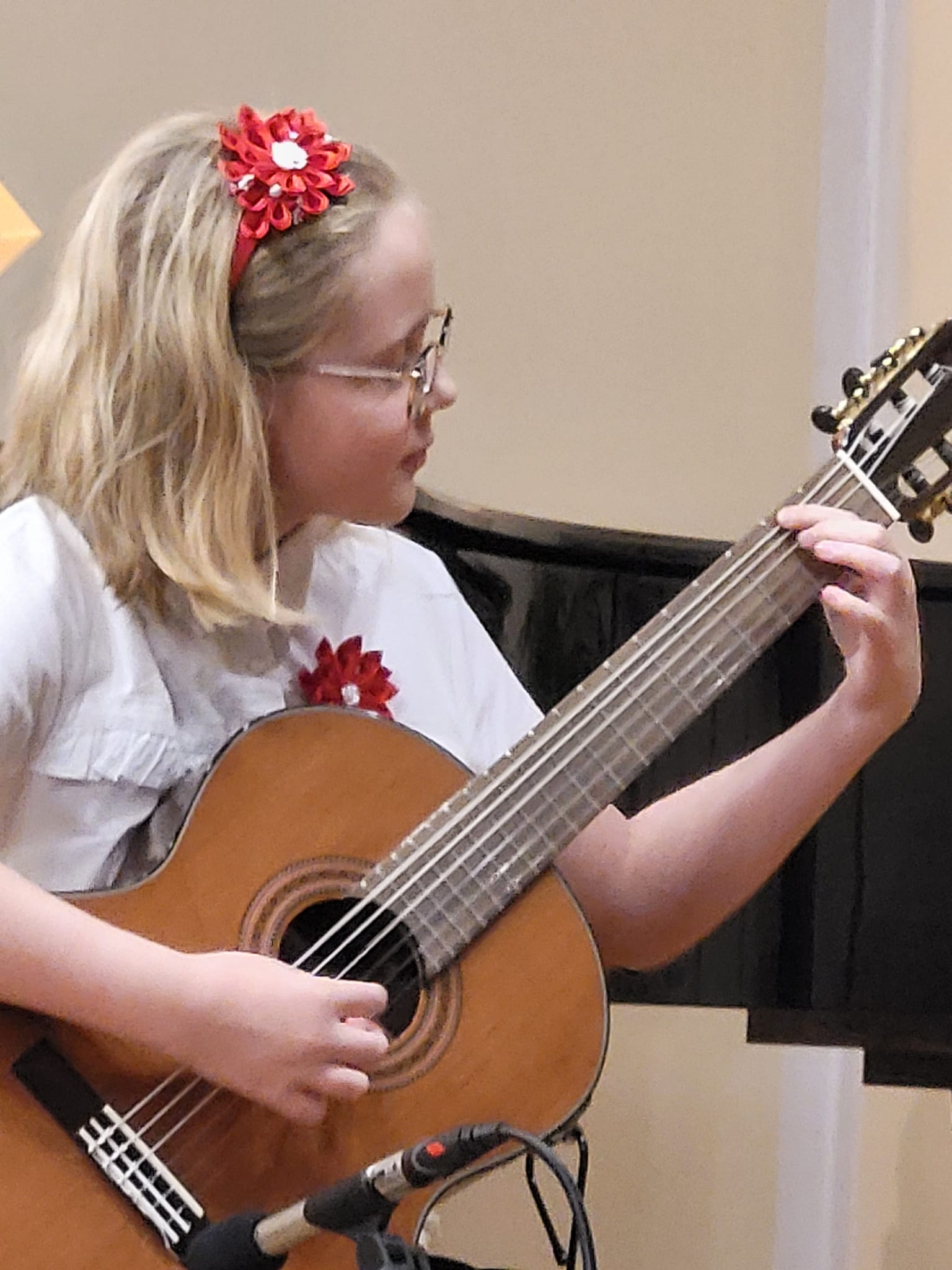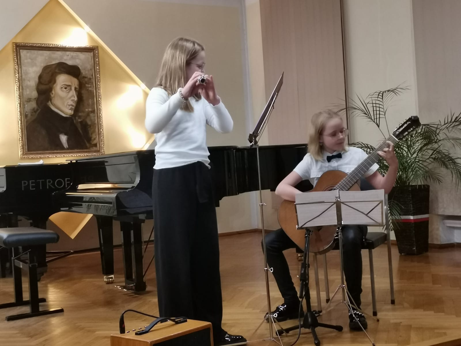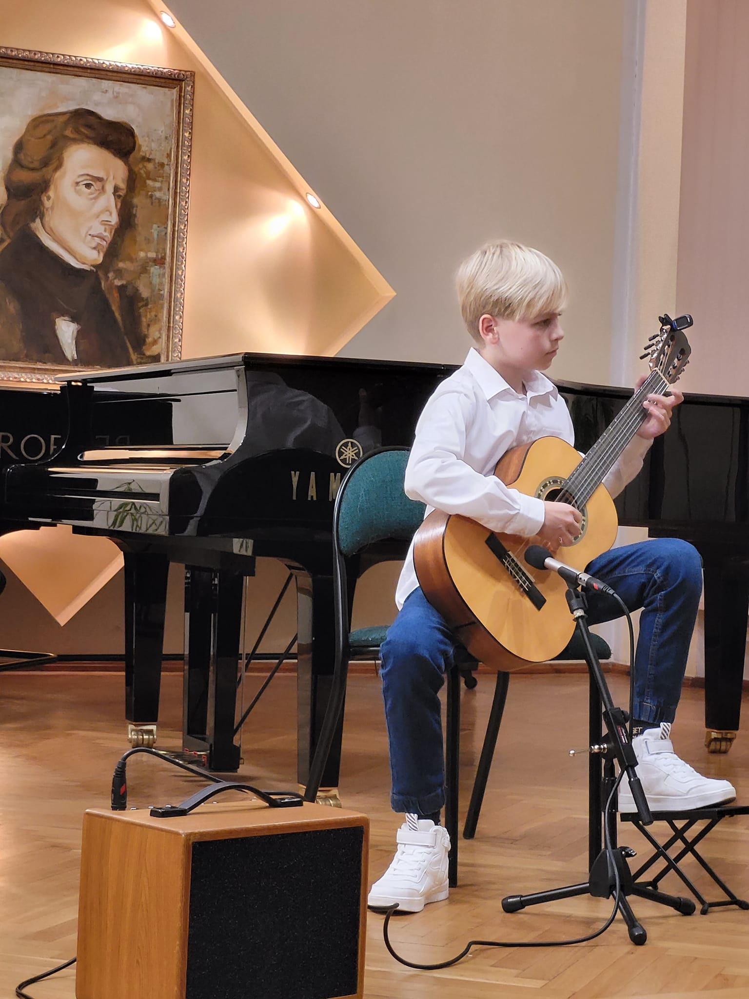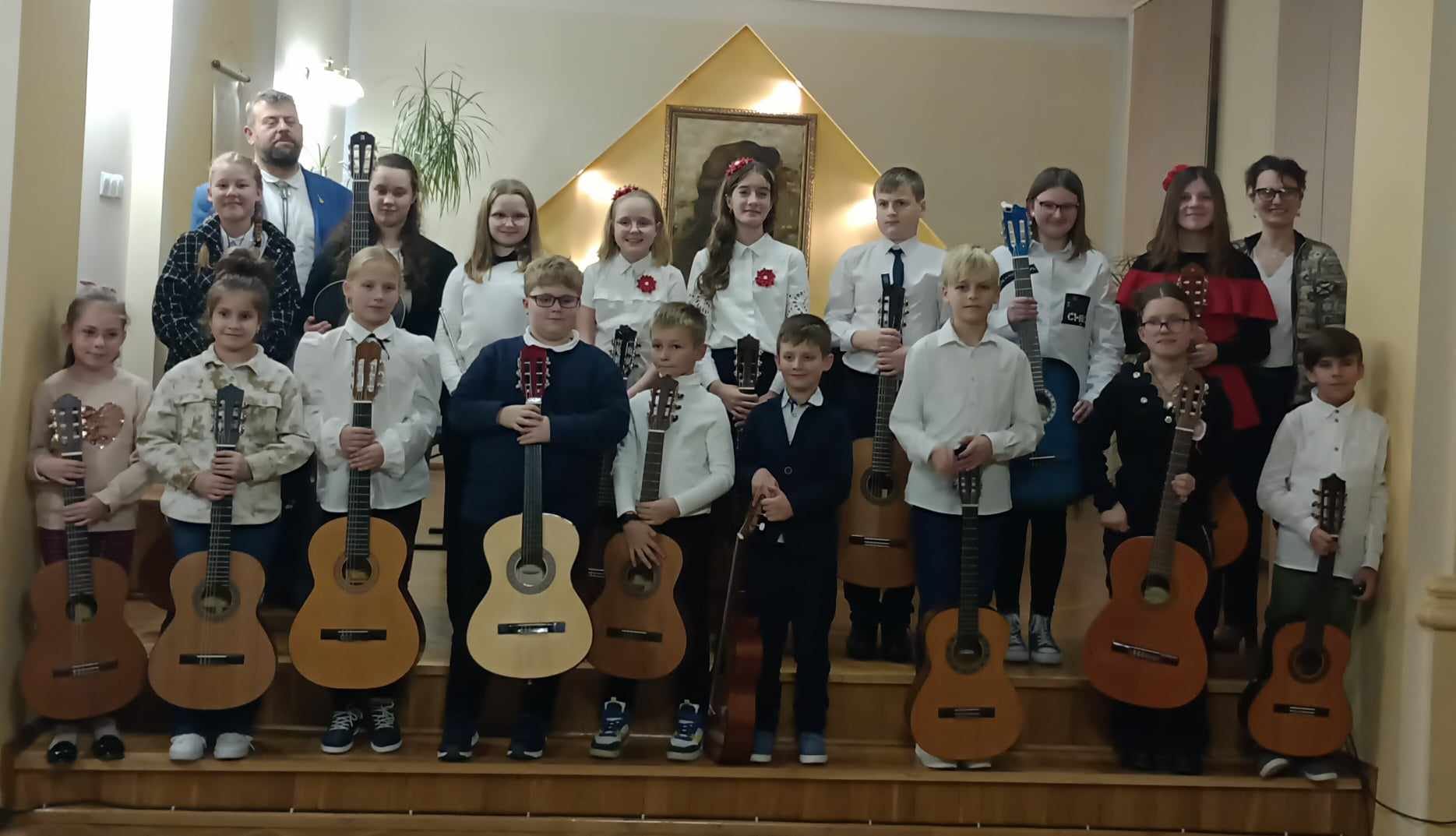 W piątek 10.11.2023 odbył się w naszej szkole piękny koncert gitarowy w wykonaniu uczniów klas gitary. Podopieczni Agnieszki Kozakowskiej i Witolda Kozakowskiego zaprezentowali ciekawy i różnorodny repertuar.