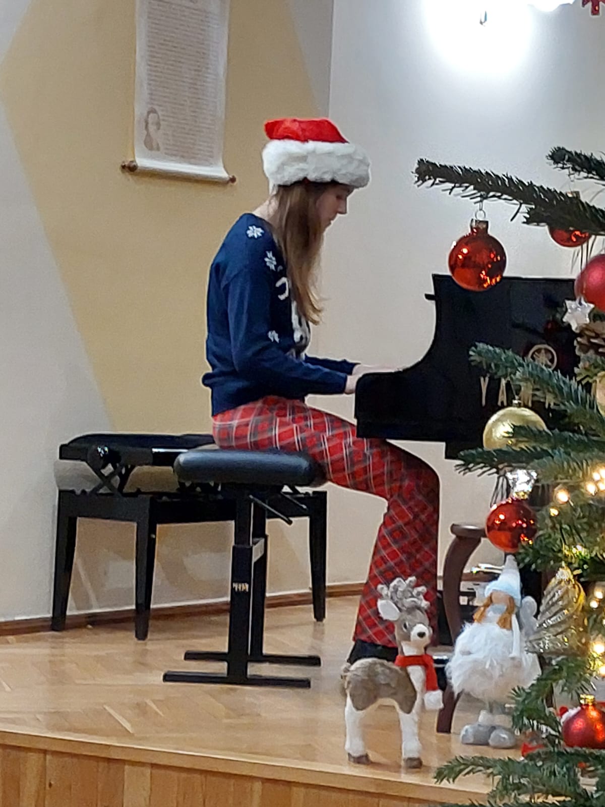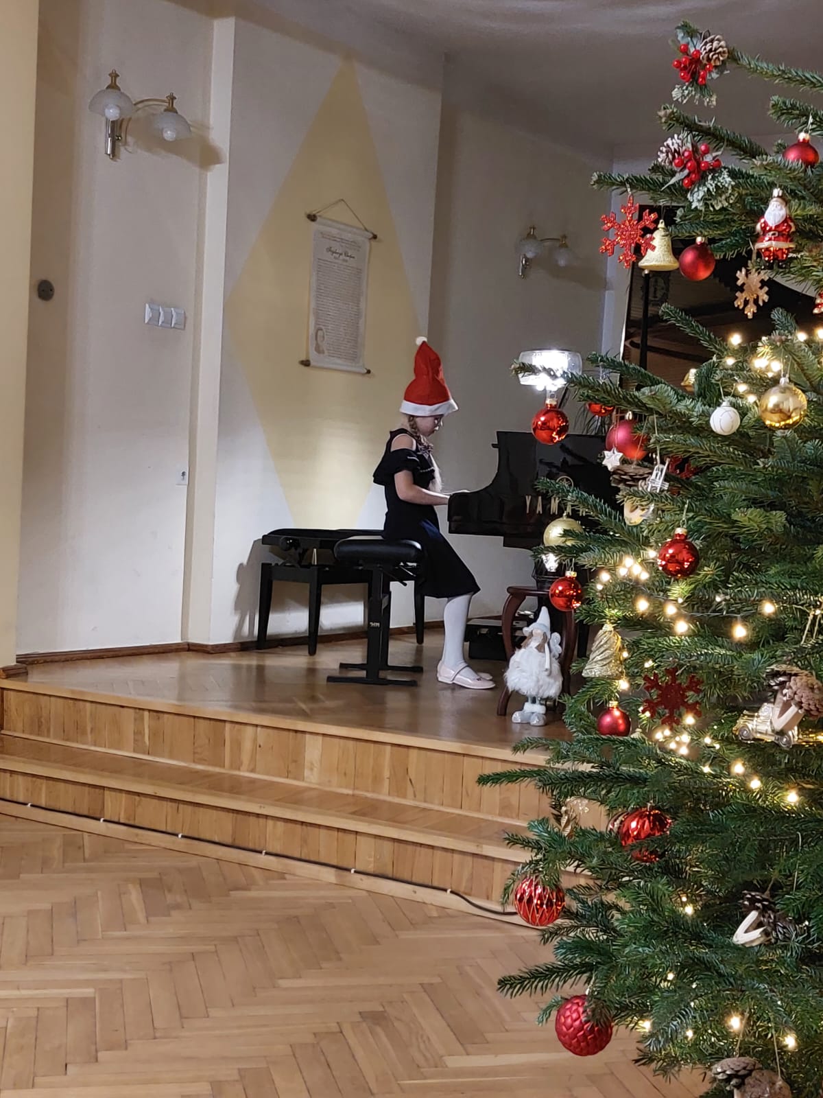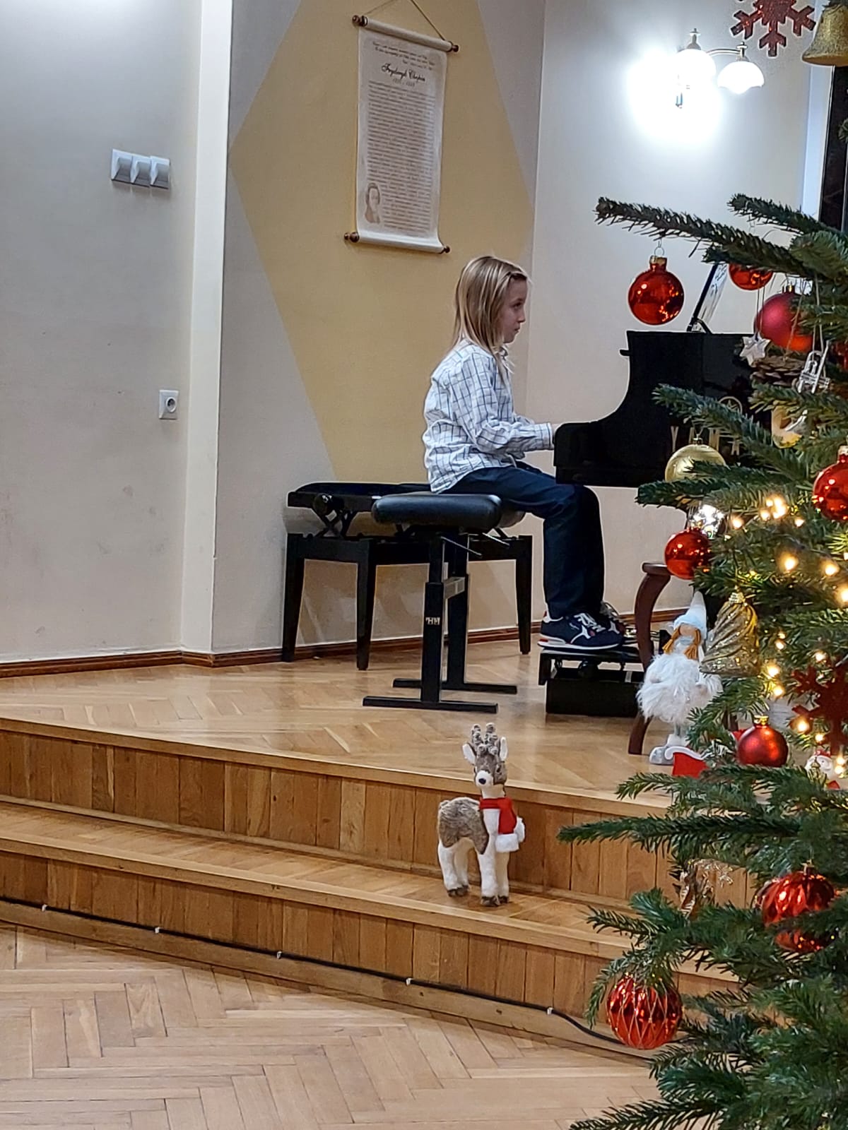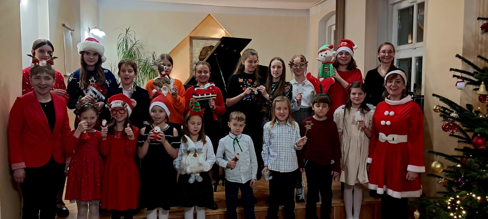 6 grudnia 2023 r. odbyły się w naszej szkole FORTEPIANOWE MIKOŁAJKI. Pianiści przygotowali wspaniałe muzyczne prezenty: kolędy, pastorałki, utwory rozrywkowe, także dzieła wielkich mistrzów. Wspólnie ustrojono własnoręcznie wykonanymi ozdobami klasową choinkę a dzięki wsparciu rodziców Mikołaj przniósł aromatyczne, pięknie wykonane pierniki i inne frykasy.